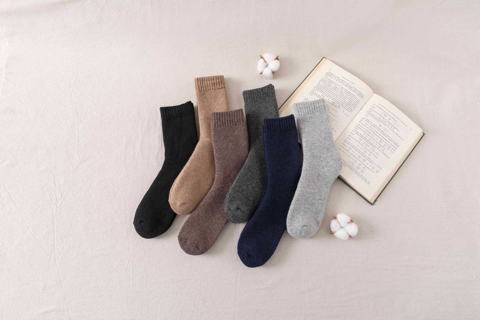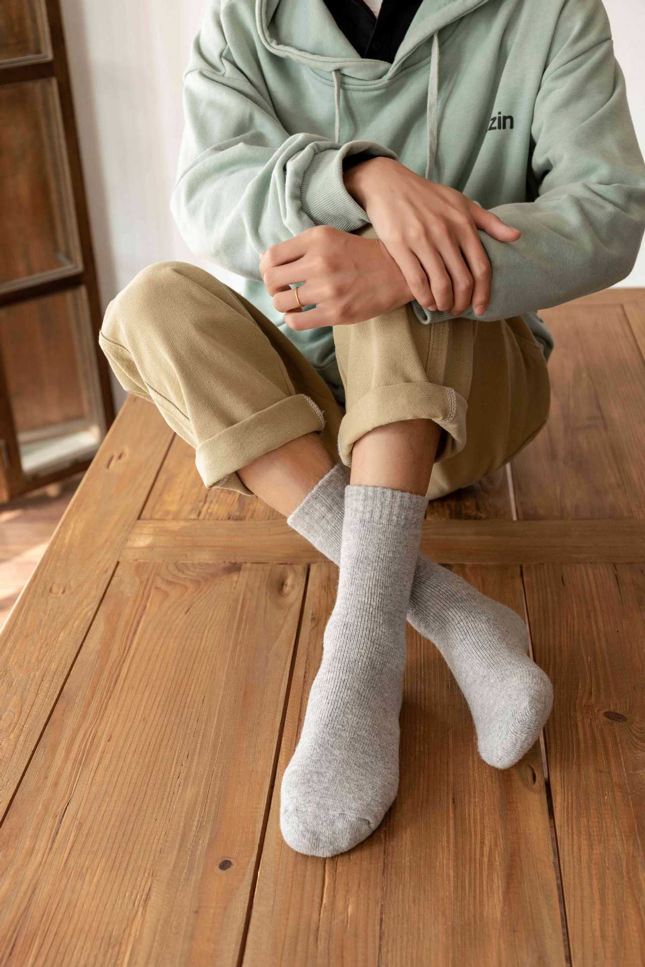 特厚巨保暖羊毛袜男士加厚秋冬款高筒袜冬天休闲简约纯色袜子批发