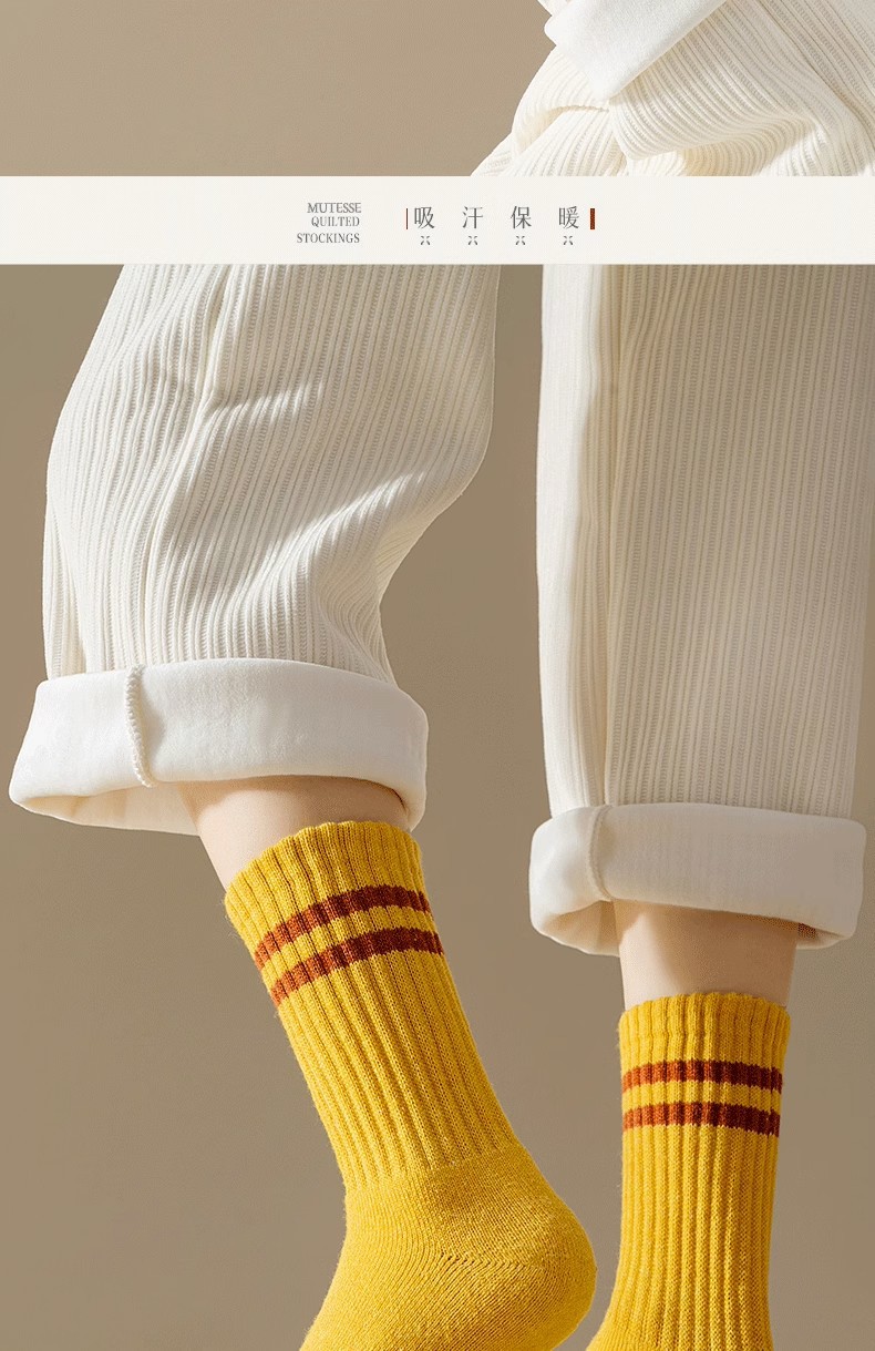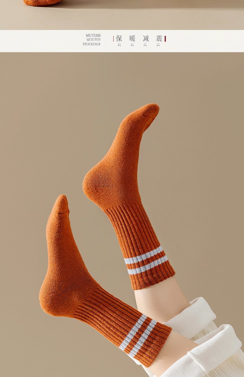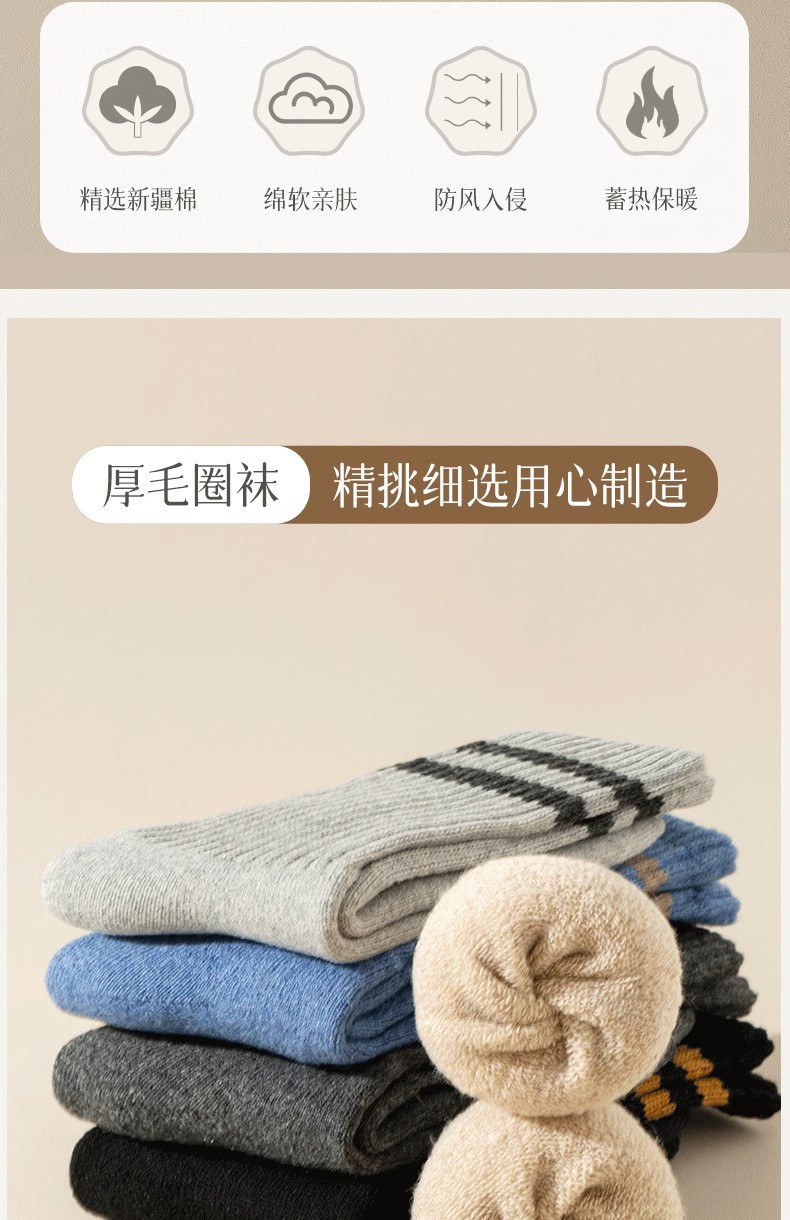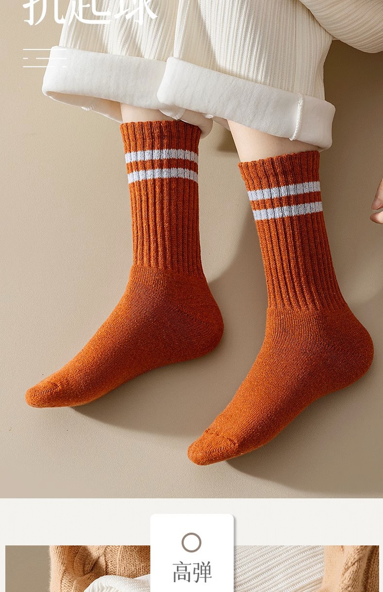 超厚羊毛袜子男女秋冬中筒袜加厚保暖毛圈袜加绒条纹长筒毛巾长袜