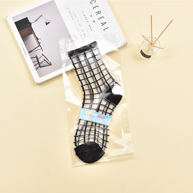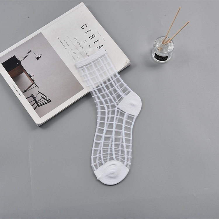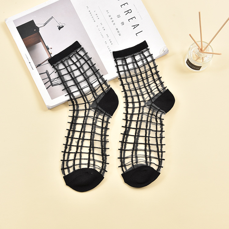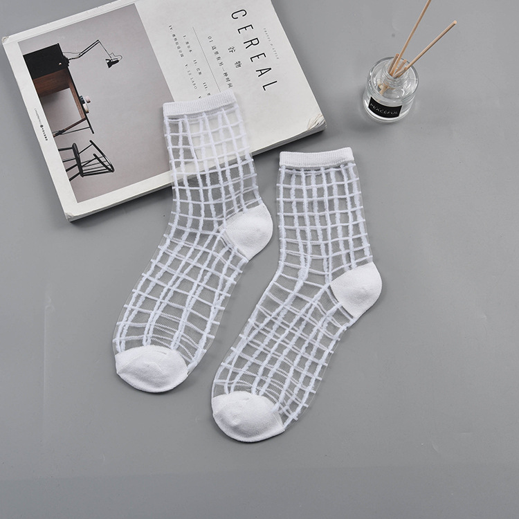 春夏薄款玻璃丝袜 透明时尚女士格子水晶袜 女袜性感袜子厂家批发