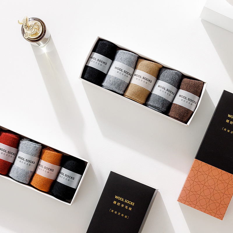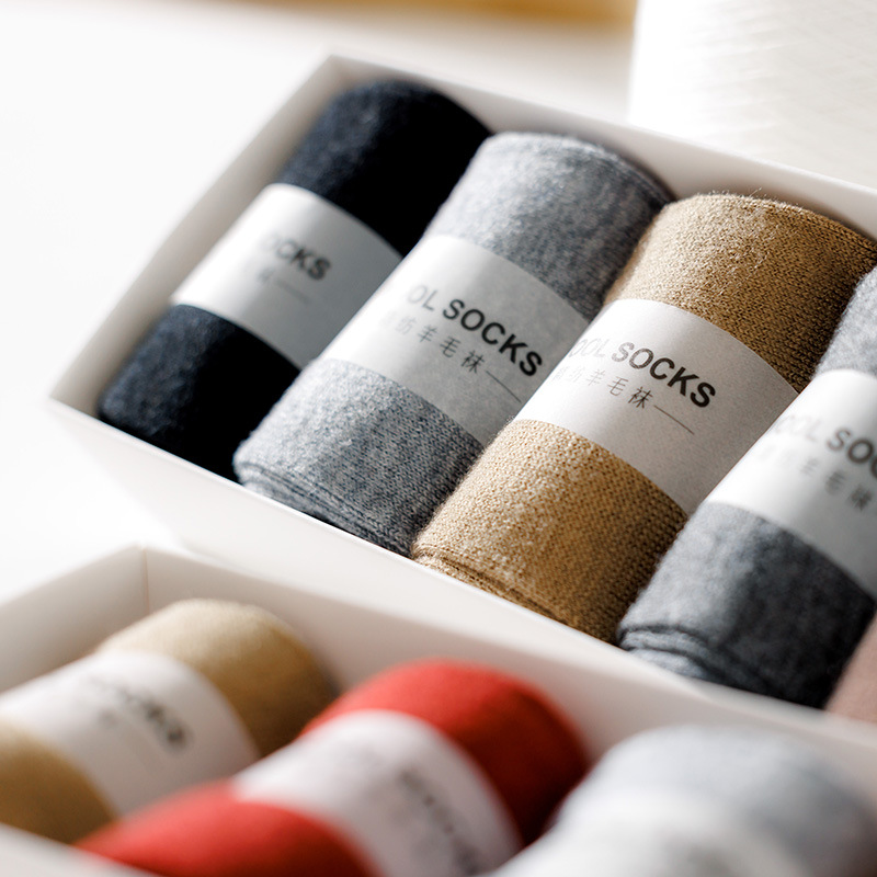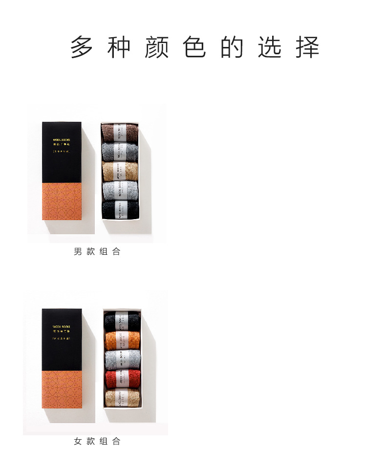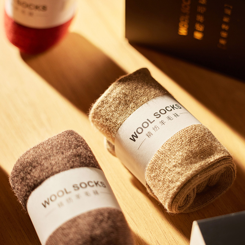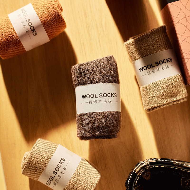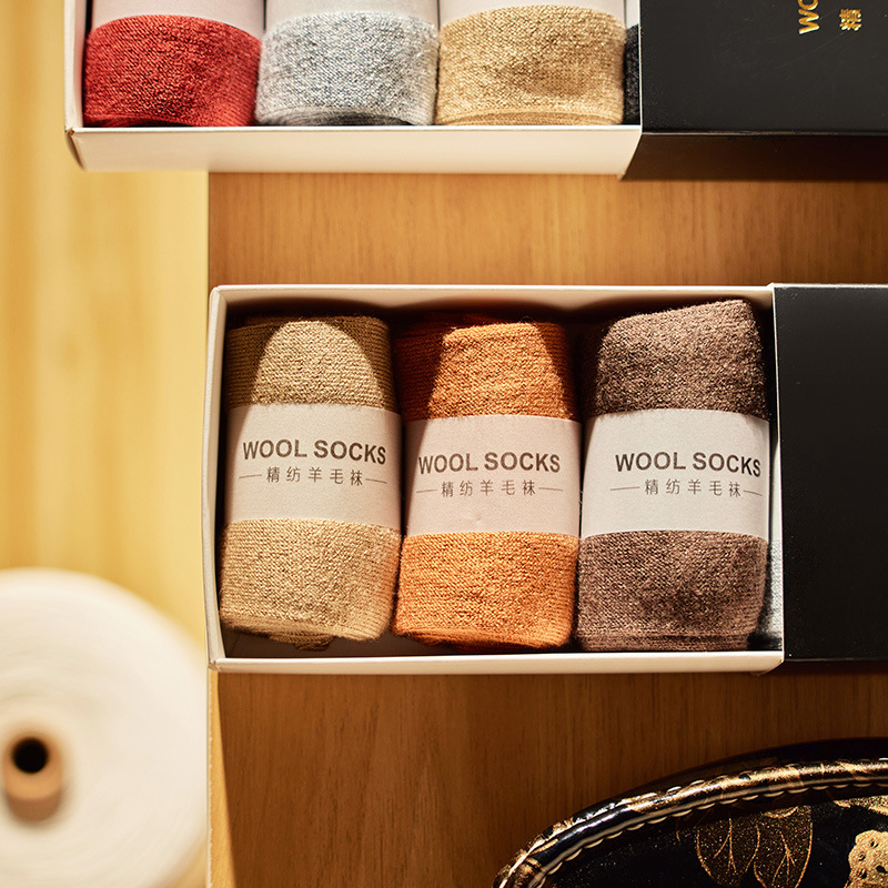 礼盒装精纺羊毛平面纯色男女同款针织袜秋冬舒适保暖针织中筒袜子