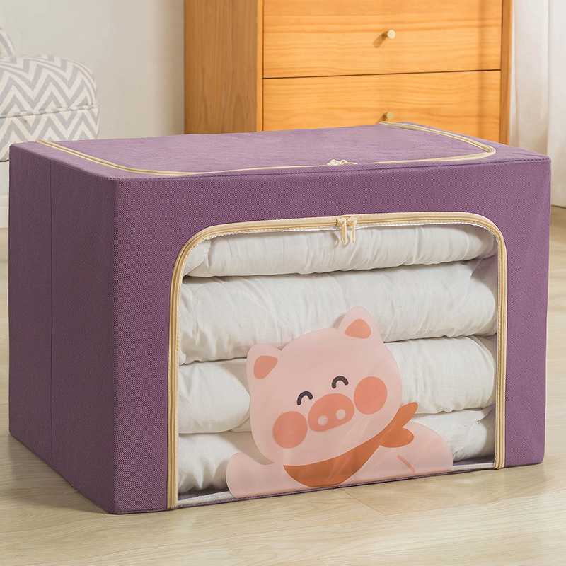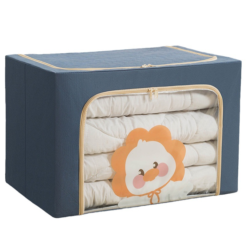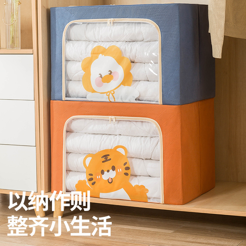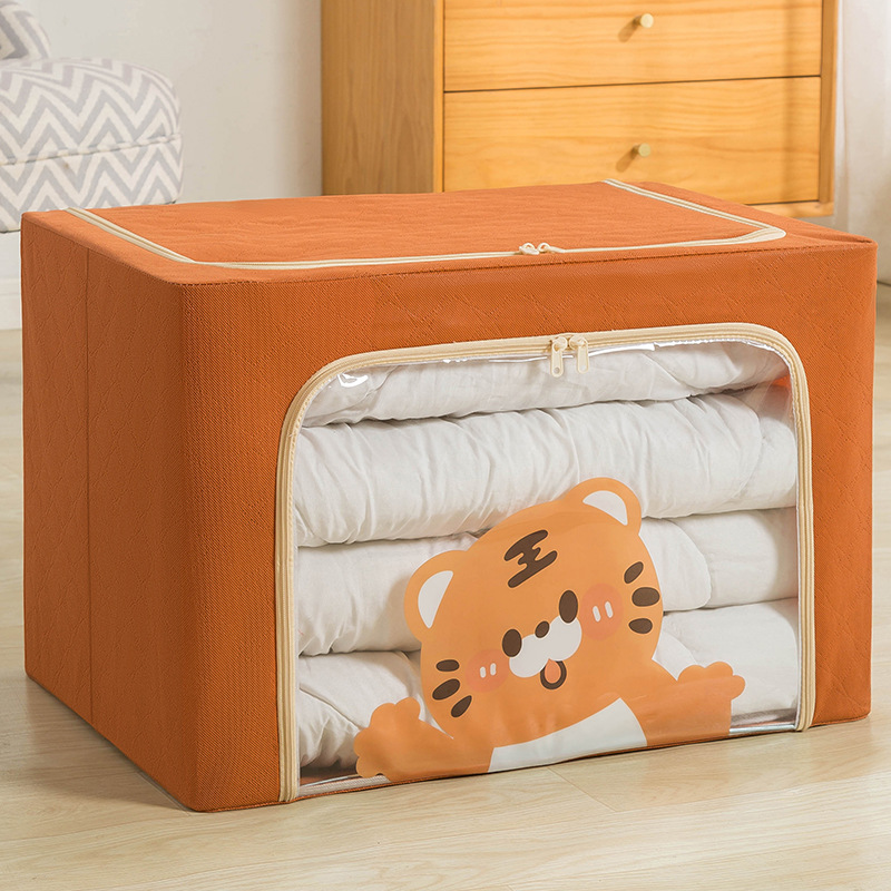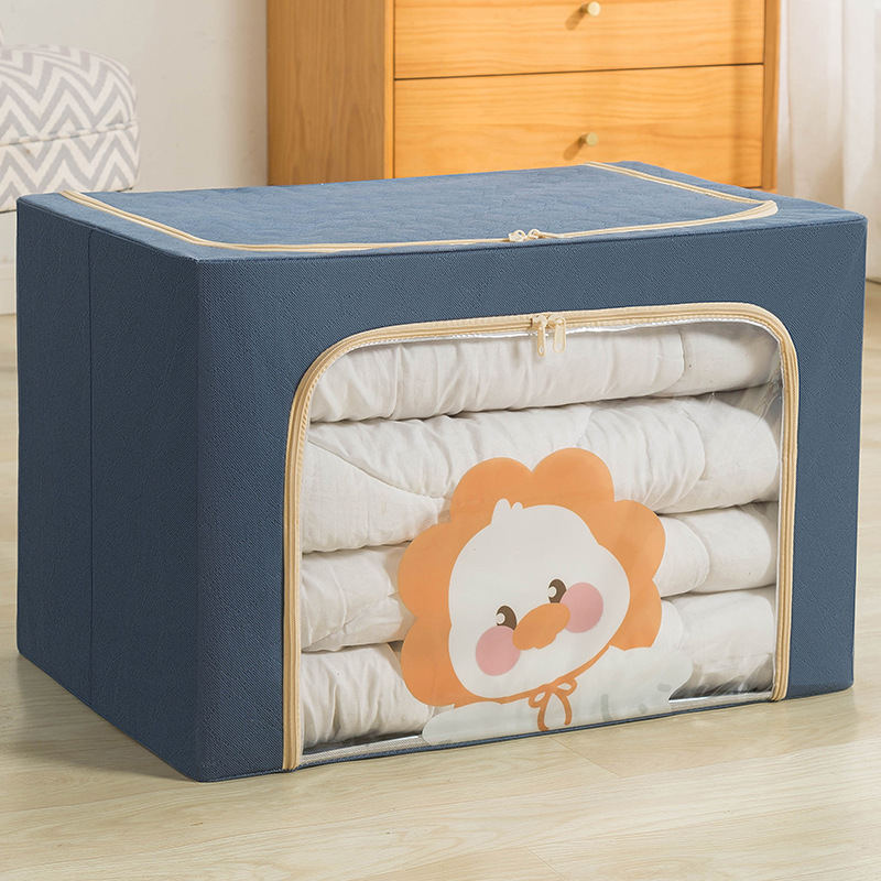 现货批发加厚布艺棉被整理箱卧室衣物收纳箱卡通布艺百纳钢架箱