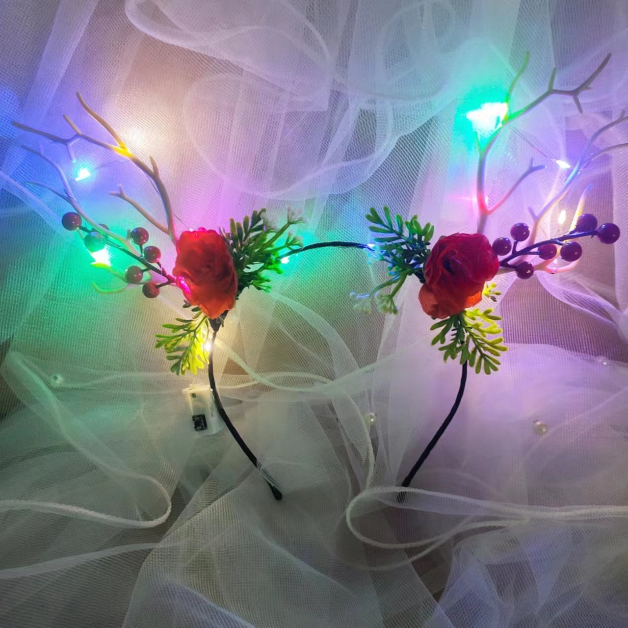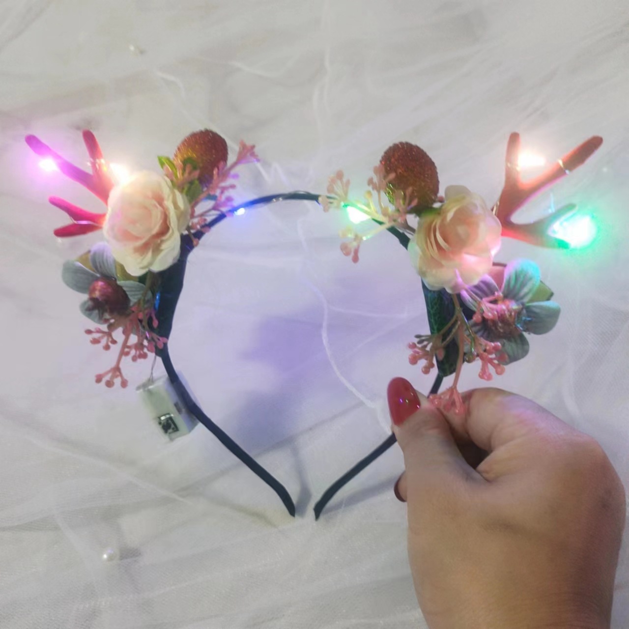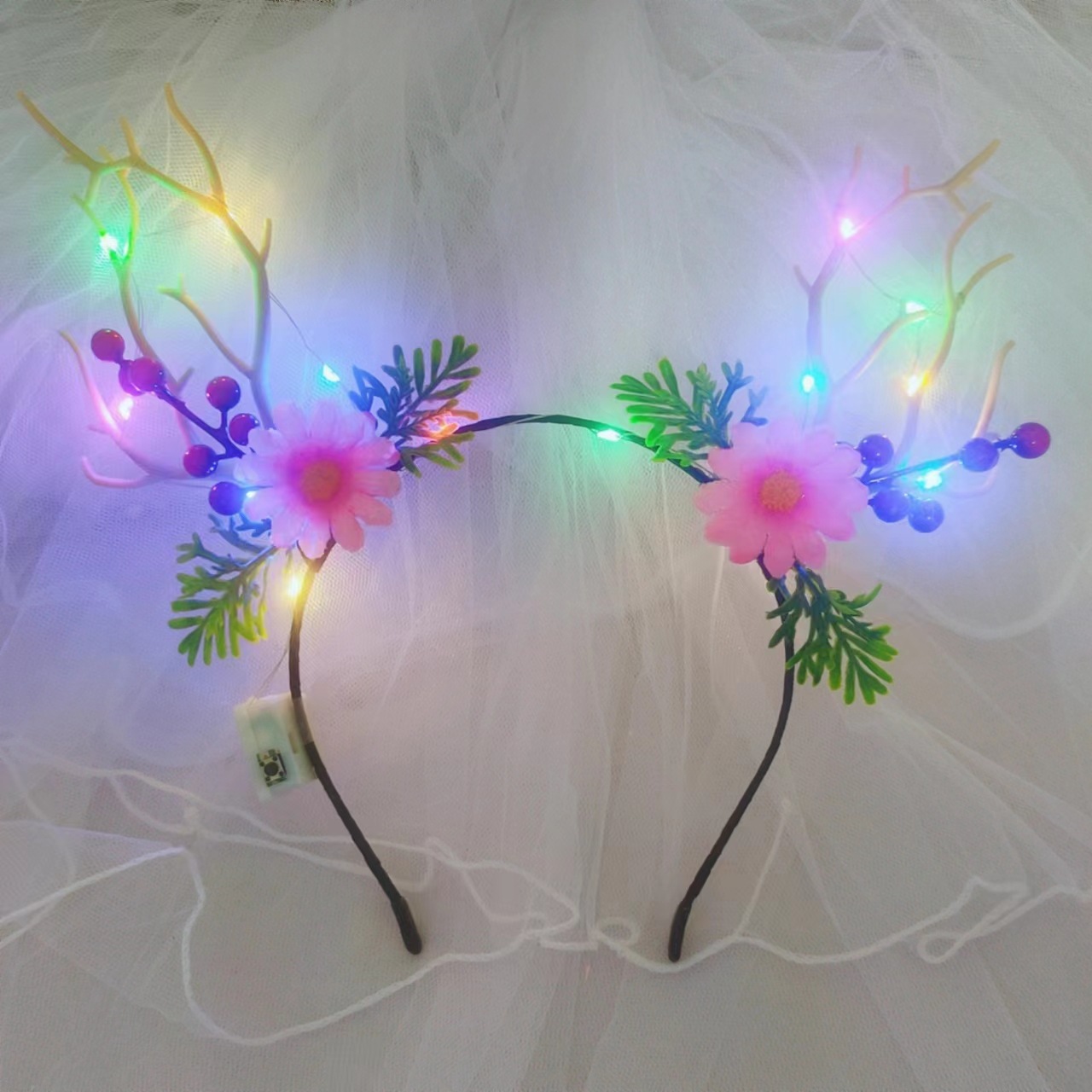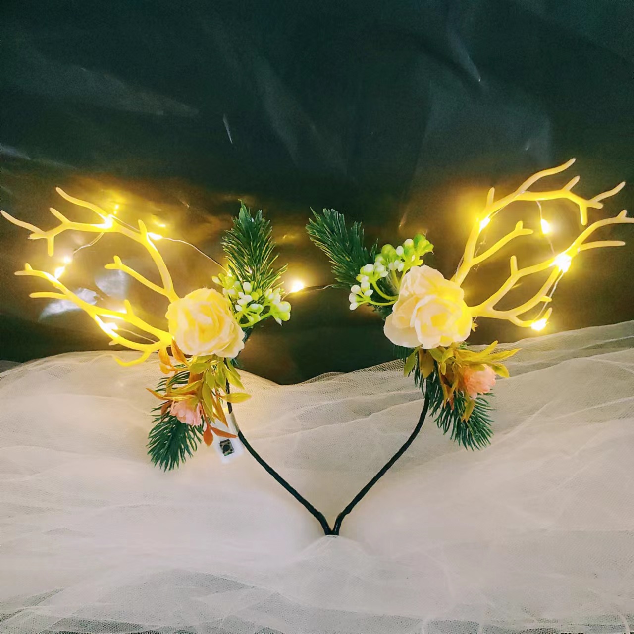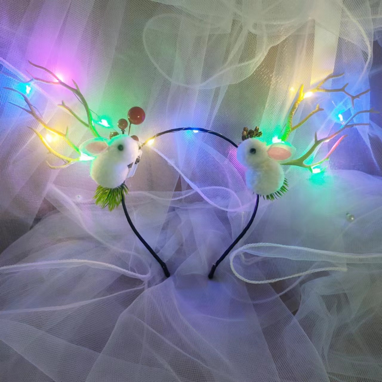新款发光头饰麋鹿鹿角头箍圣诞节闪光发箍花仙子儿童晚会夜市玩具