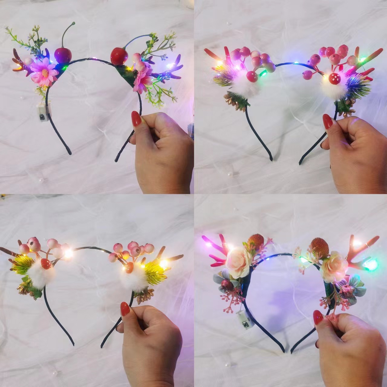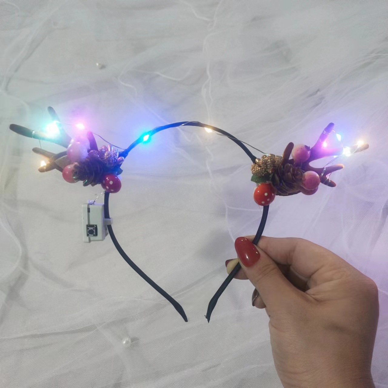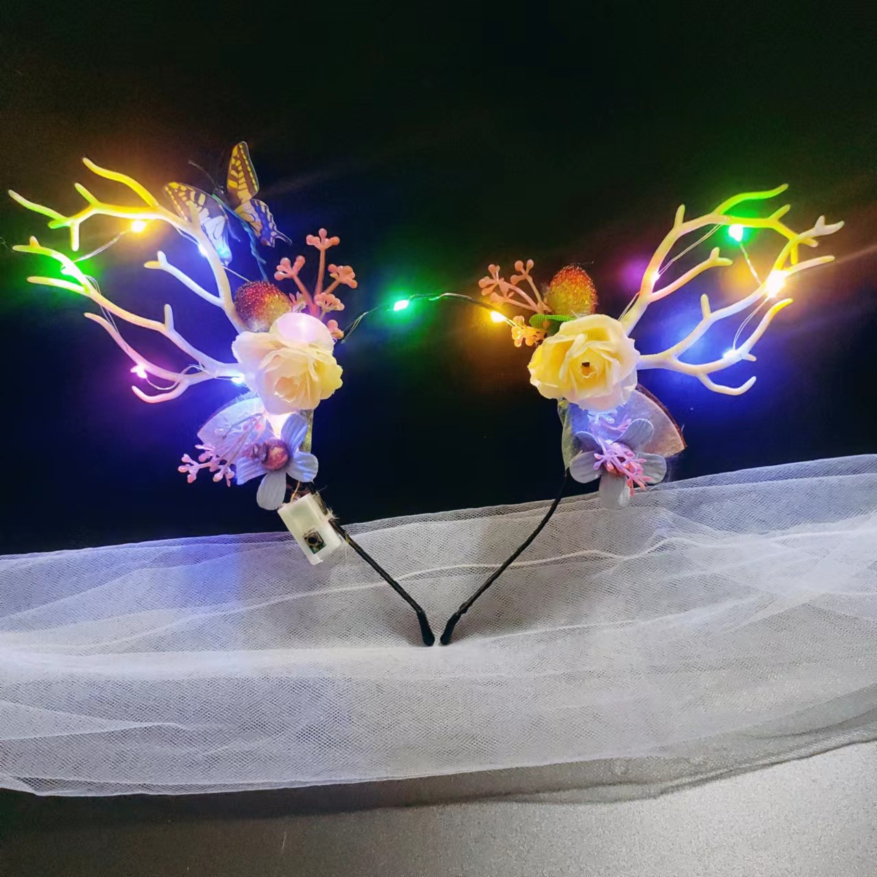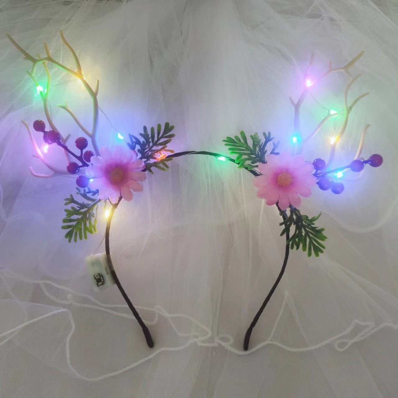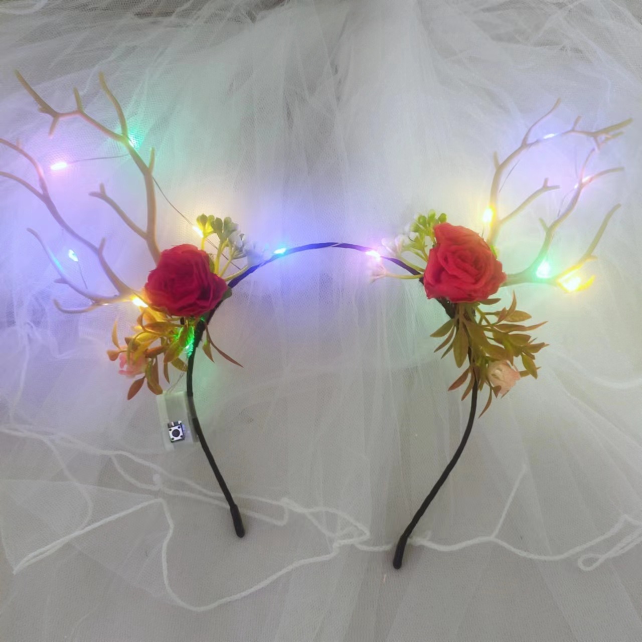 新款发光头饰麋鹿鹿角头箍圣诞节闪光发箍花仙子儿童晚会夜市玩具