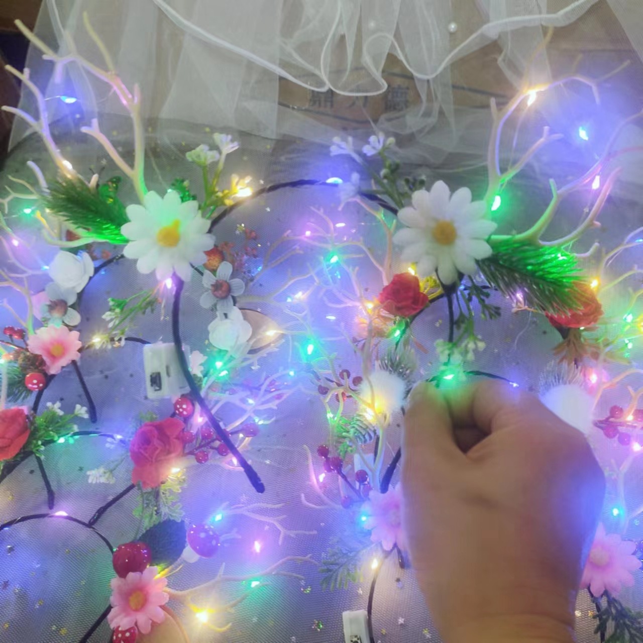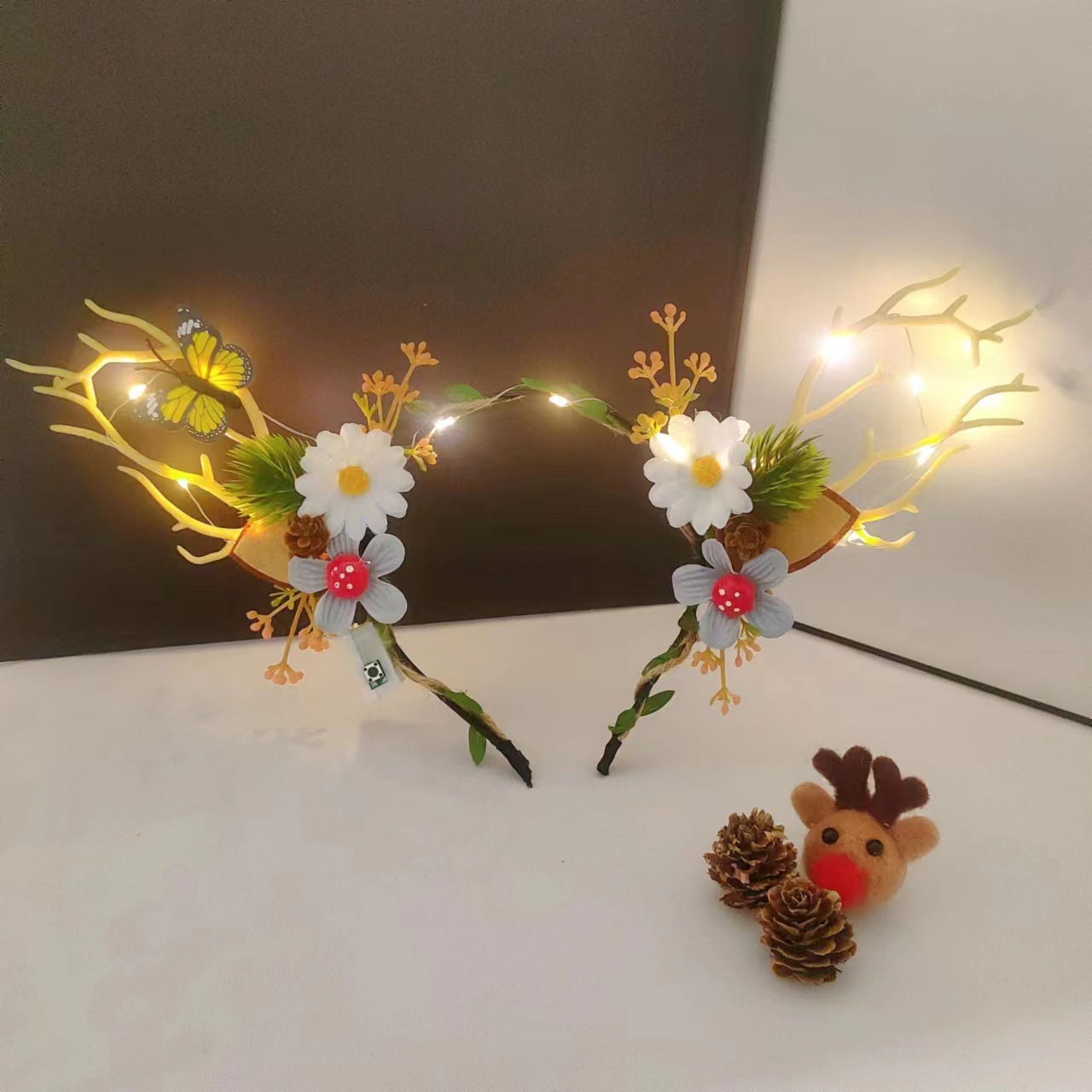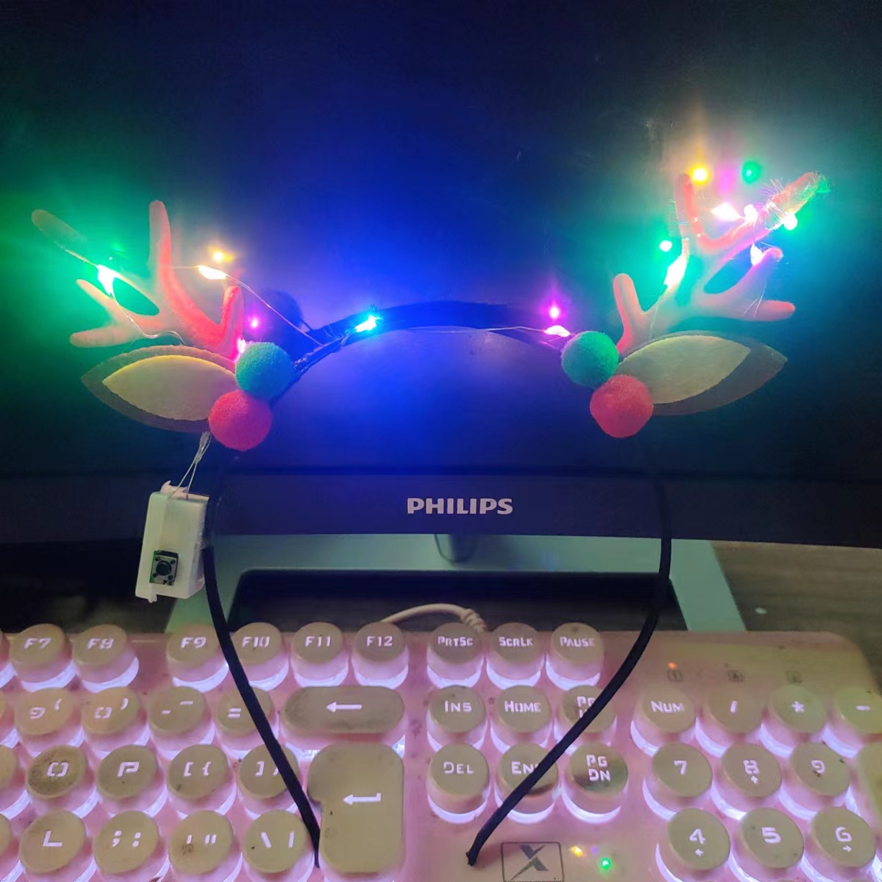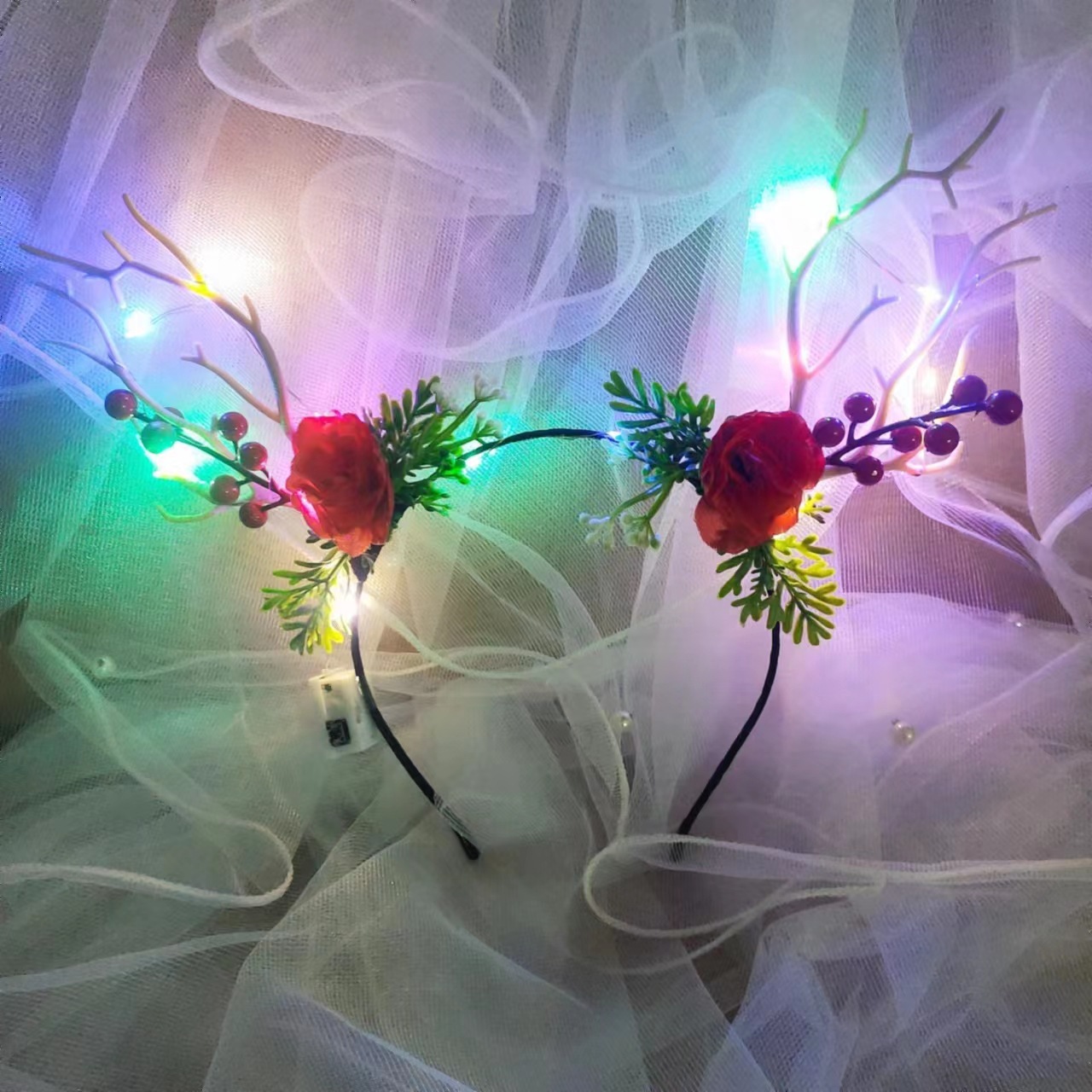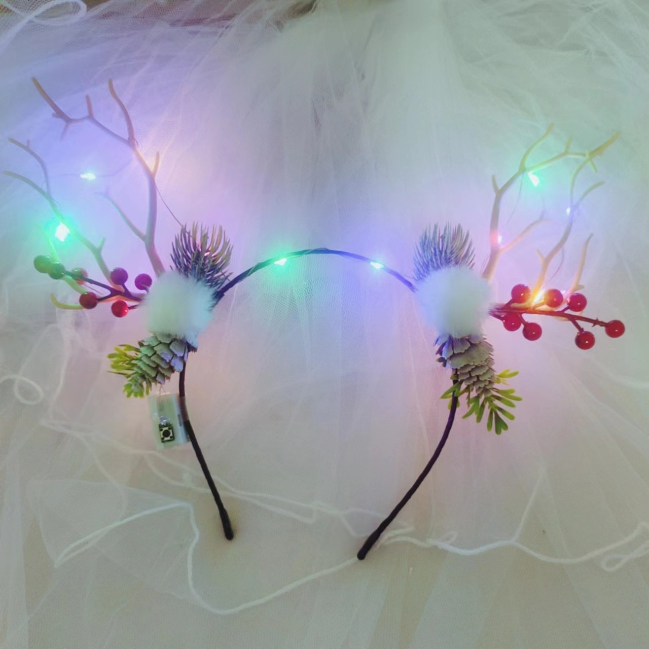 新款发光头饰麋鹿鹿角头箍圣诞节闪光发箍花仙子儿童晚会夜市玩具