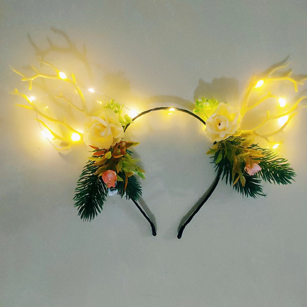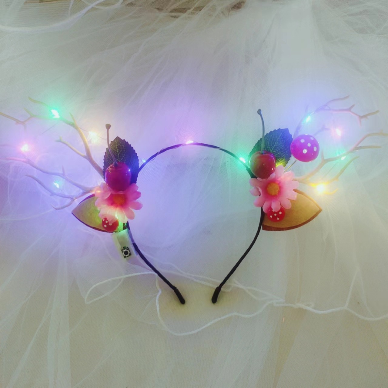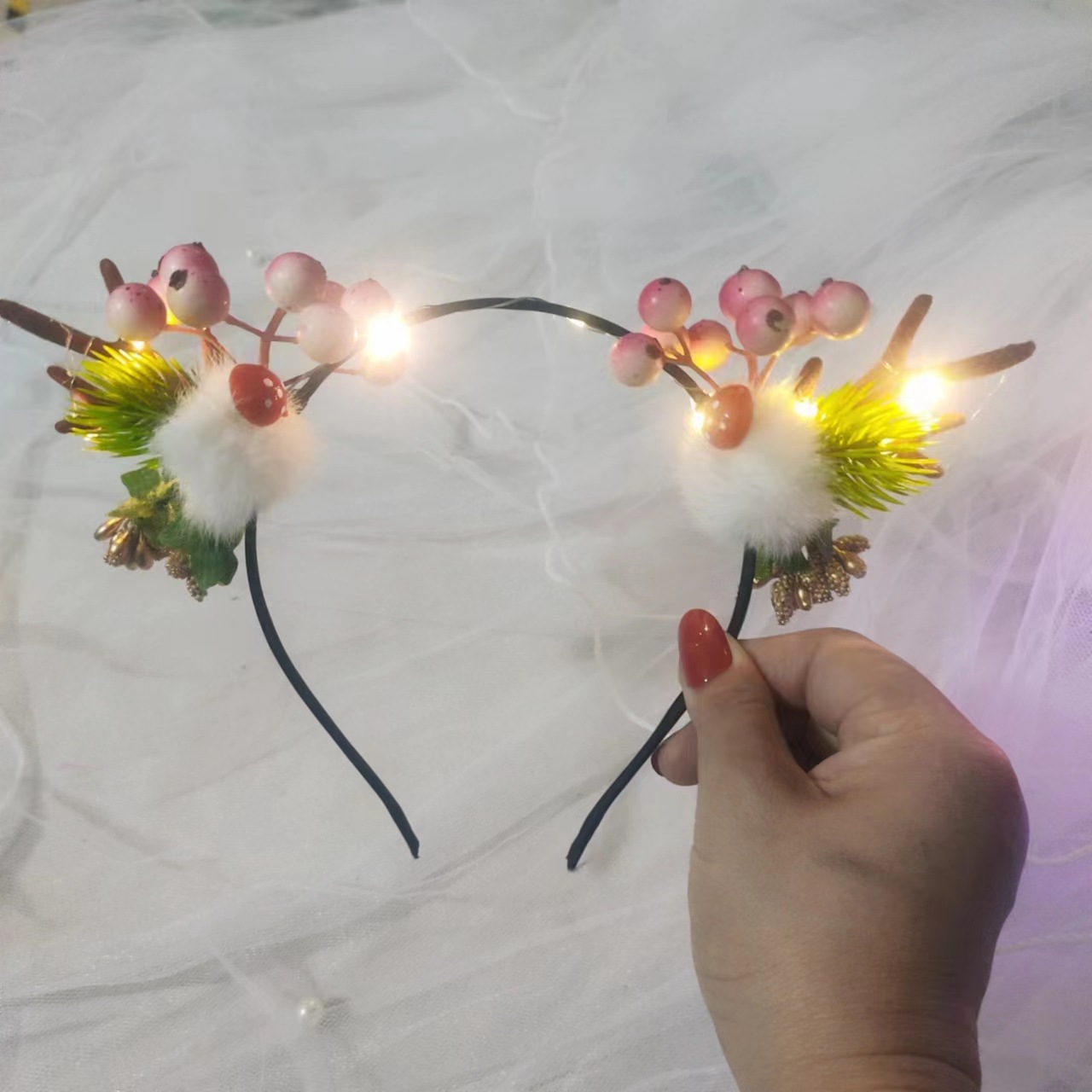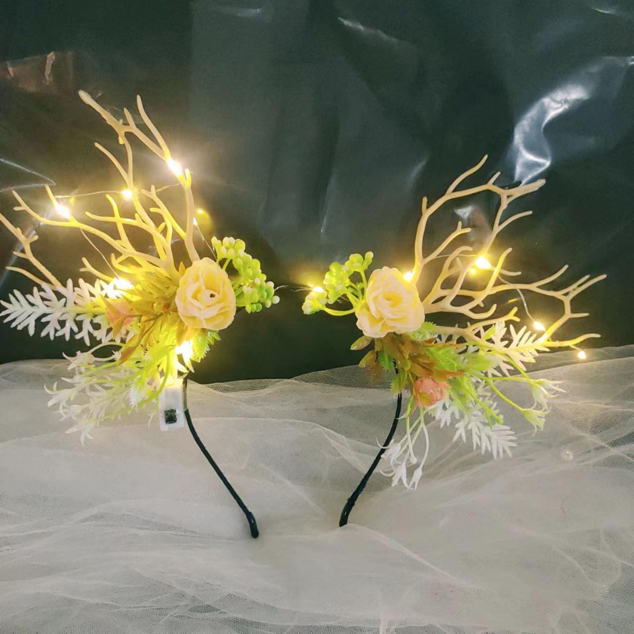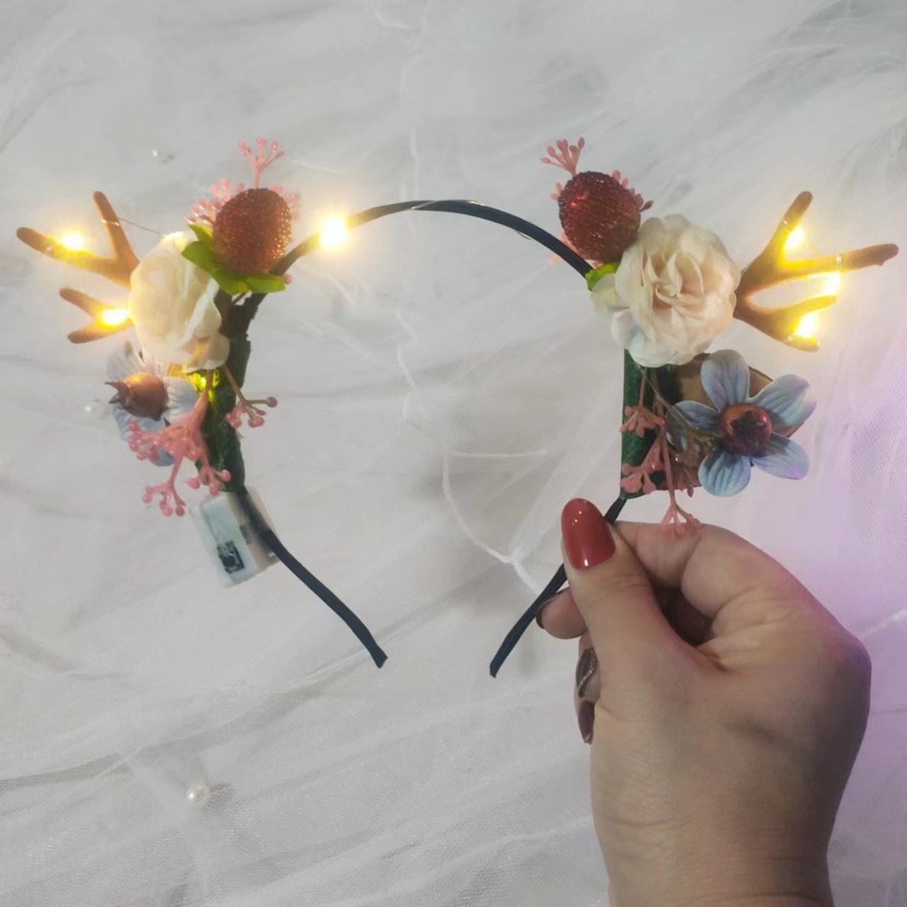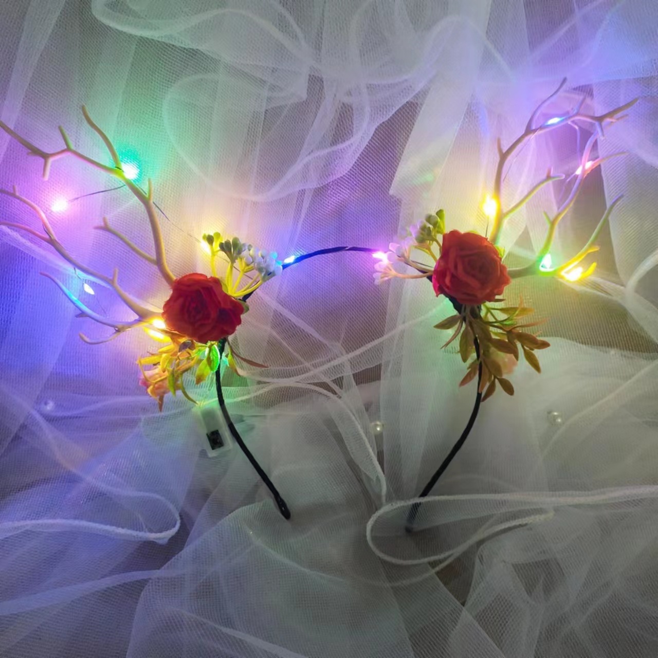 新款发光头饰麋鹿鹿角头箍圣诞节闪光发箍花仙子儿童晚会夜市玩具
