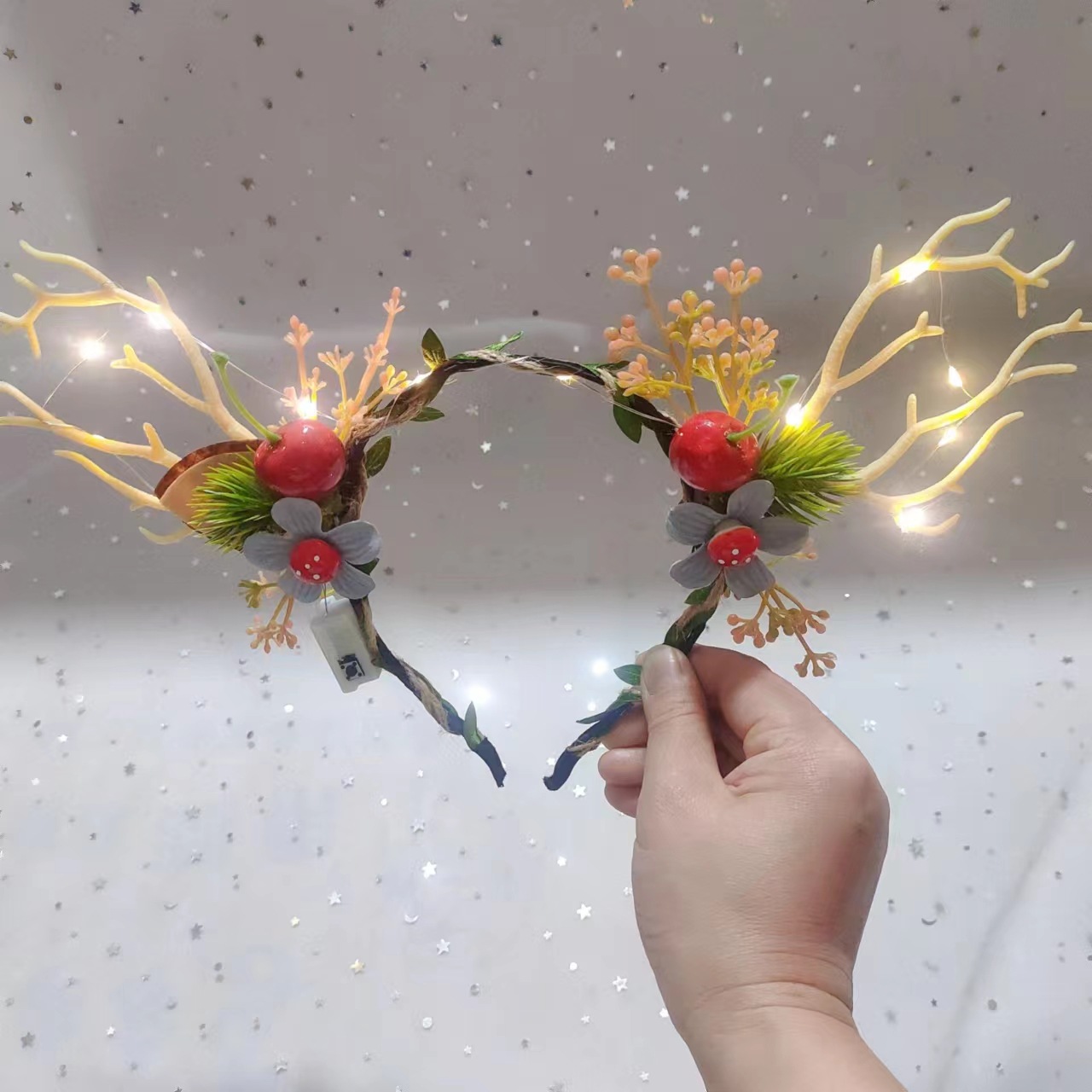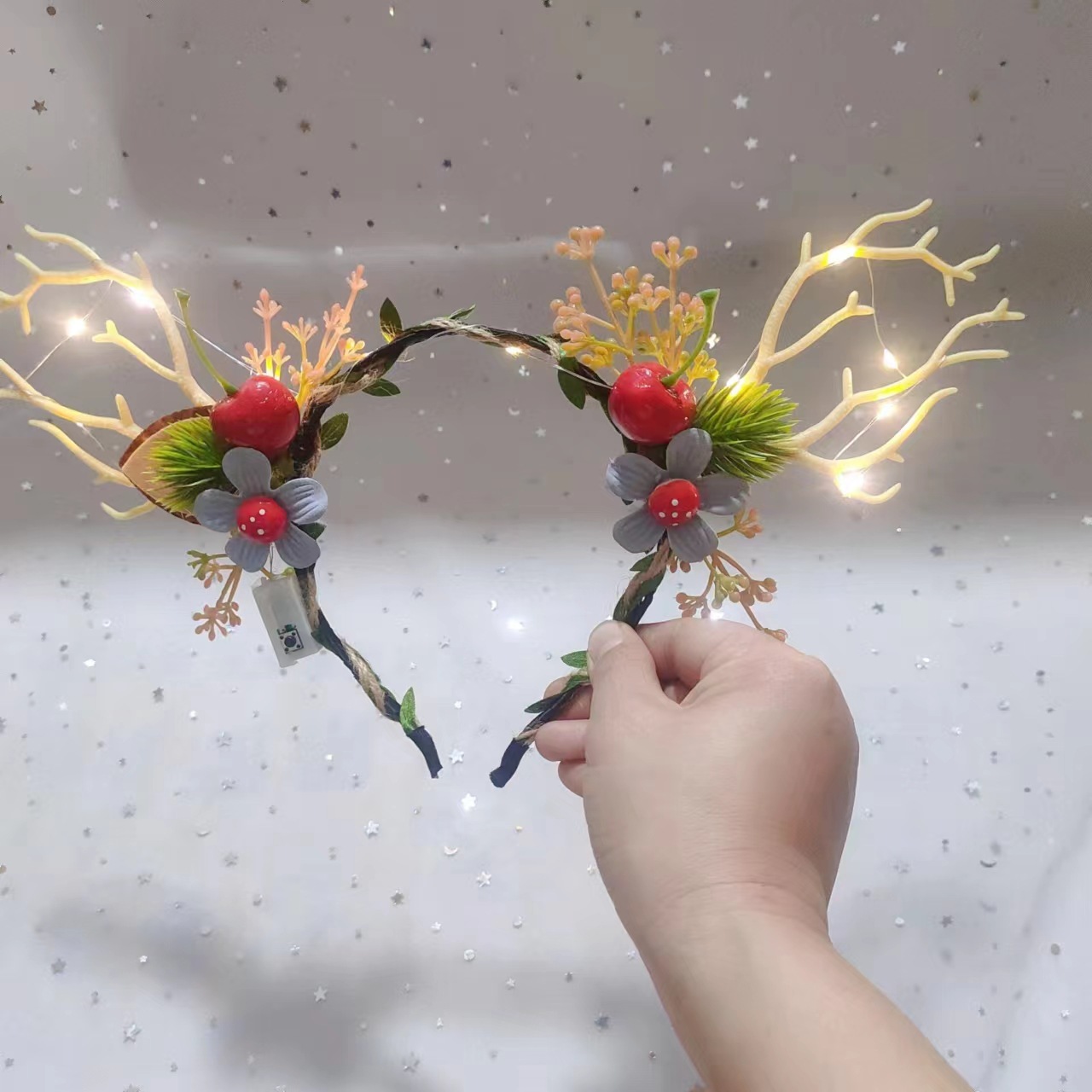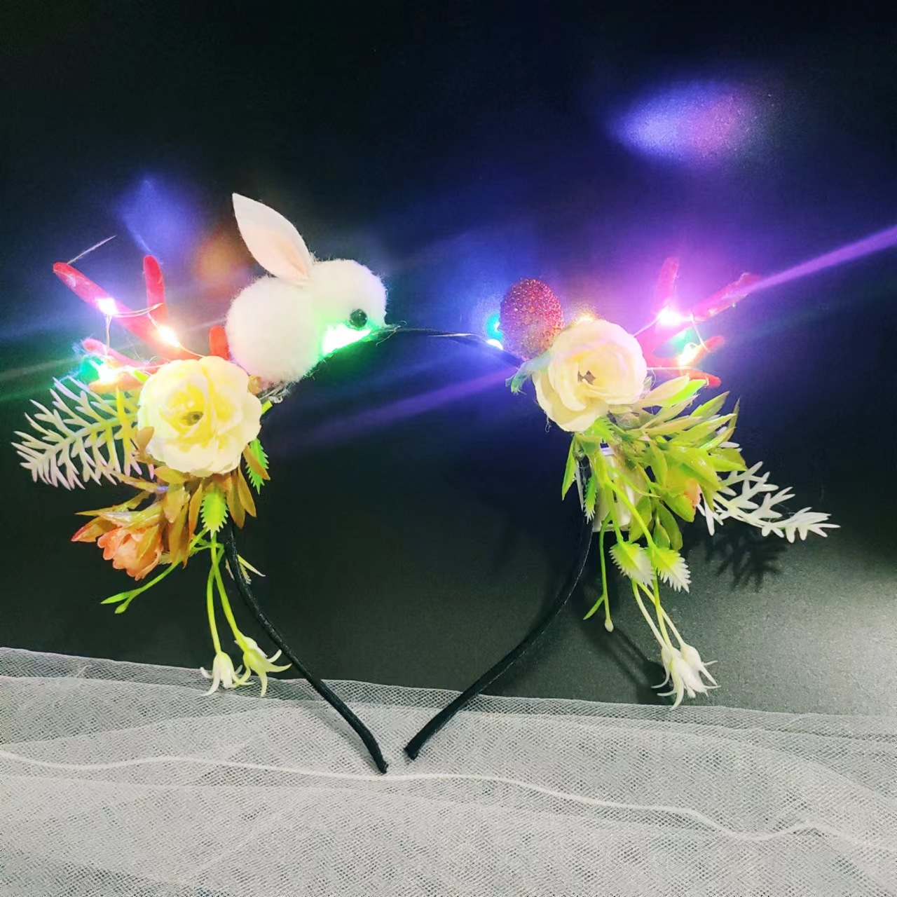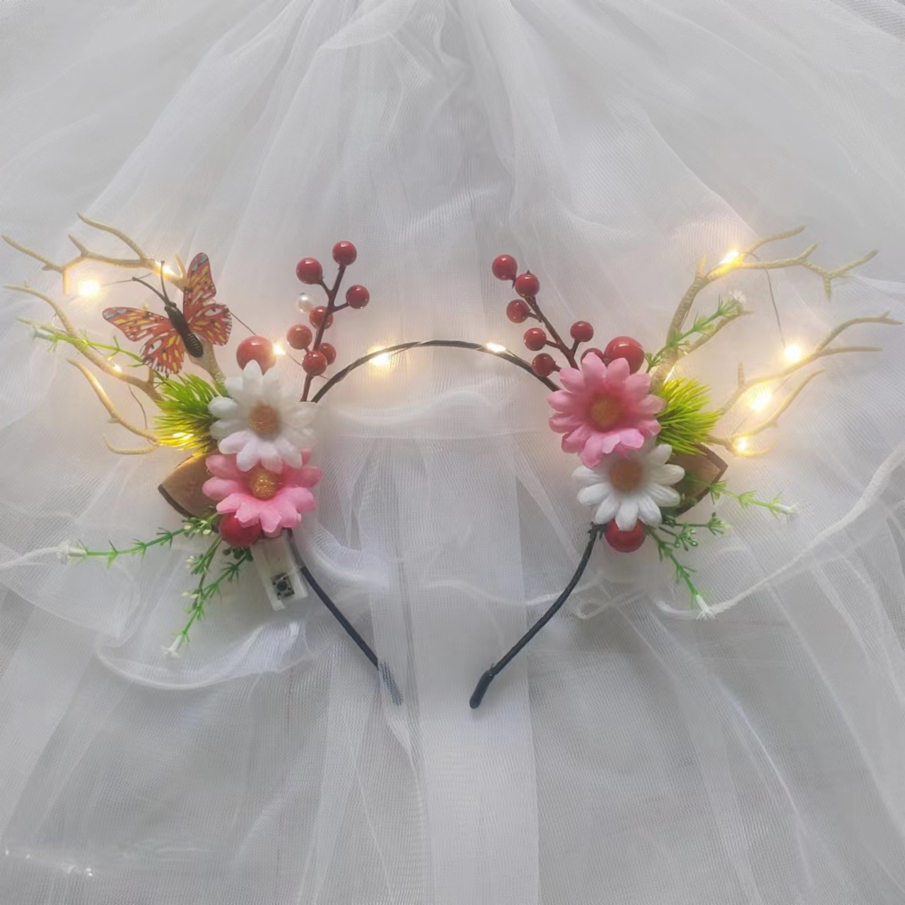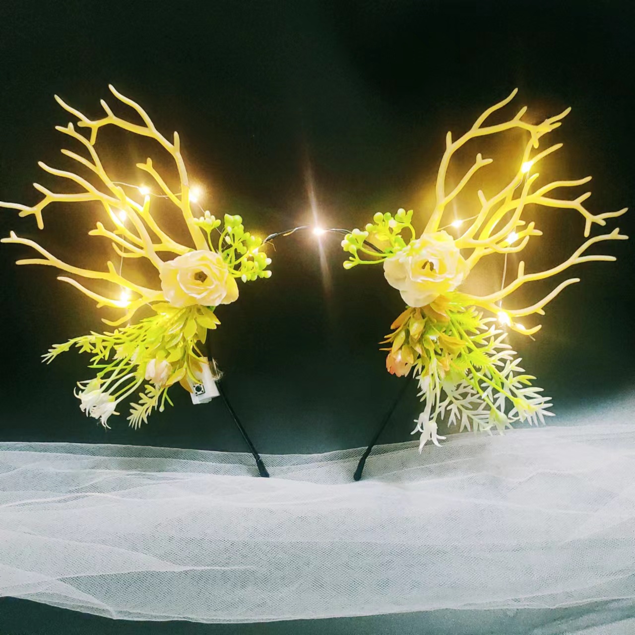 新款发光头饰麋鹿鹿角头箍圣诞节闪光发箍花仙子儿童晚会夜市玩具