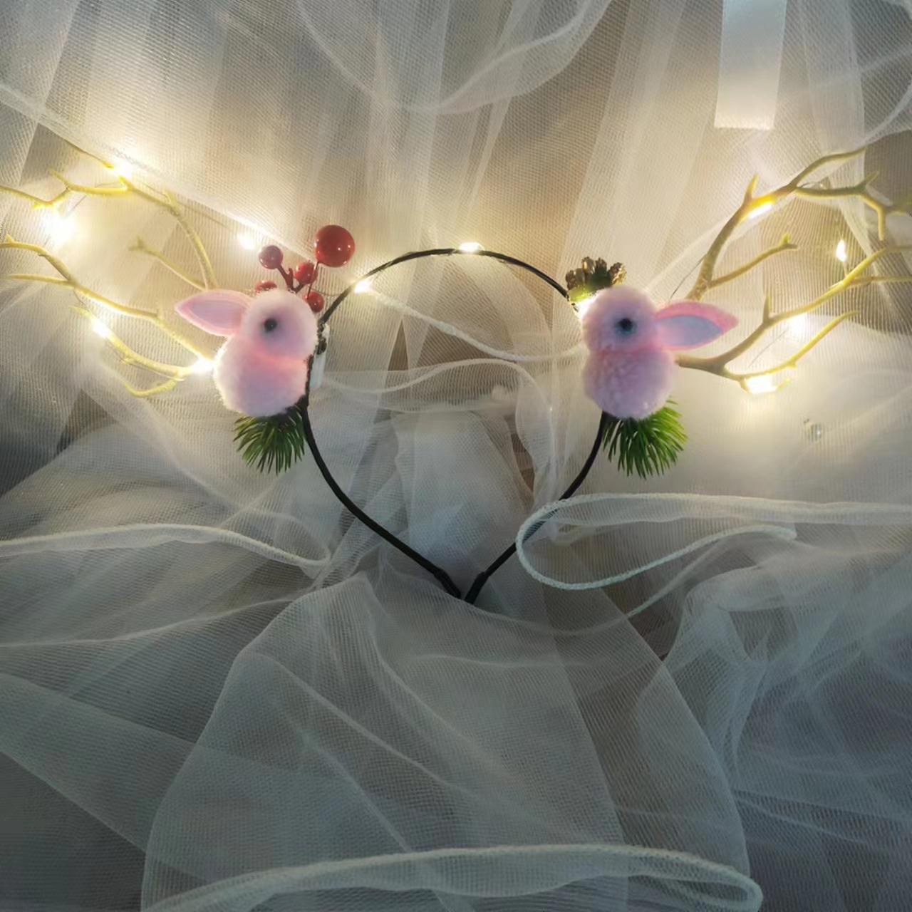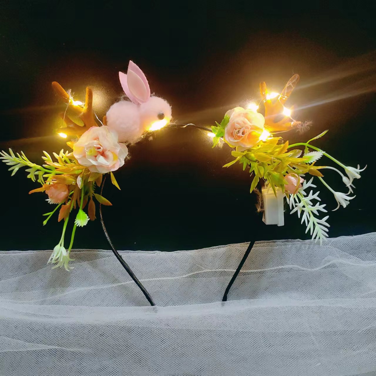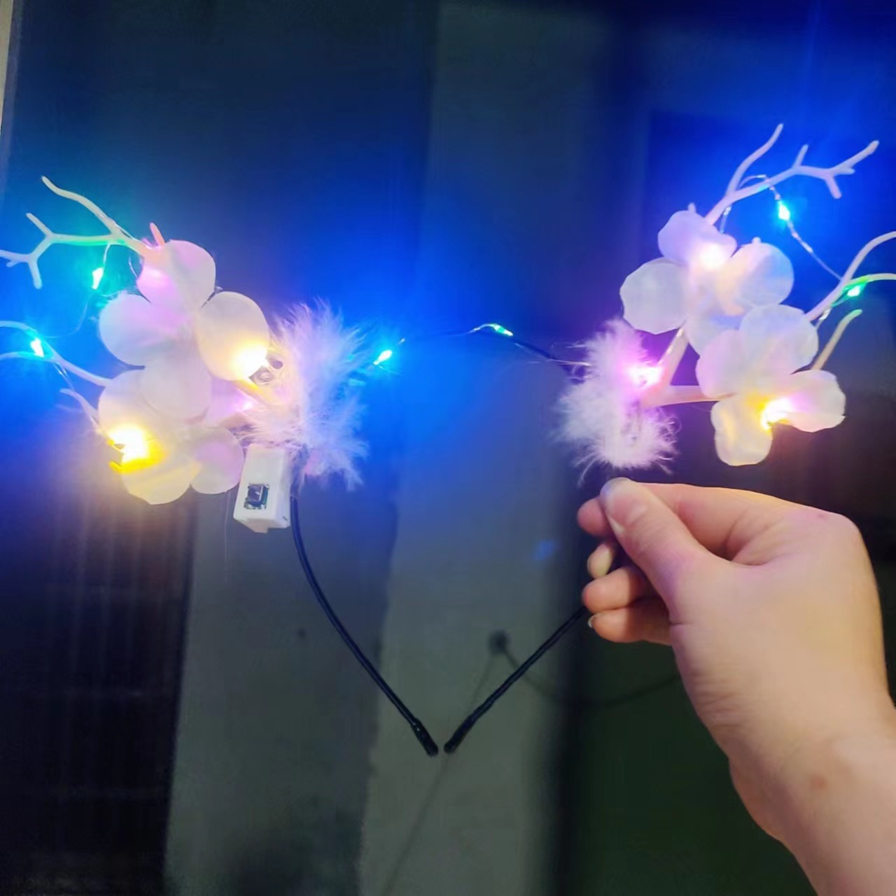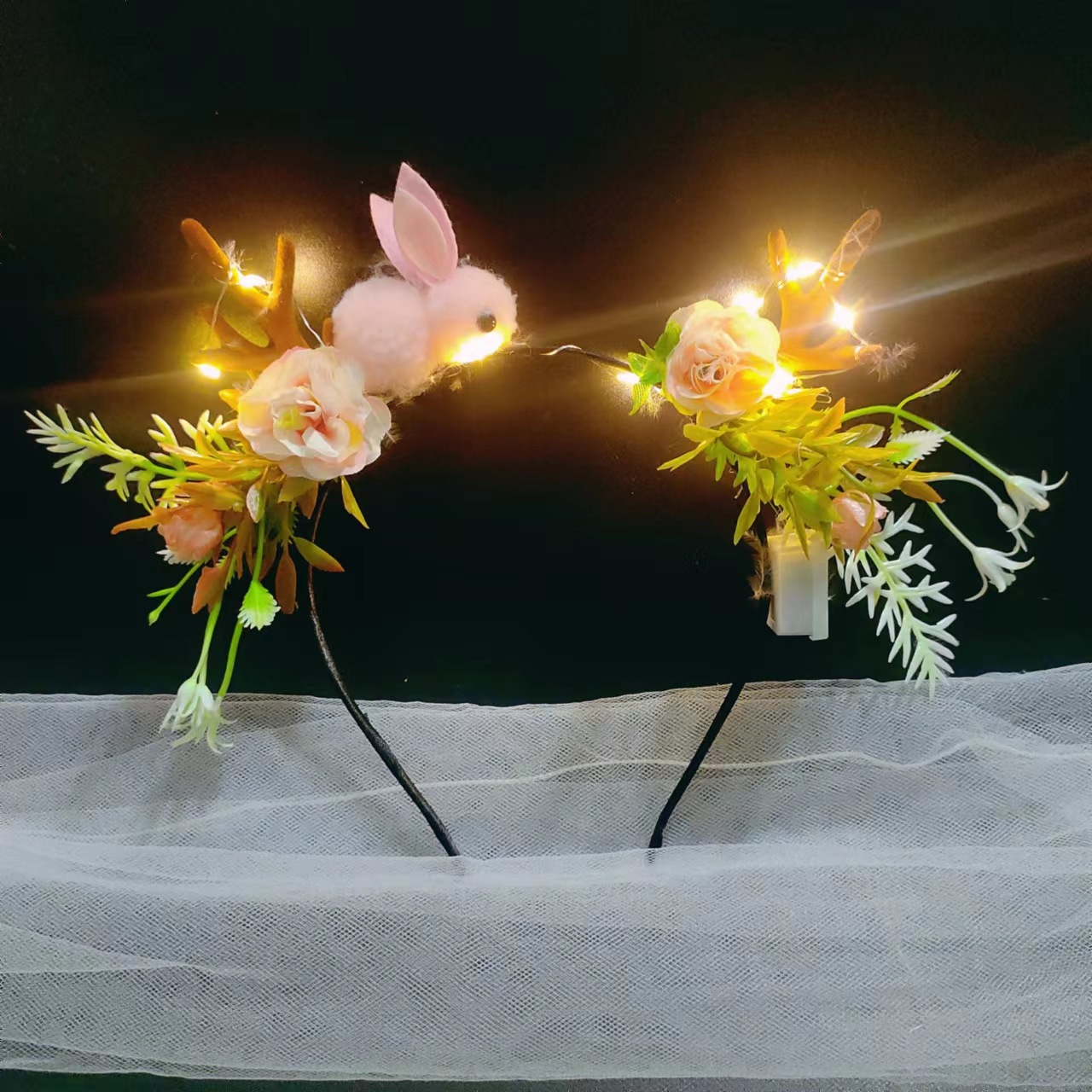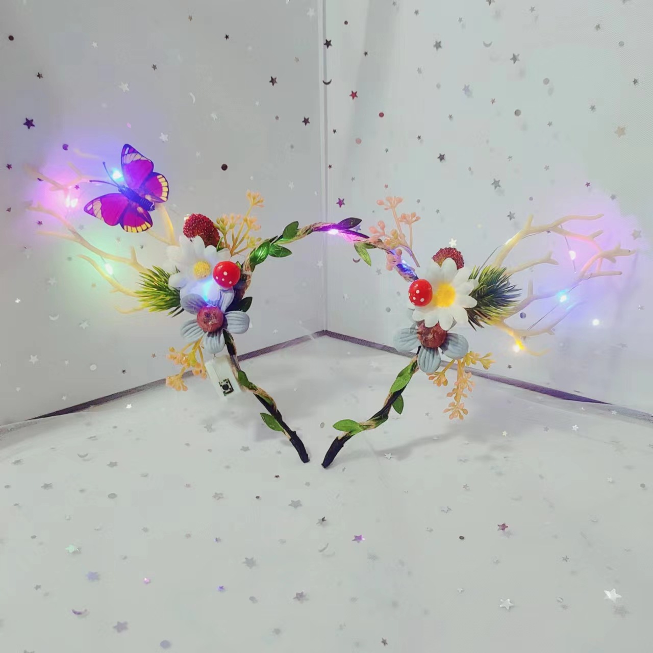 新款发光头饰麋鹿鹿角头箍圣诞节闪光发箍花仙子儿童晚会夜市玩具