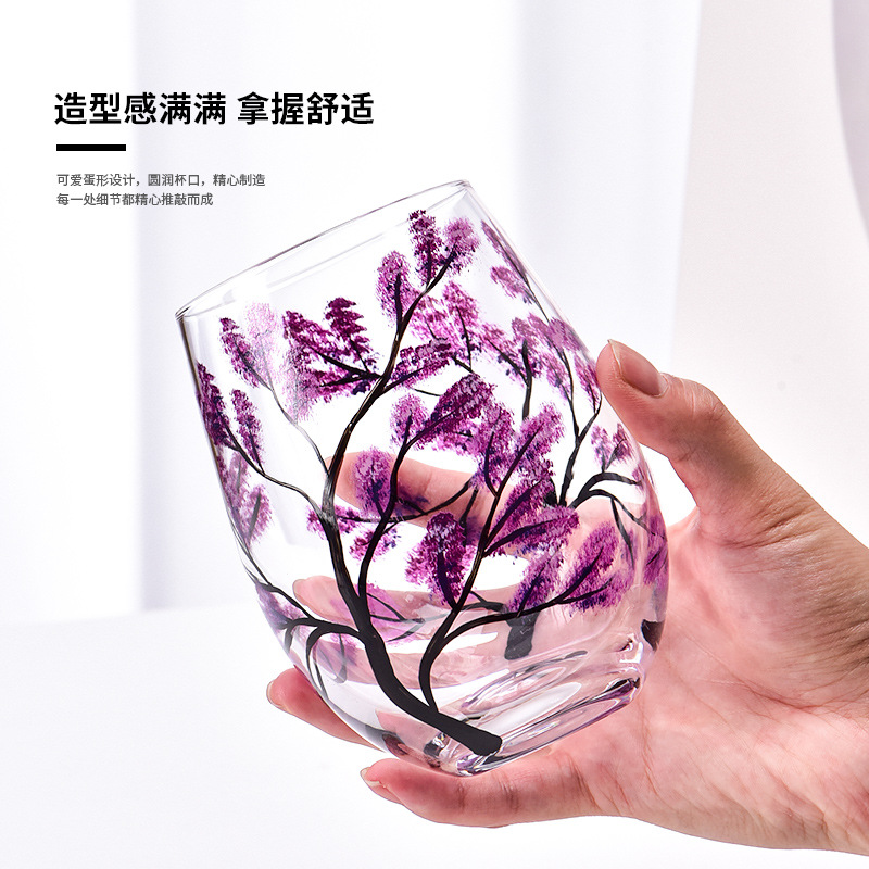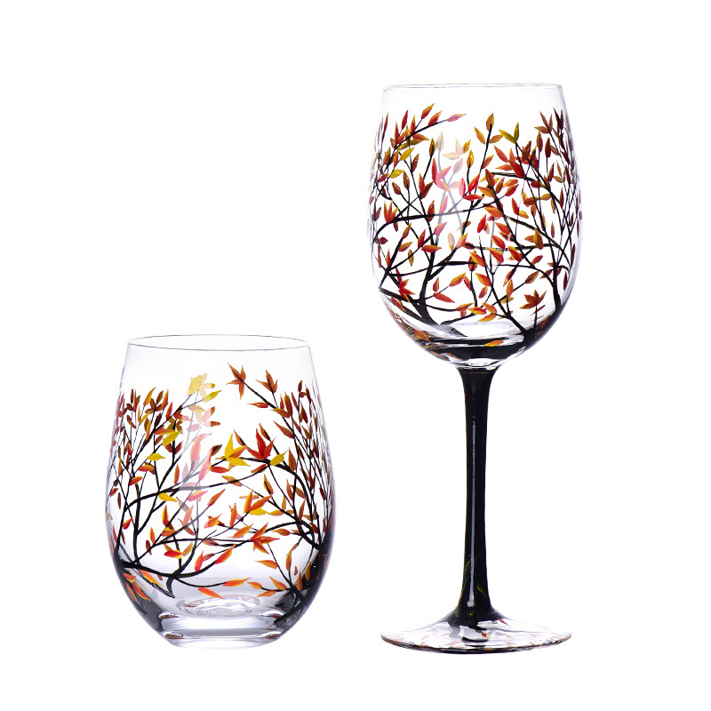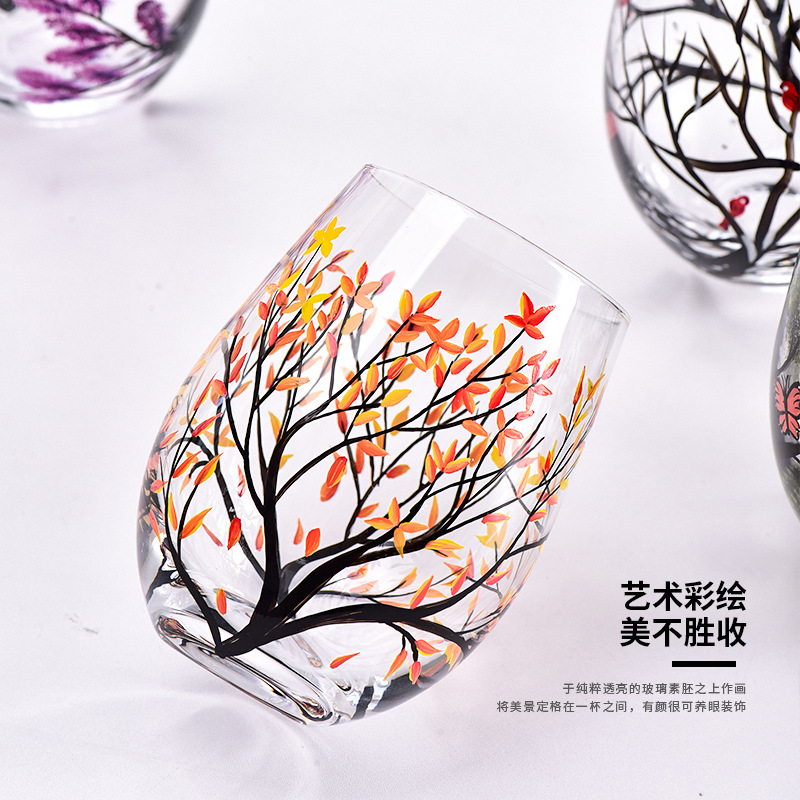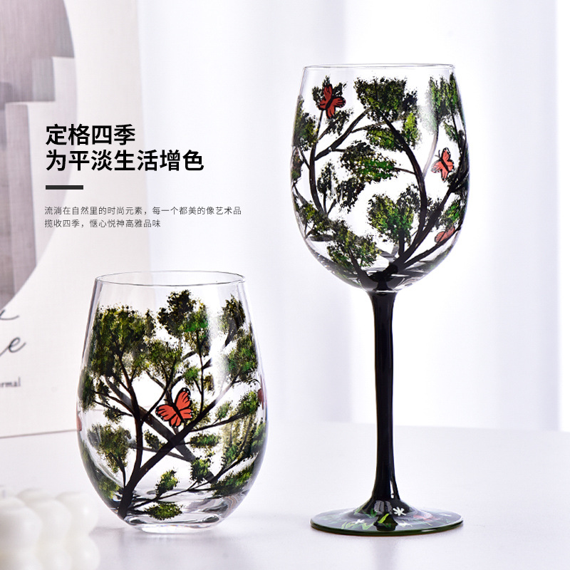 轻奢ins水晶玻璃红酒杯手绘家居高脚杯四季彩绘葡萄酒杯蛋杯
