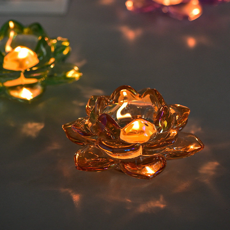 厂家玻璃彩色莲花烛台批发玻璃烛台蜡台透明玻璃烛台家用皇冠