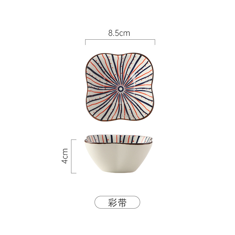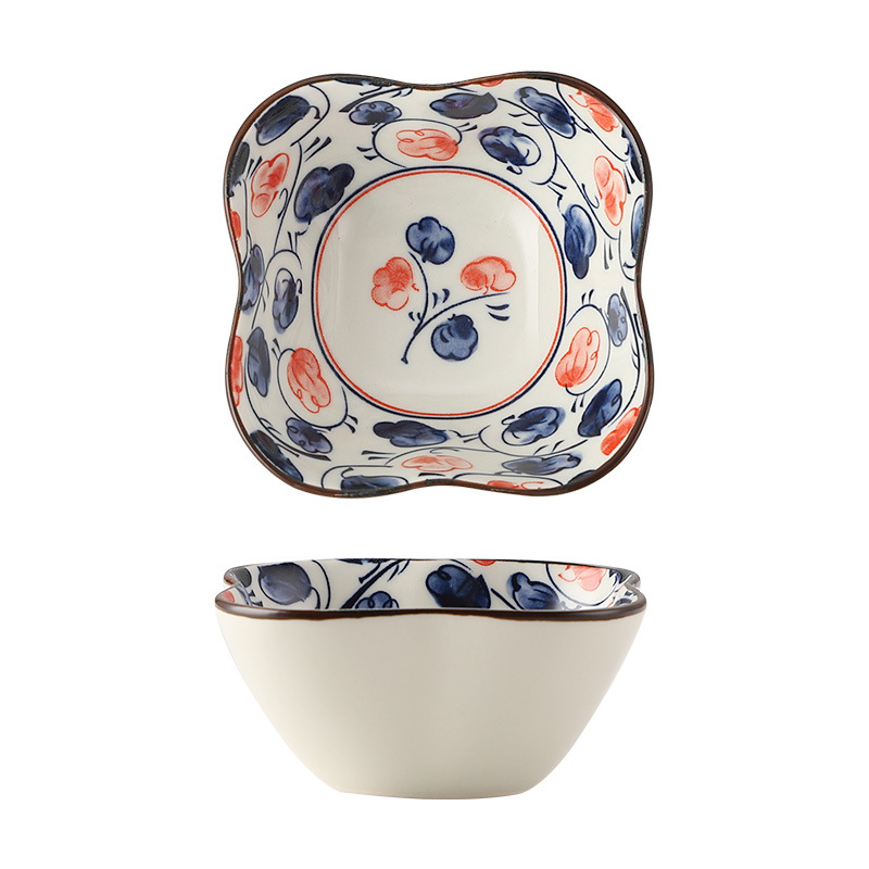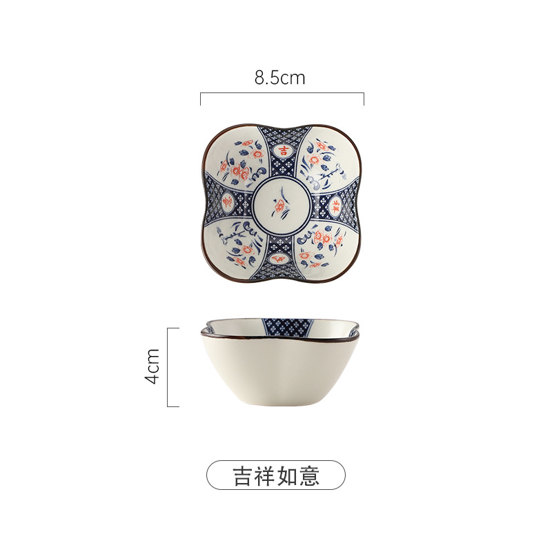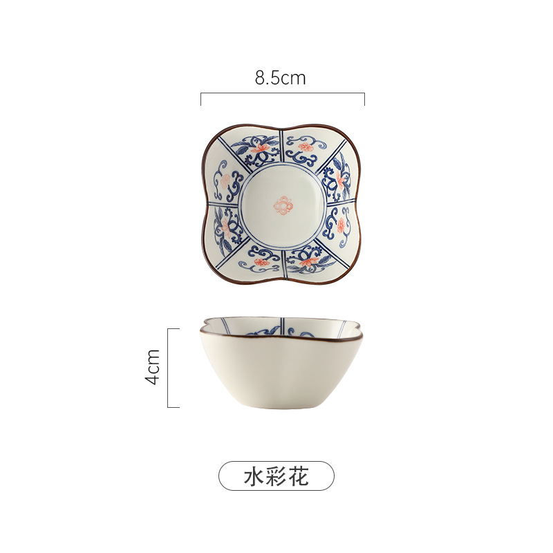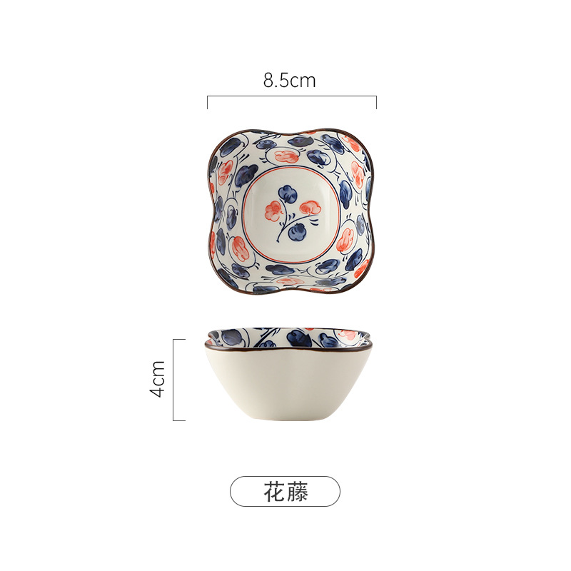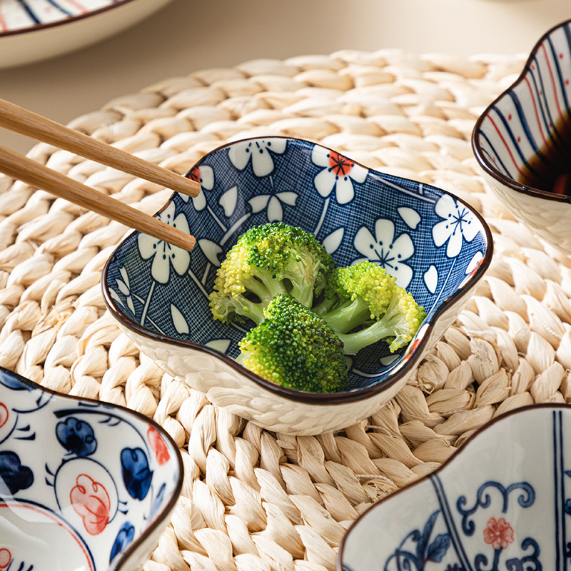 日式复古风釉下彩陶瓷花型碗家用餐厅大容量酱料火锅碟零食小味碟