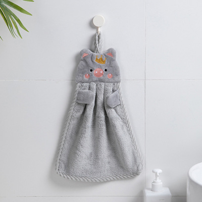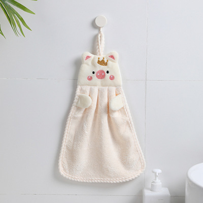 日韩儿童创意可爱珊瑚绒绣花小猪擦手巾挂式吸水厨房家用手巾手帕