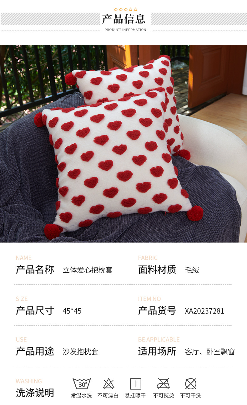 爱心抱枕套 现代简约风靠枕靠垫套 立体沙发客厅柔软抱枕套