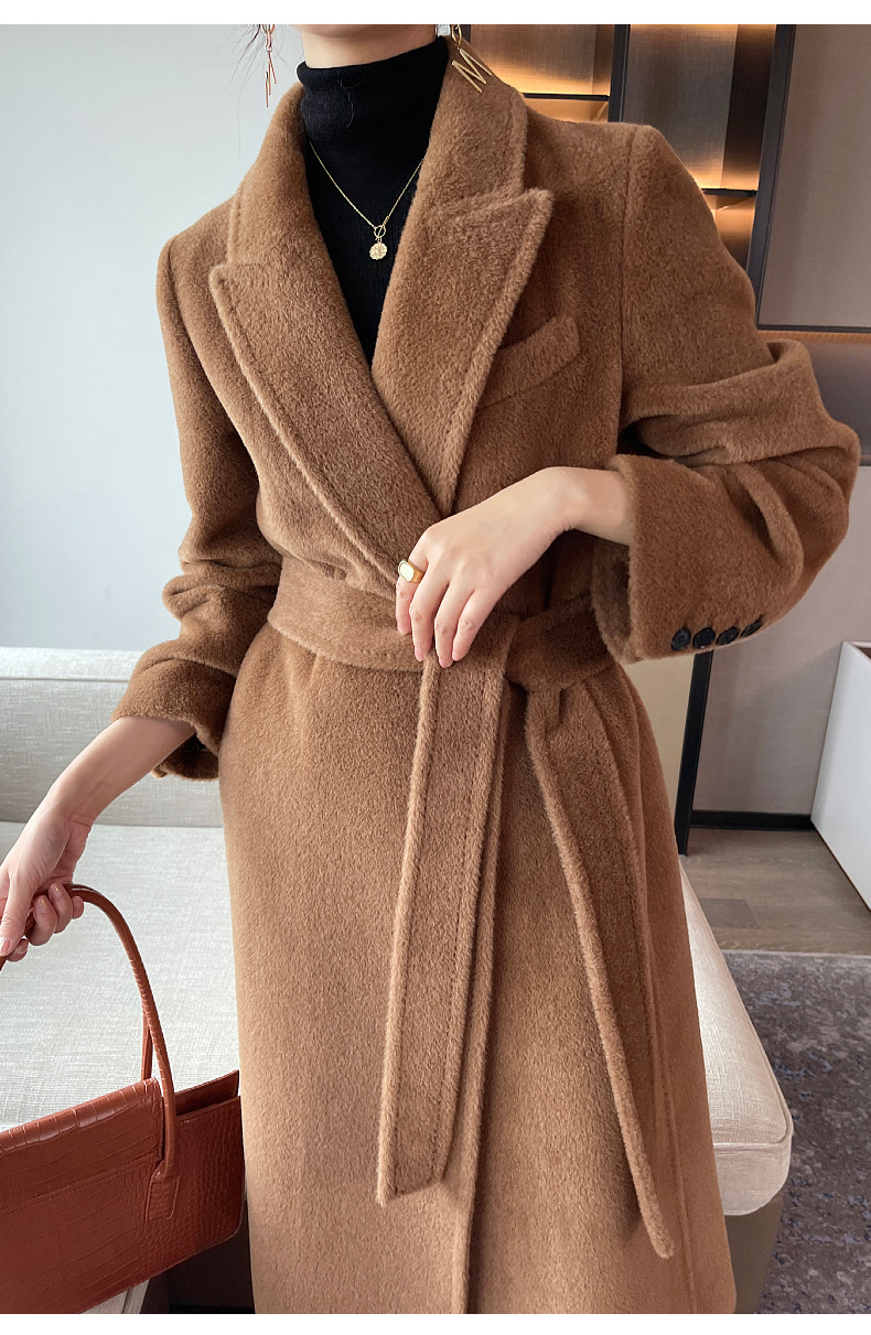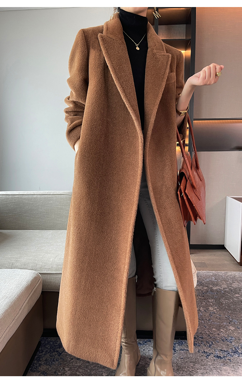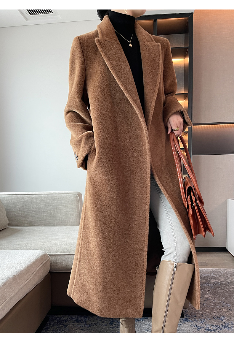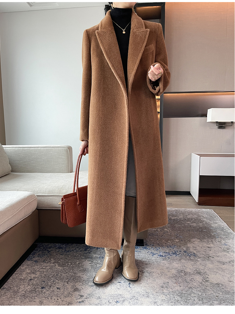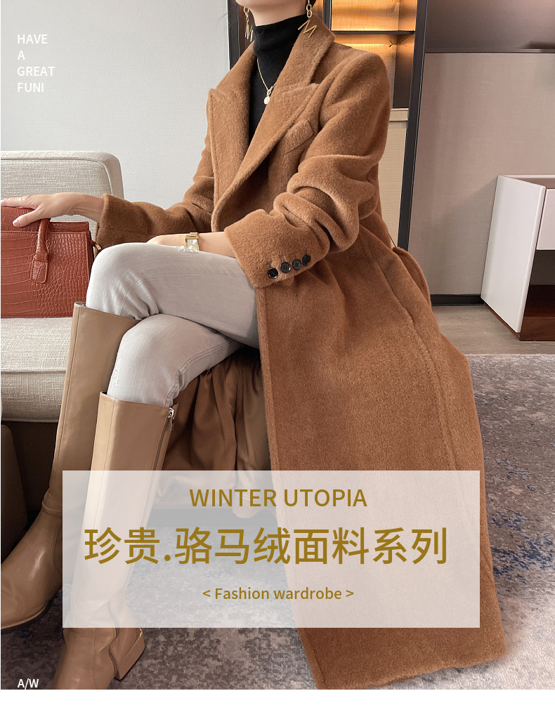 骆马绒羊绒大衣女2024冬季新款简约中长款羊驼绒阿尔巴卡毛呢外套