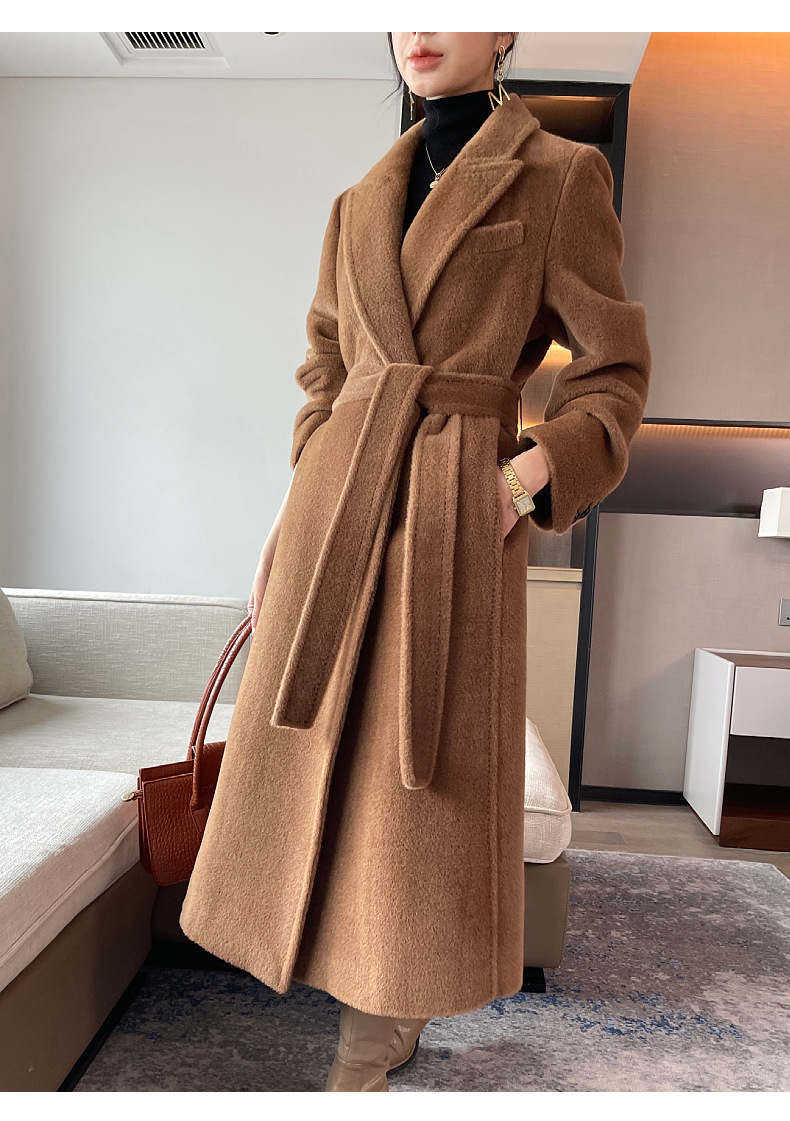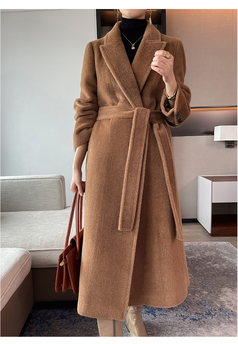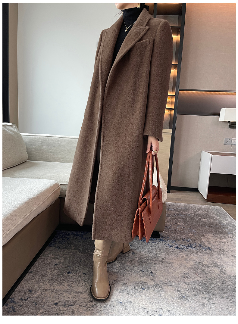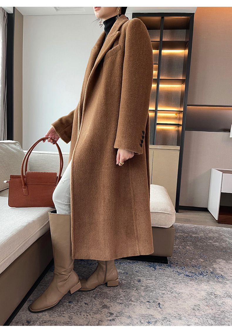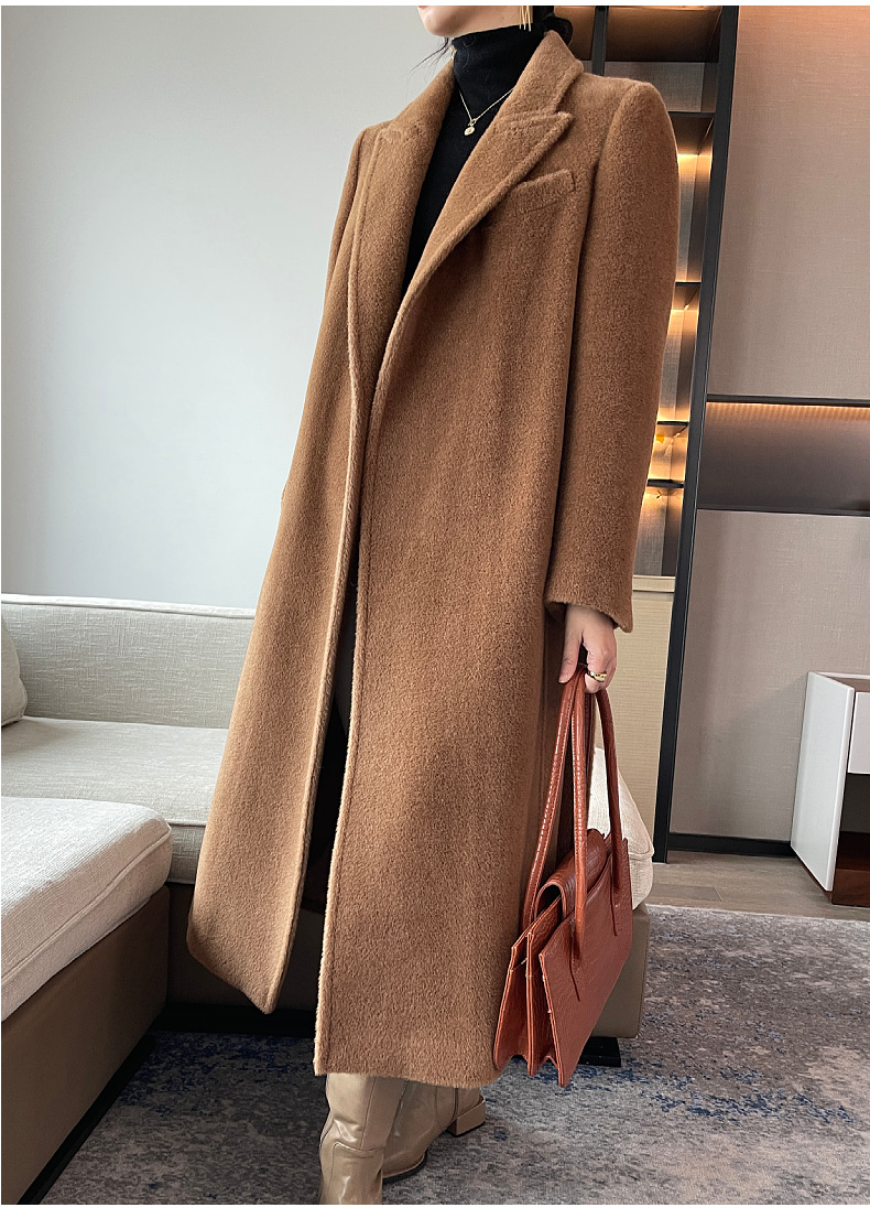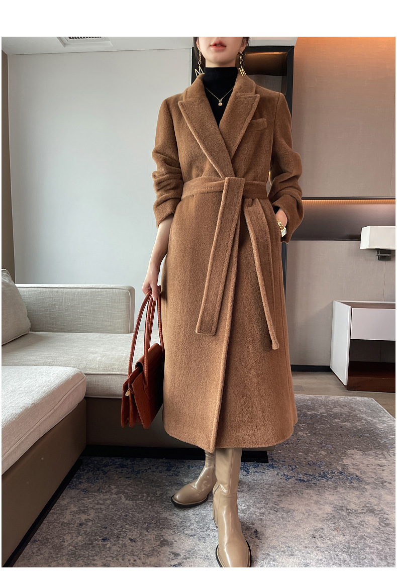 骆马绒羊绒大衣女2024冬季新款简约中长款羊驼绒阿尔巴卡毛呢外套