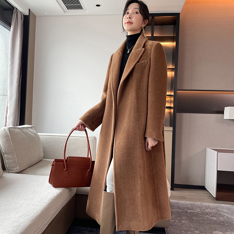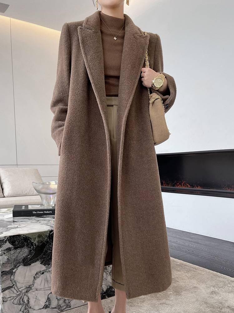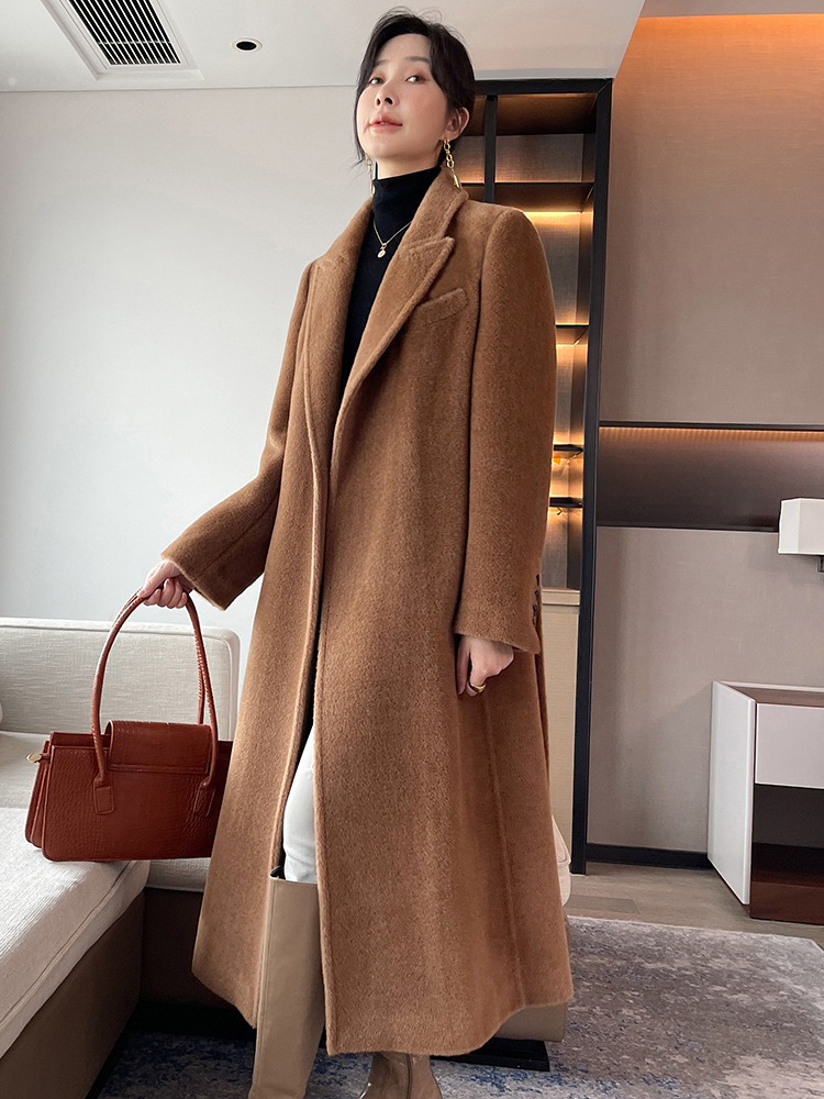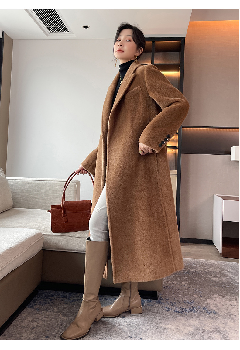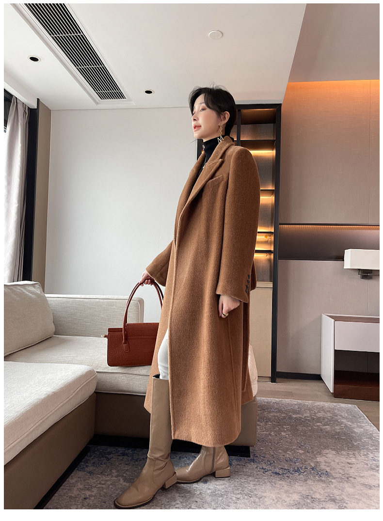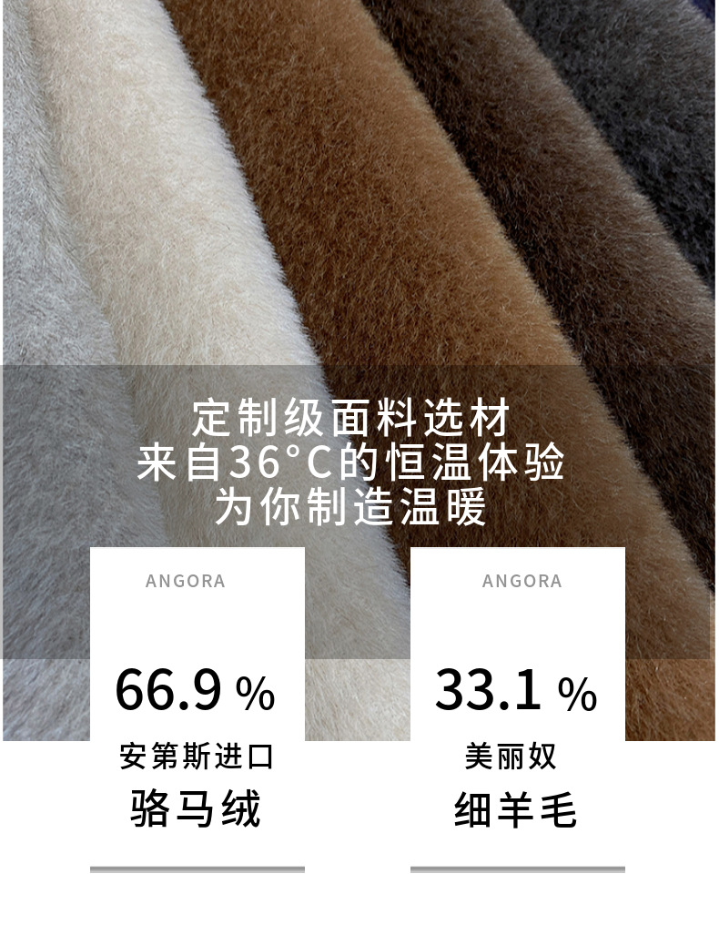 骆马绒羊绒大衣女2024冬季新款简约中长款羊驼绒阿尔巴卡毛呢外套