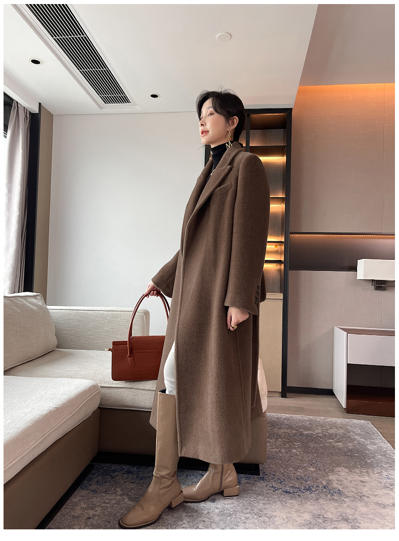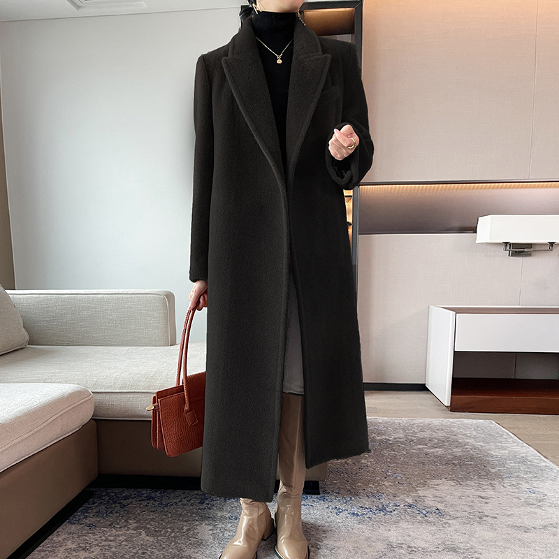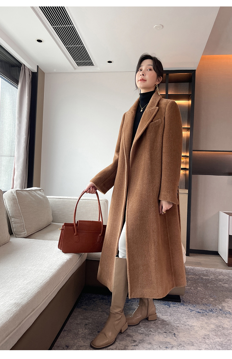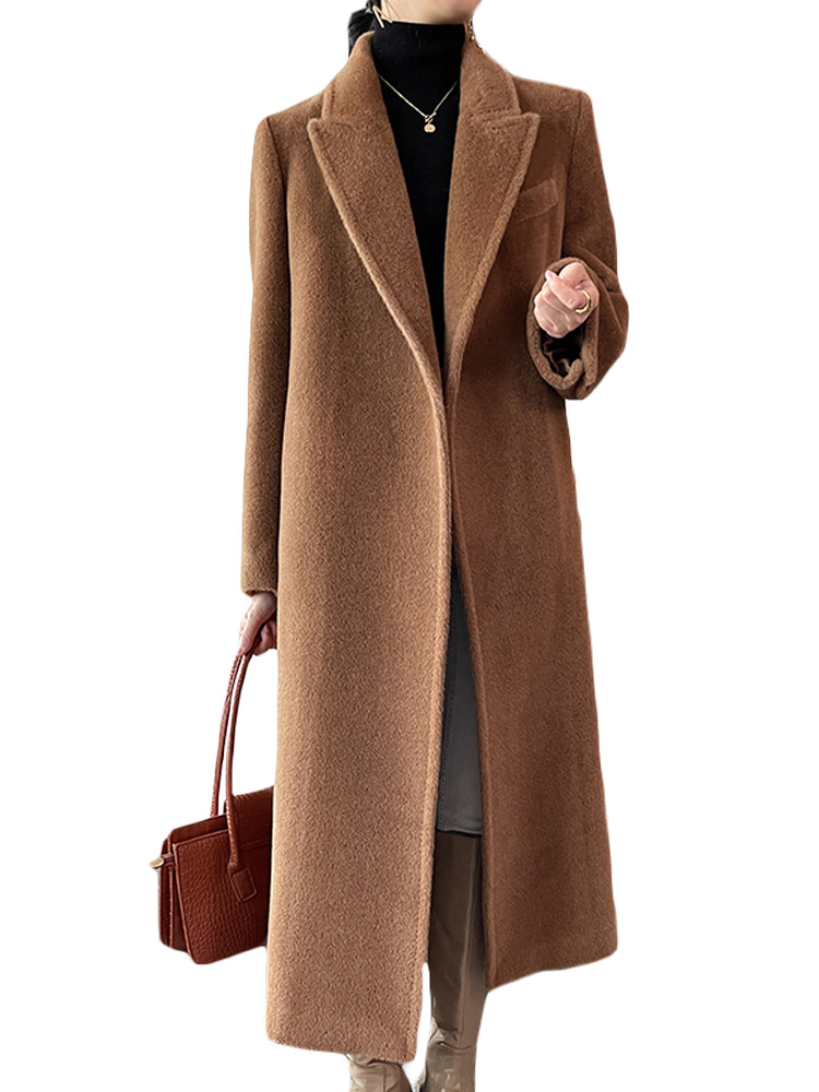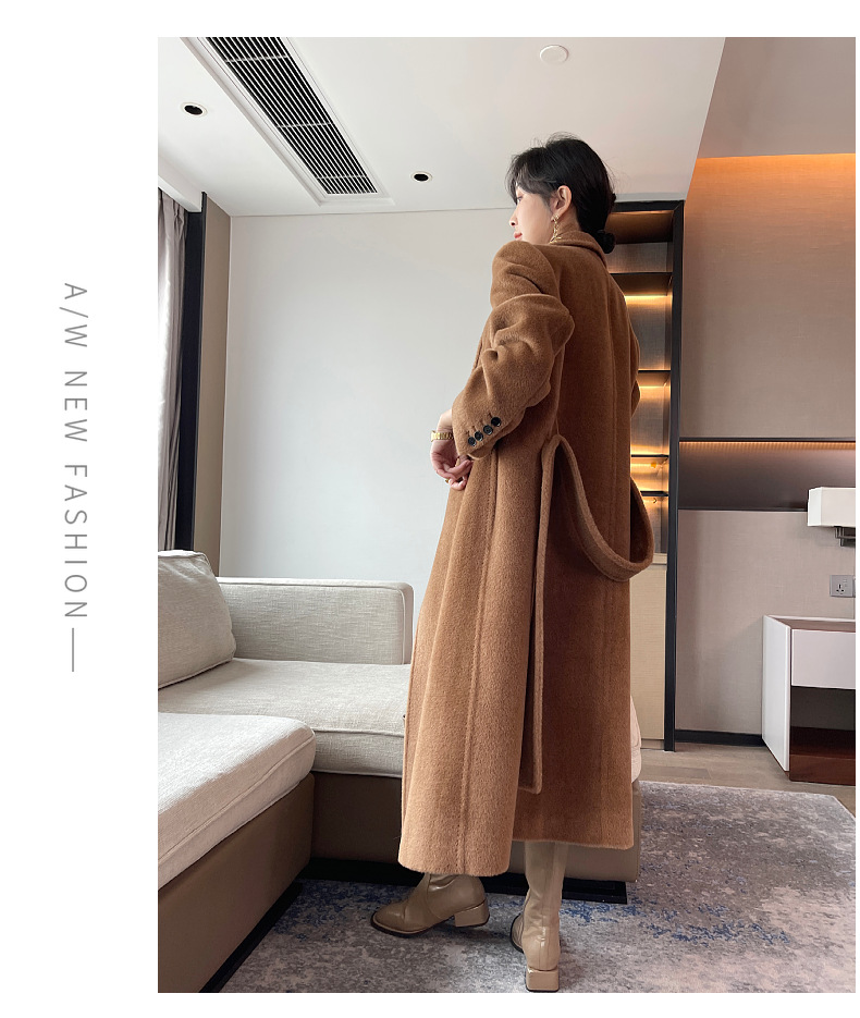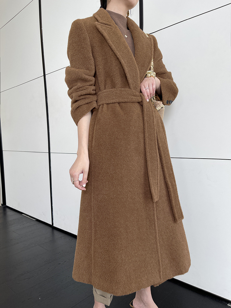 骆马绒羊绒大衣女2024冬季新款简约中长款羊驼绒阿尔巴卡毛呢外套
