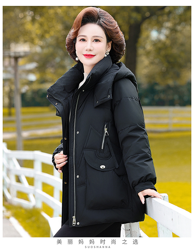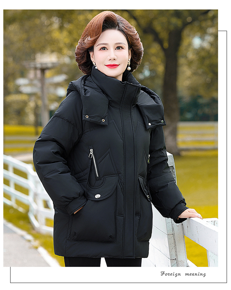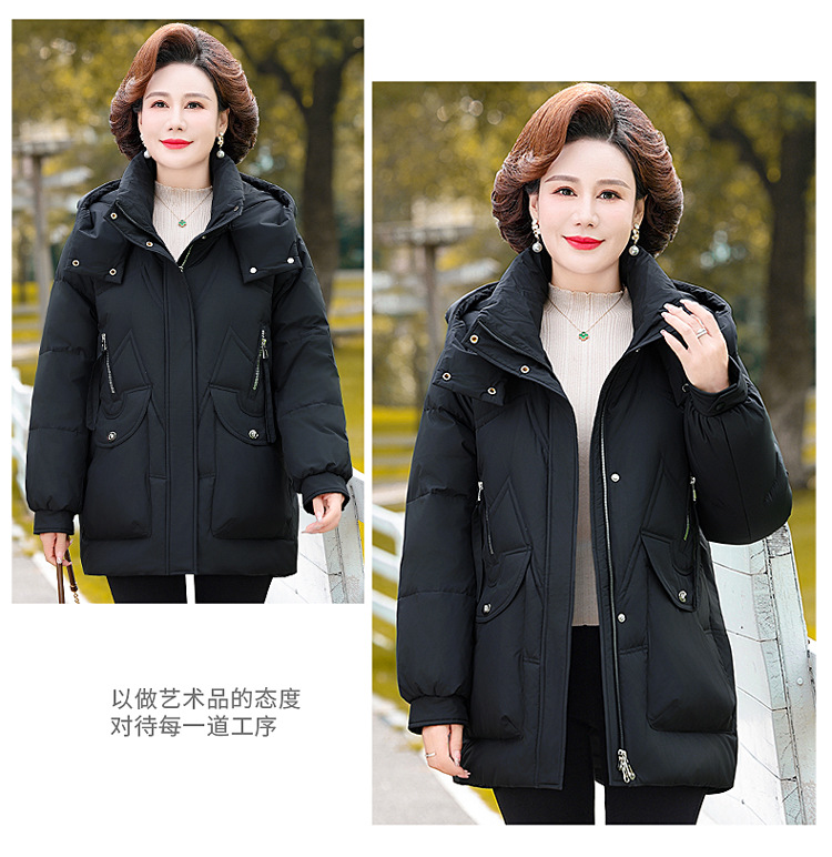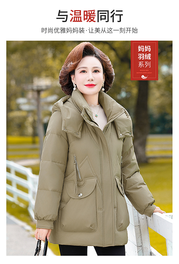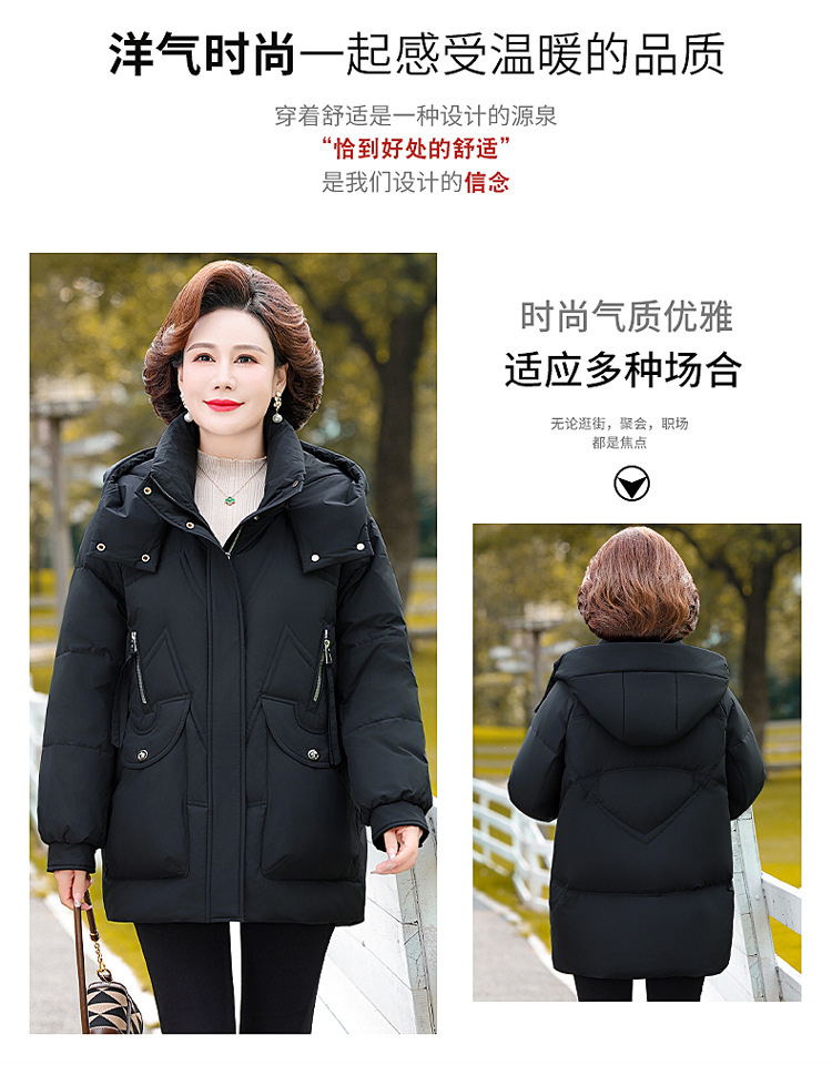 羽绒服女中年妈妈中长款2023年冬季新款加厚保暖连帽中老年女外套