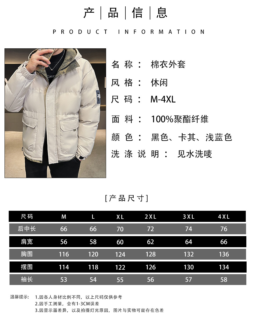 棉衣男连帽外套保暖加厚防寒港风百搭棉袄冬款外套羽绒棉服男士