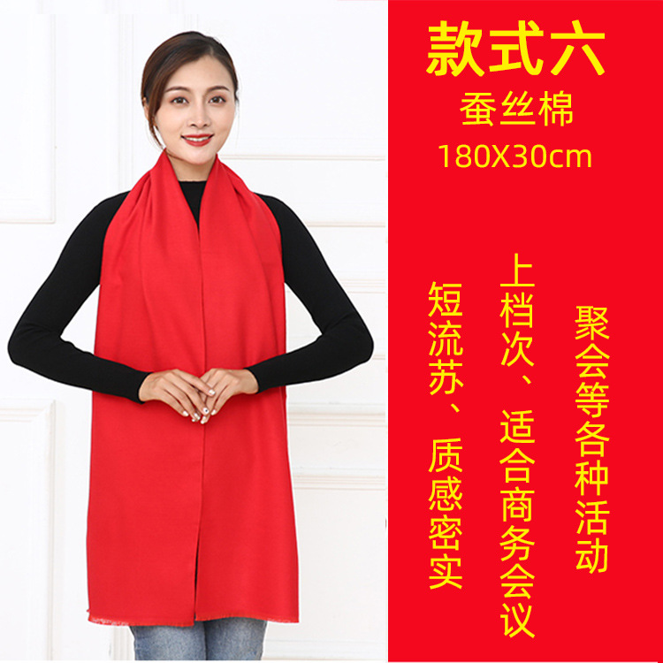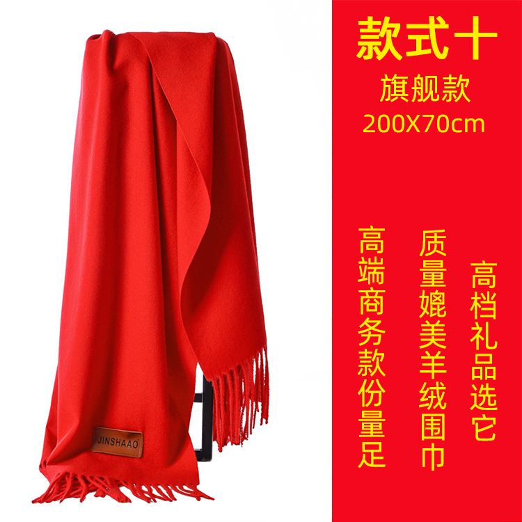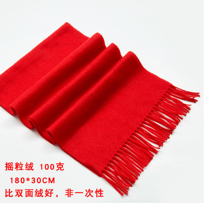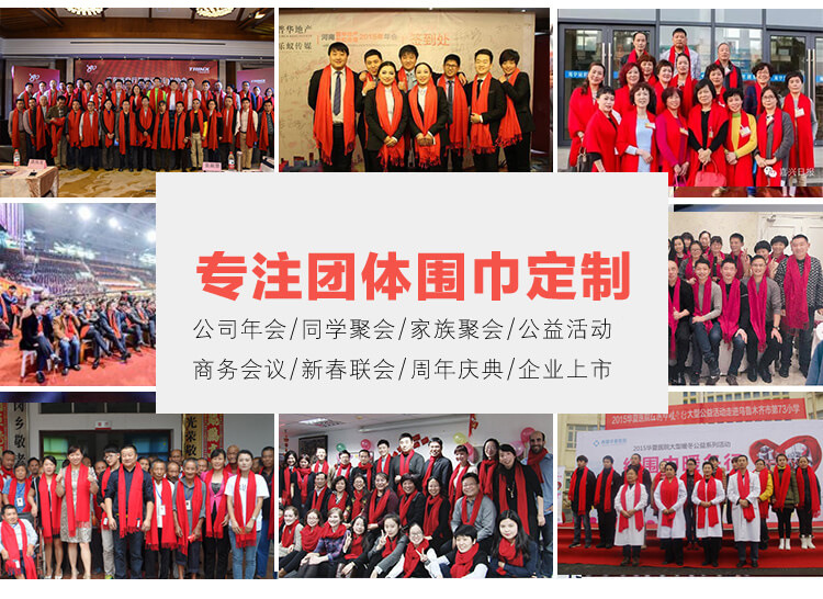 中国红围巾定制年会男女礼品大红色围脖印字批发订 制刺绣logo