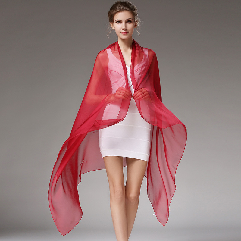 春秋冬季百搭韩版女士纯色长款真丝丝巾 桑蚕丝围巾披肩杭州 C217