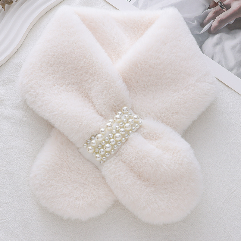 珍珠围巾冬季仿獭毛围巾女时尚百搭韩版可爱毛毛加厚保暖交叉围脖