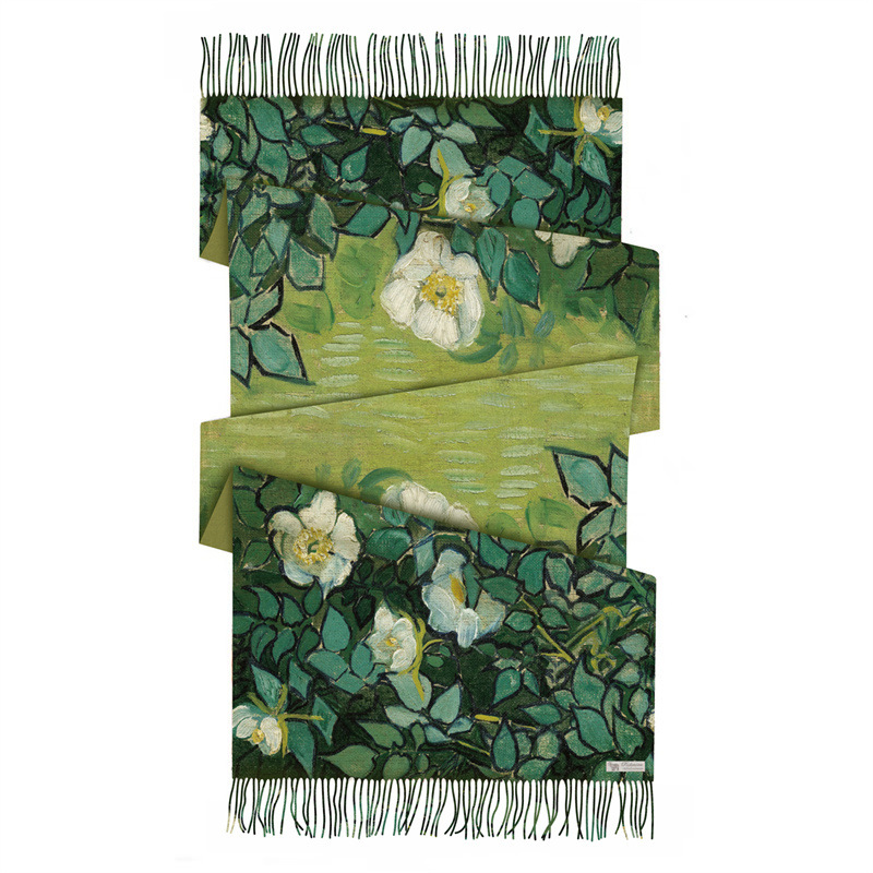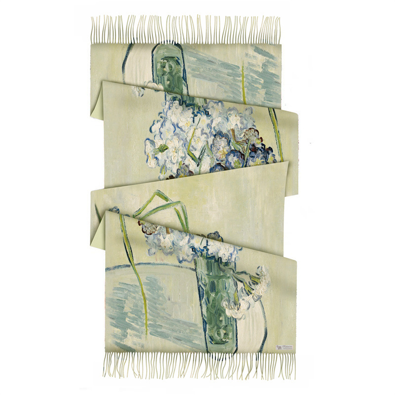 秋冬季新款仿羊绒围巾梵高油画双面印花围脖冬季保暖复古流苏披肩