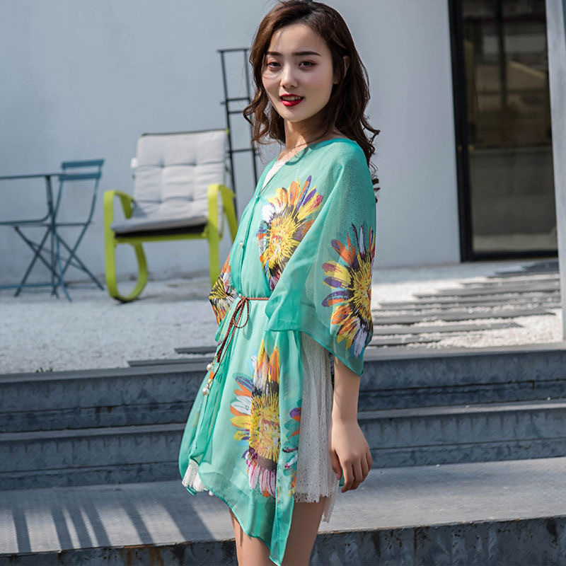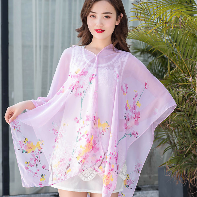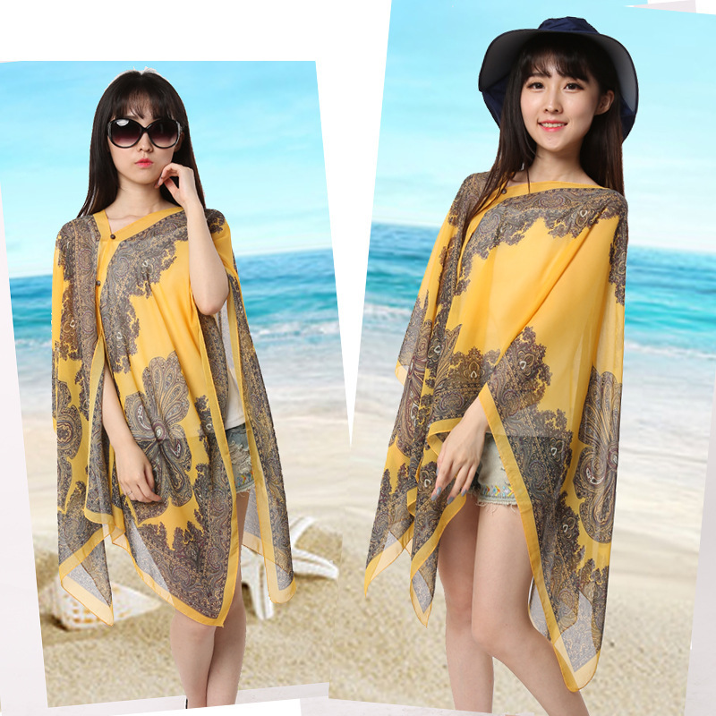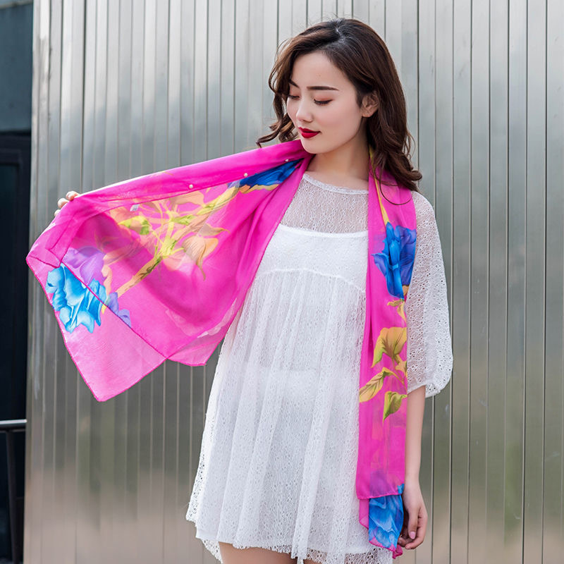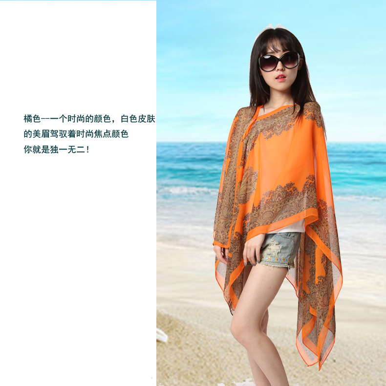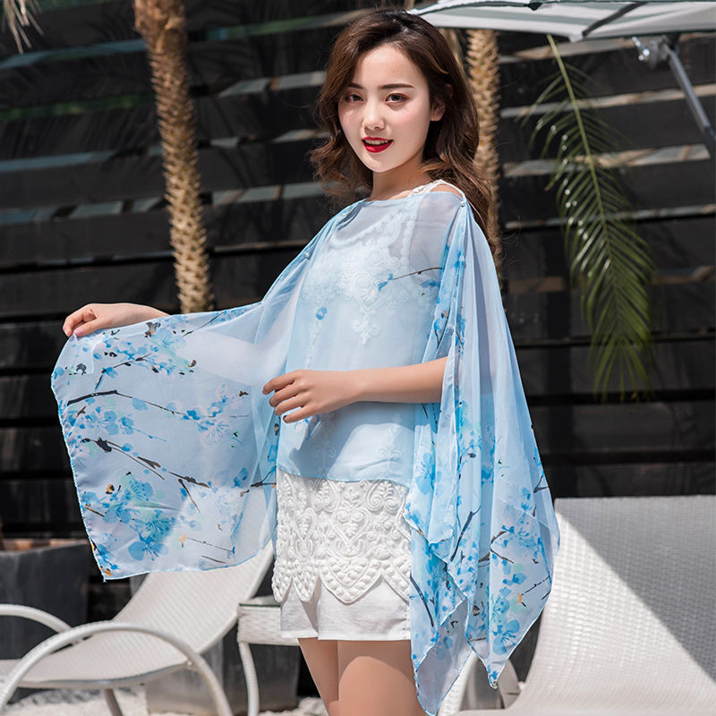 夏天丝巾防晒披肩骑车开车雪纺围巾女海滩纱巾超大薄款沙滩巾