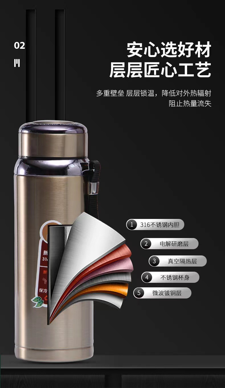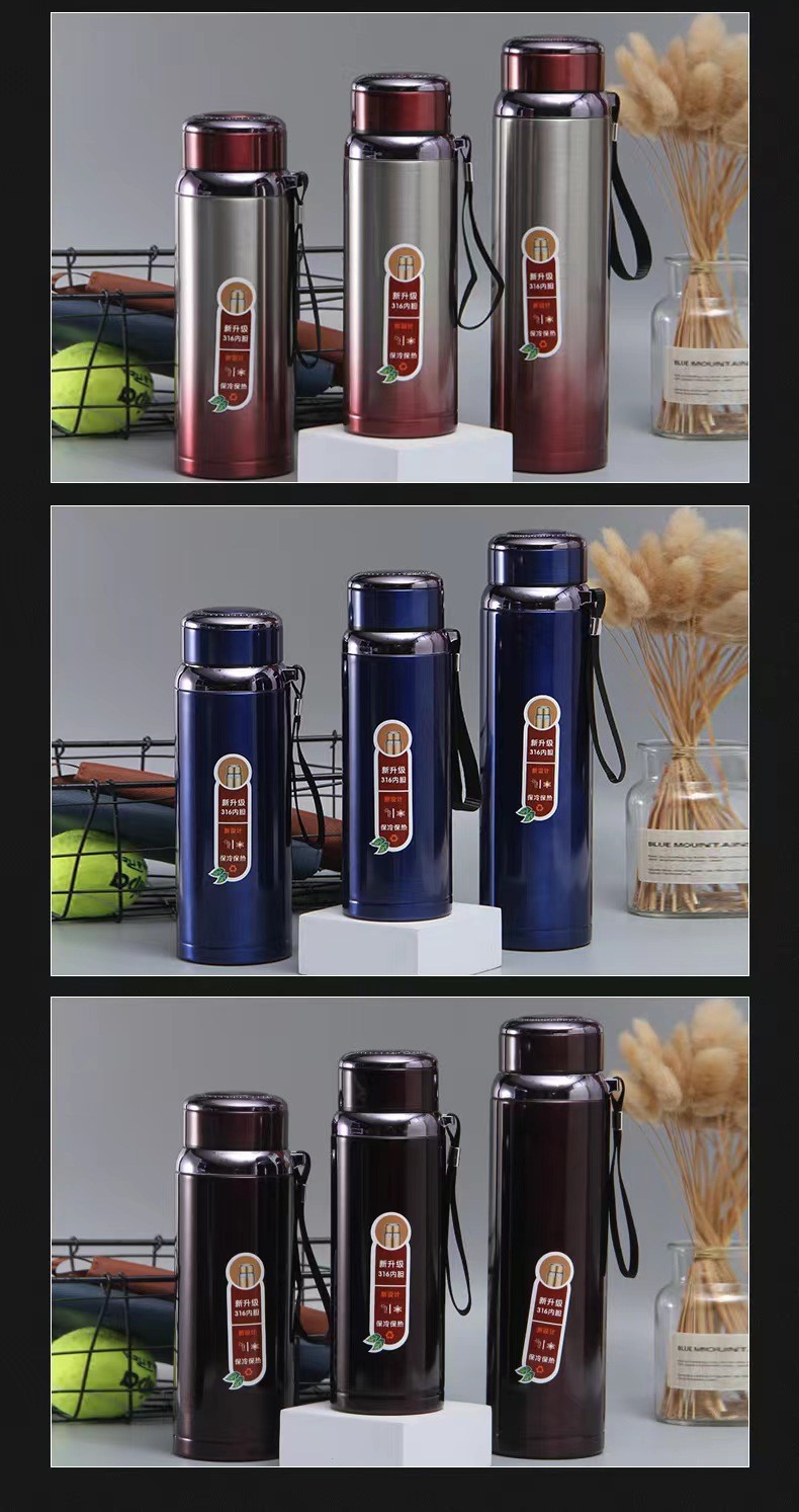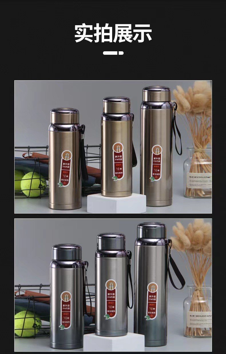 316不锈钢运动水壶户外吊带提绳车载便携星星壶大容量真空保温杯
