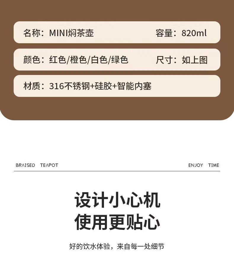 小钢炮mini316不锈钢老白茶焖茶壶陈皮焖泡壶智能温显便携保温壶