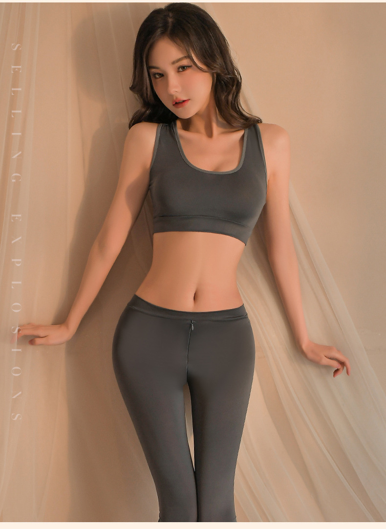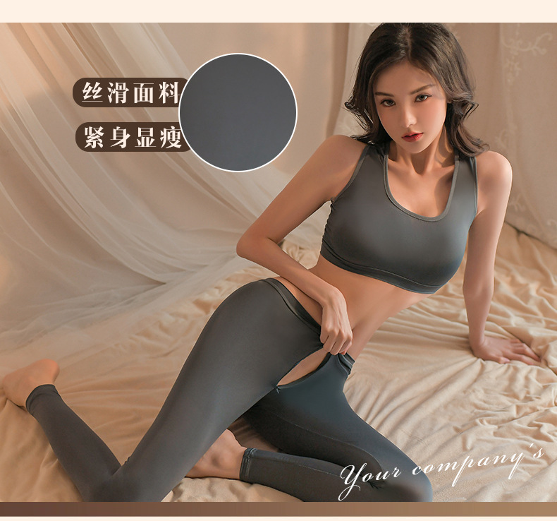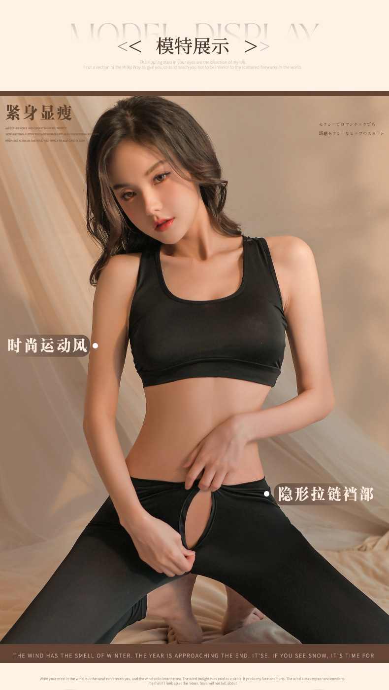 大码情趣内衣性感冰丝爽滑方便免脱女开档拉链瑜伽裤套装一件代发