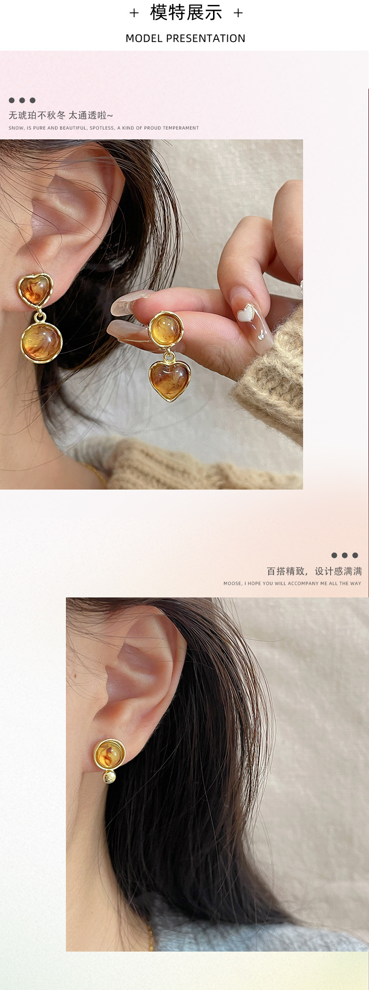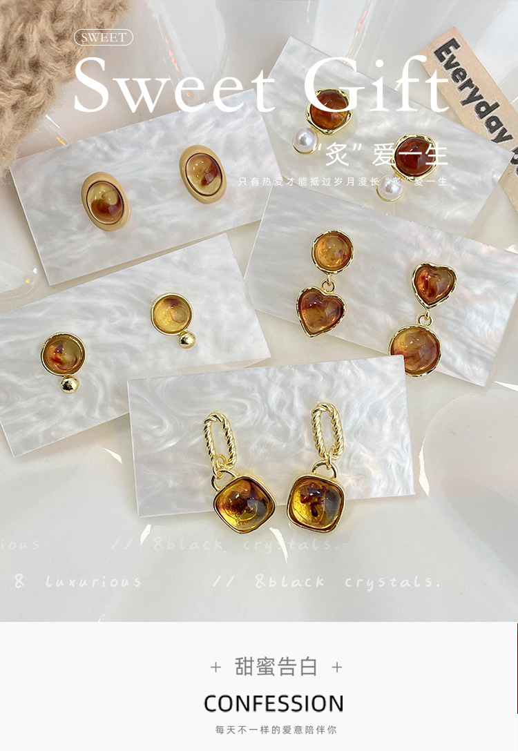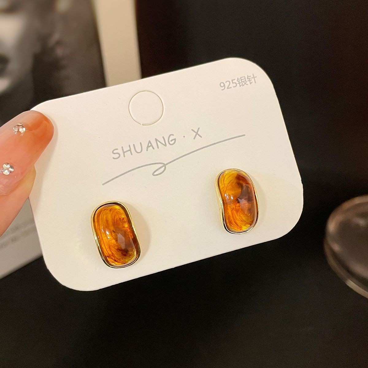 秋冬耳钉简约批发琥珀色耳饰女小众气质设计感银针复古美拉德耳环