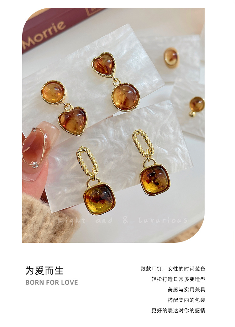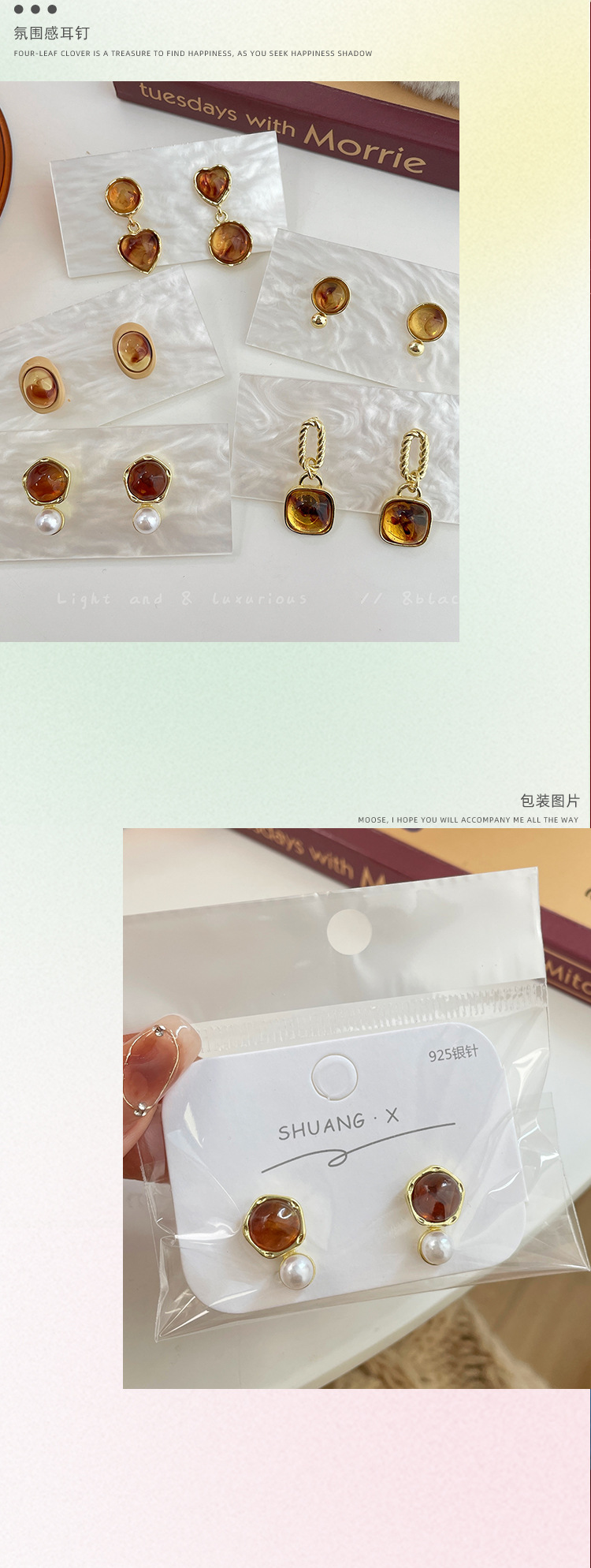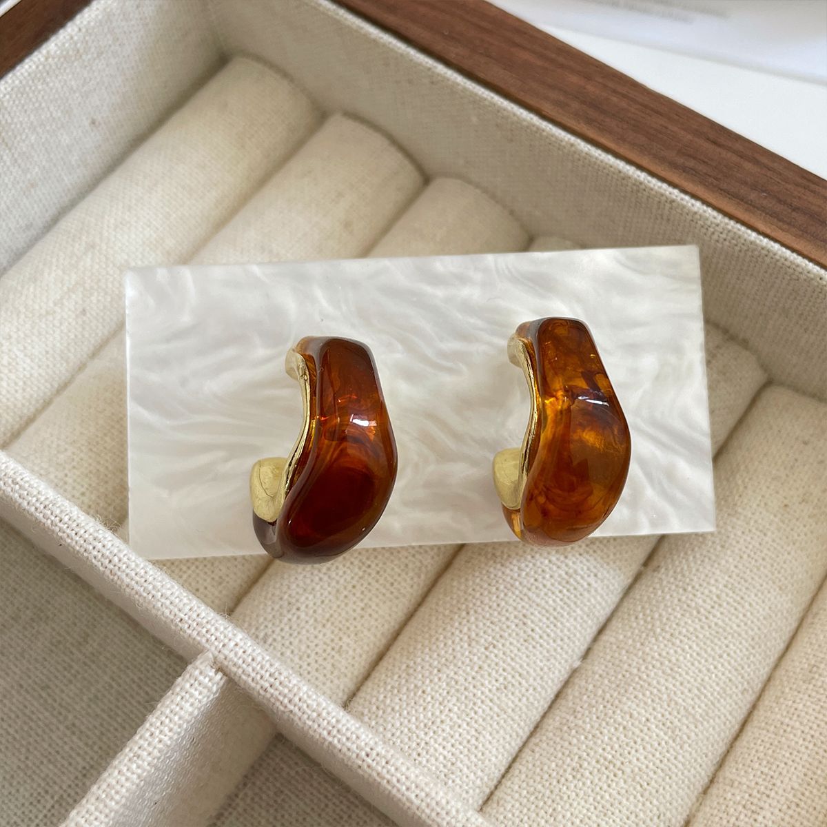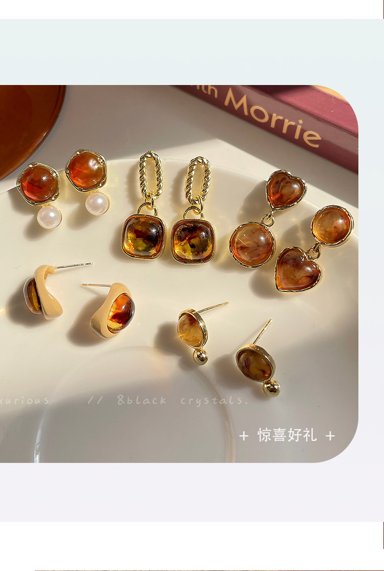 秋冬耳钉简约批发琥珀色耳饰女小众气质设计感银针复古美拉德耳环