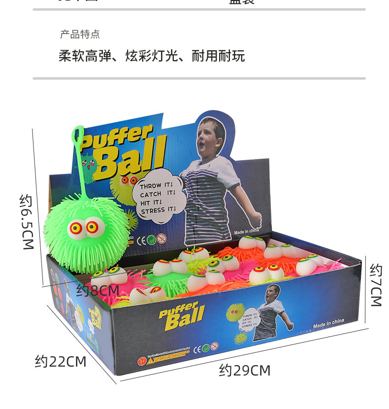 创意减压闪光海胆球解压神器凸眼毛毛球发泄球地摊货源玩具批发