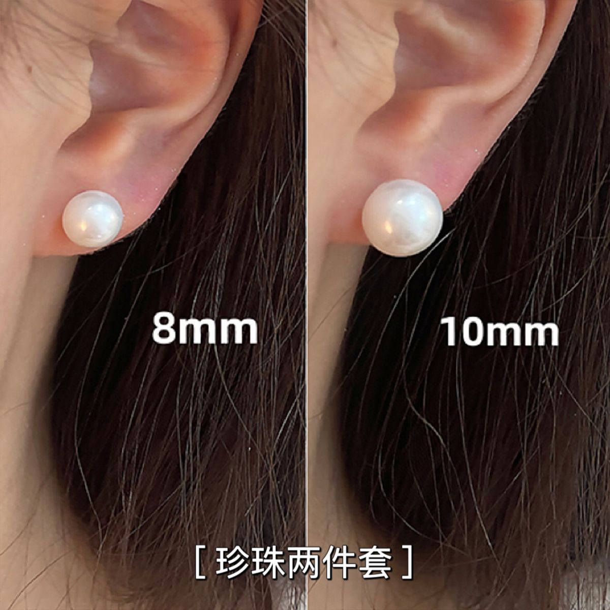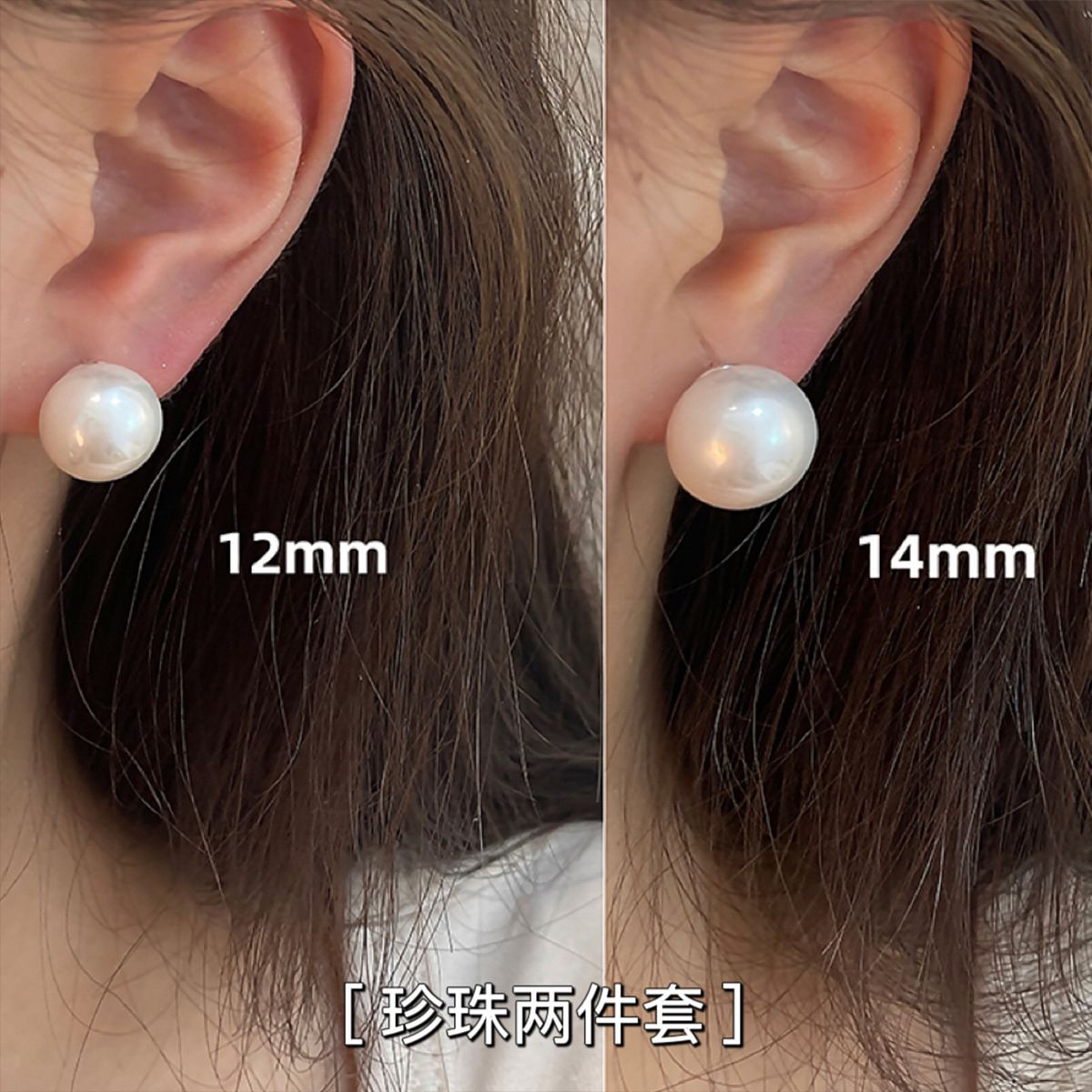 珍珠耳钉银针12mm大珍珠耳环灰色珍珠耳钉ins珍珠耳饰高级感批发