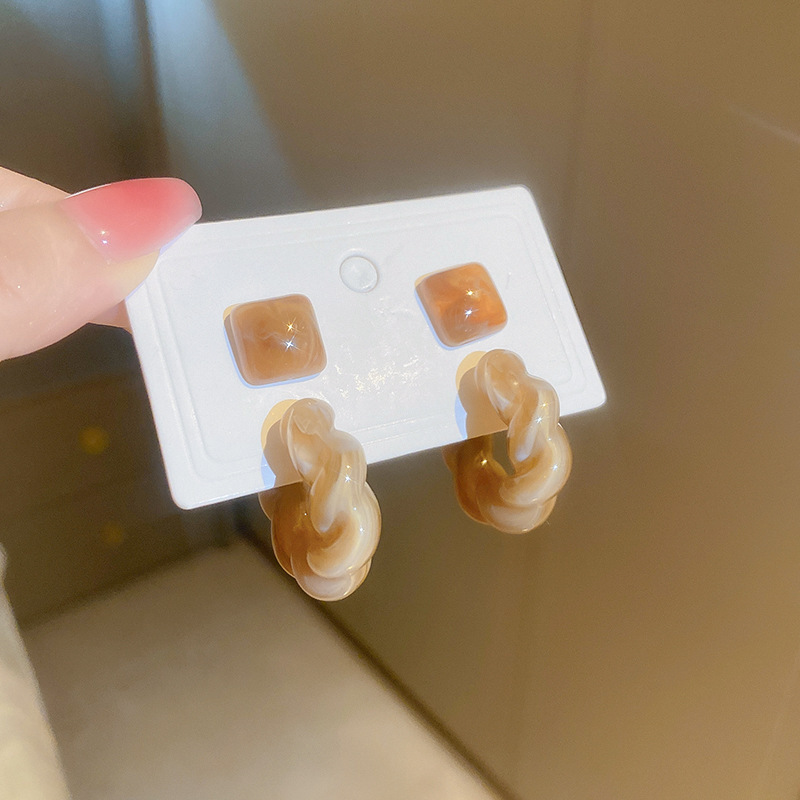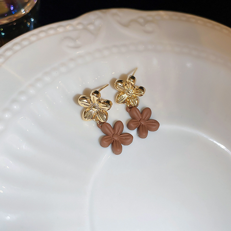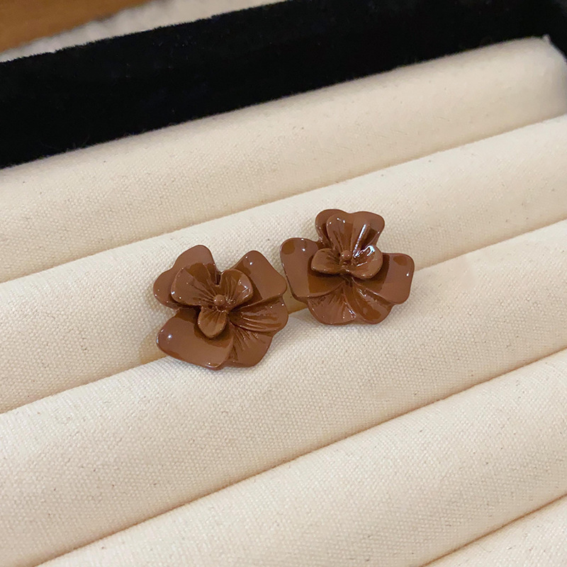 银针美拉德咖色系花朵耳环法式复古滴油蝴蝶结耳钉宫廷新款耳饰女