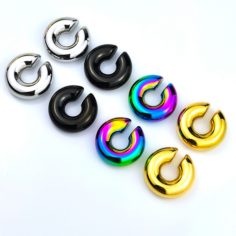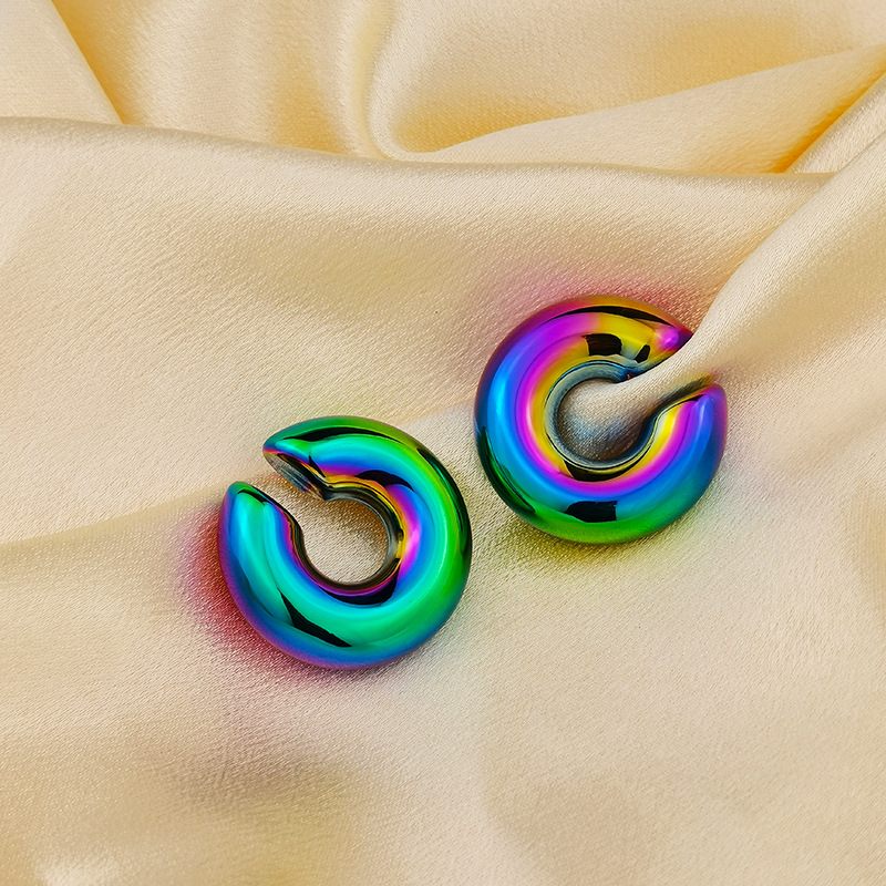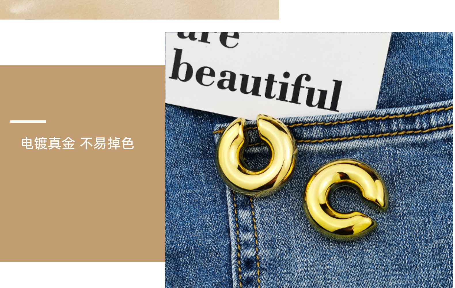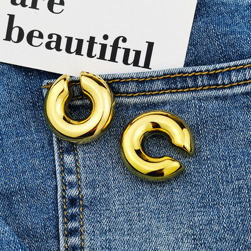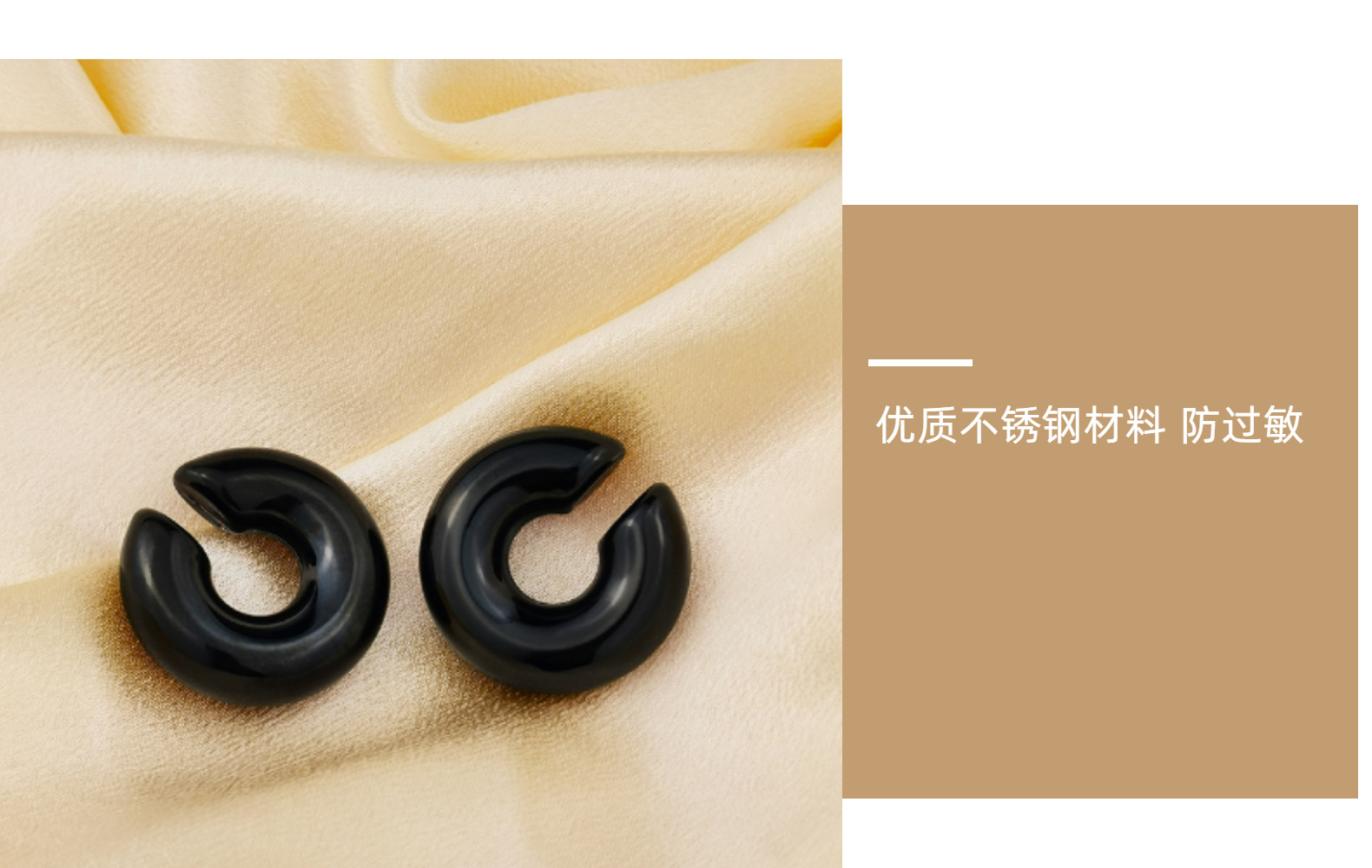跨境高级感环形空心耳环钛钢中古风胖乎乎耳扣无耳洞耳圈饰品女