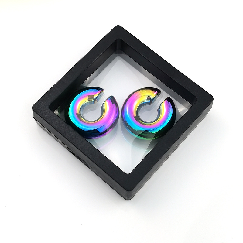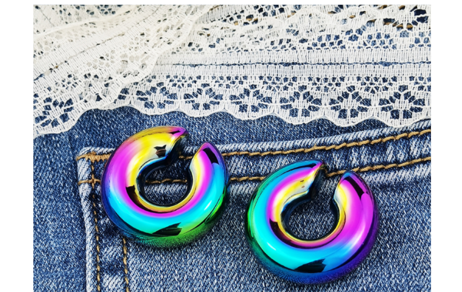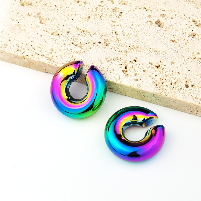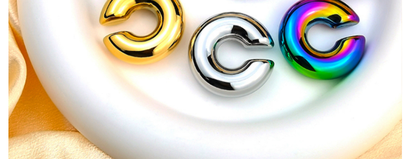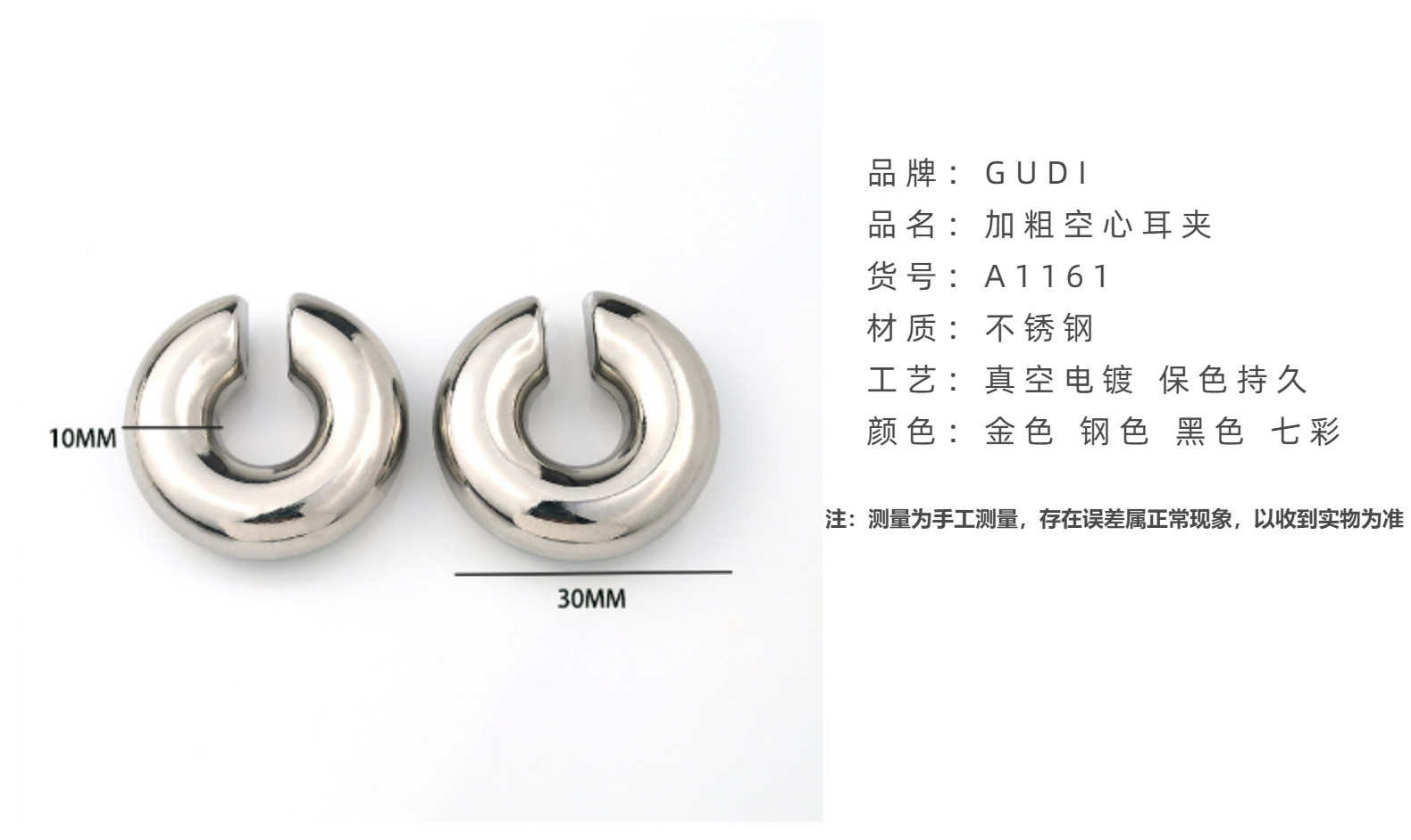 跨境高级感环形空心耳环钛钢中古风胖乎乎耳扣无耳洞耳圈饰品女