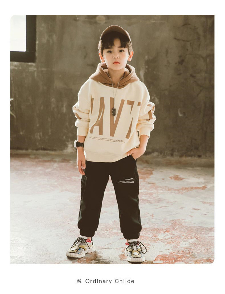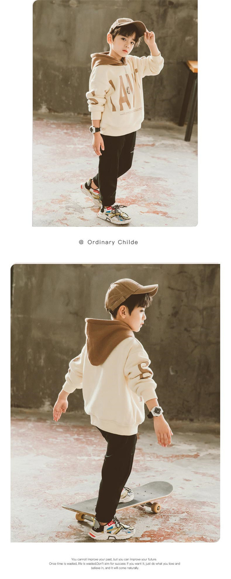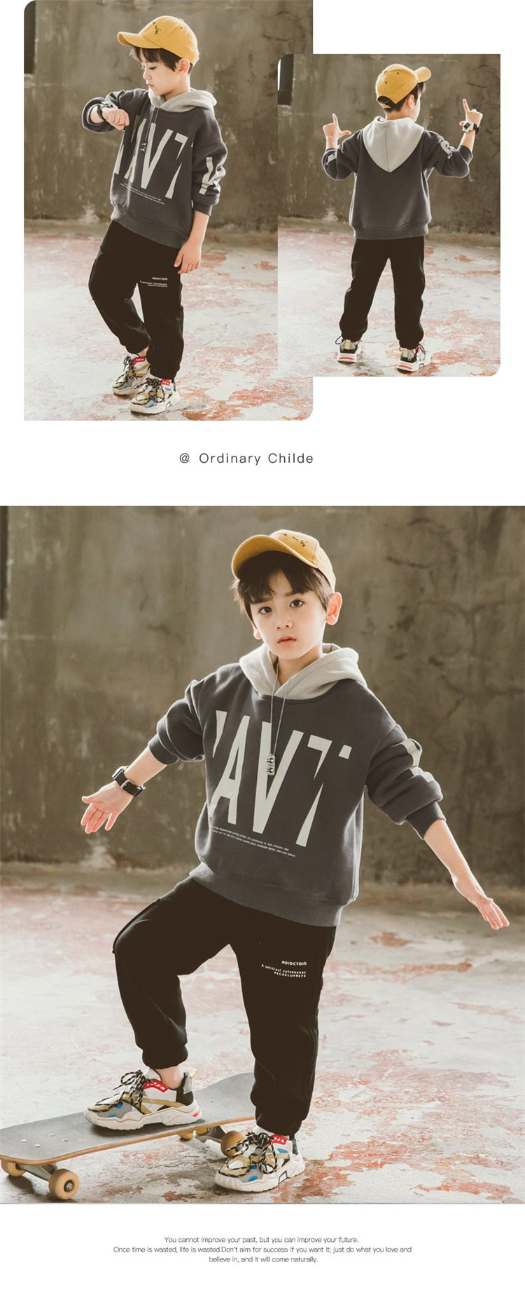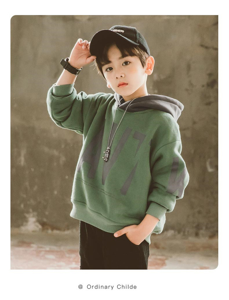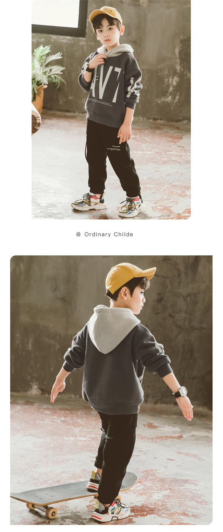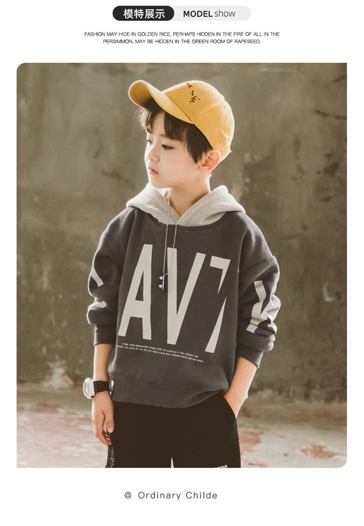 男童卫衣秋季2023新款儿童运动休闲打底衫中大童简约印花连帽上衣