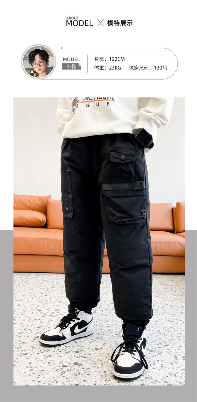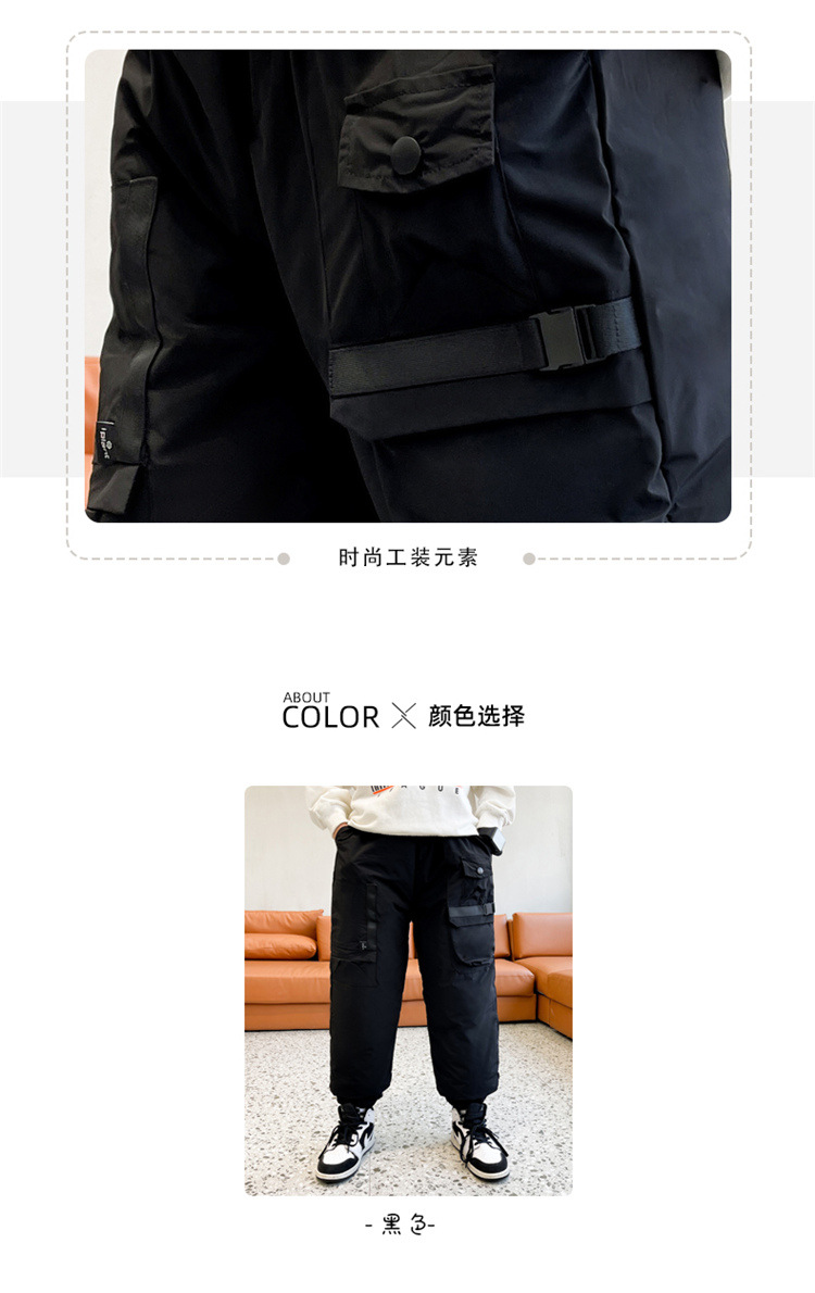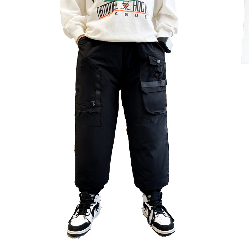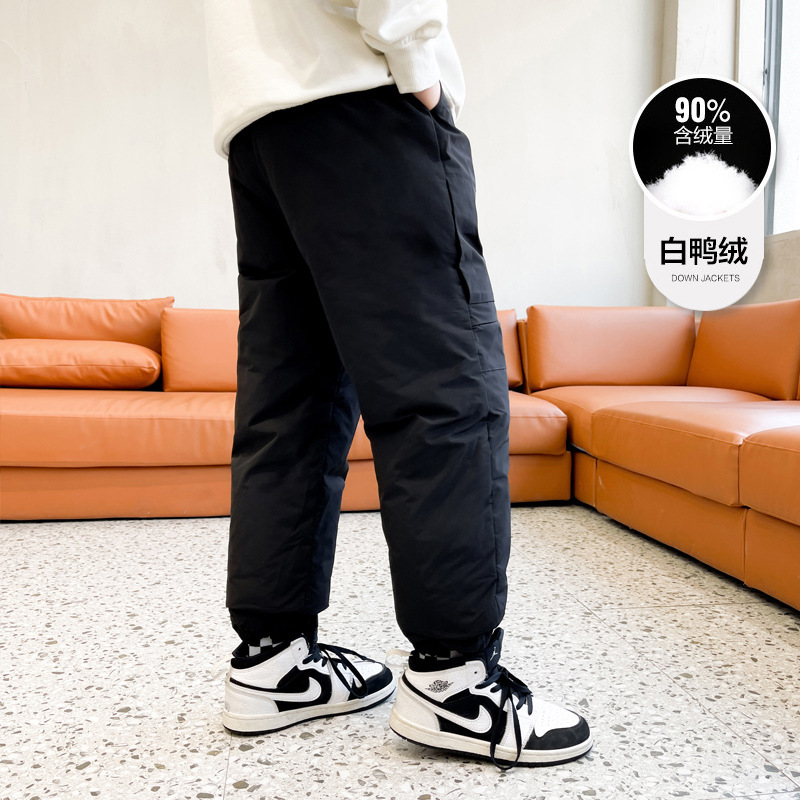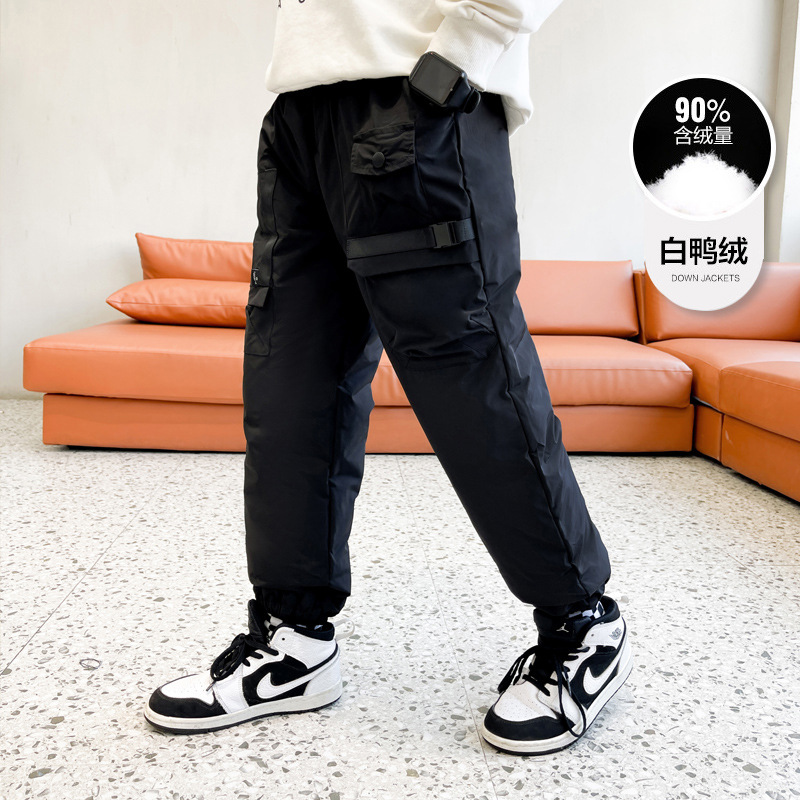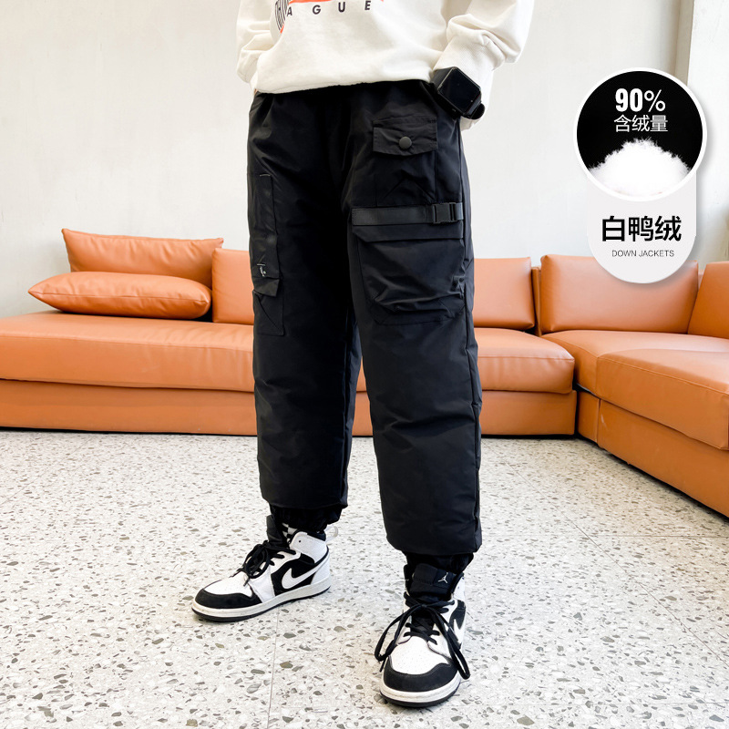 男童冬季工装羽绒裤2023新款中大儿童加厚保暖白鸭绒休闲裤长裤子