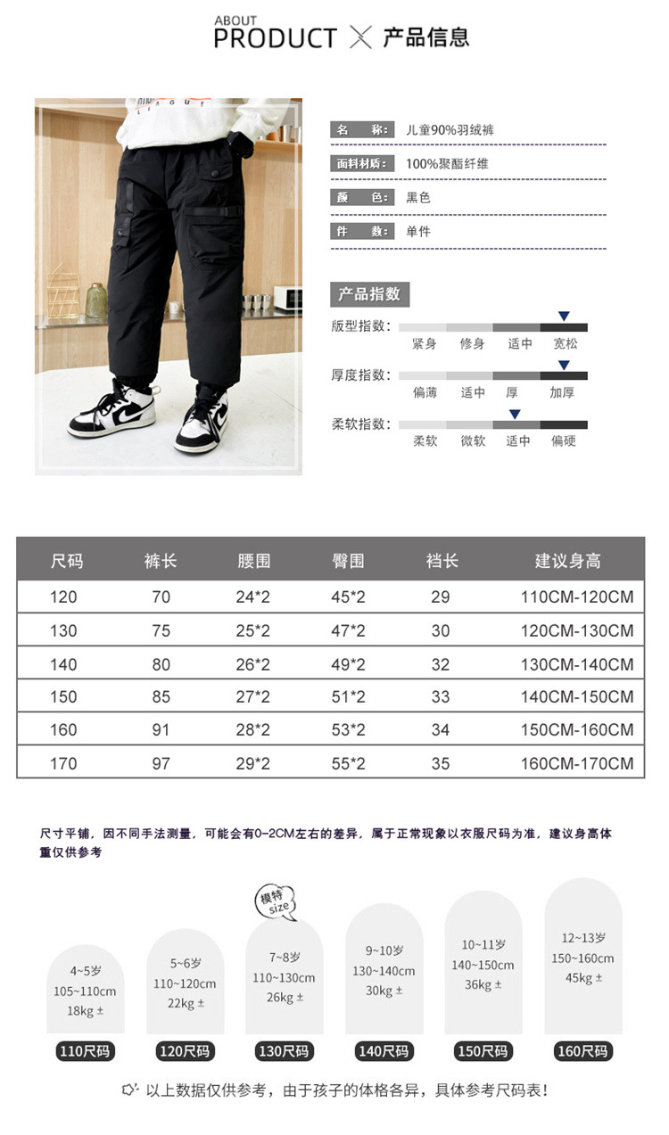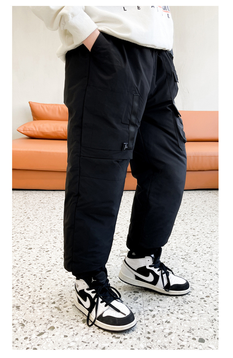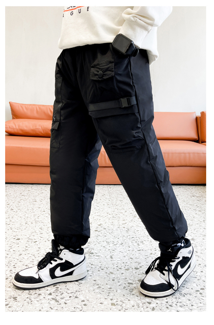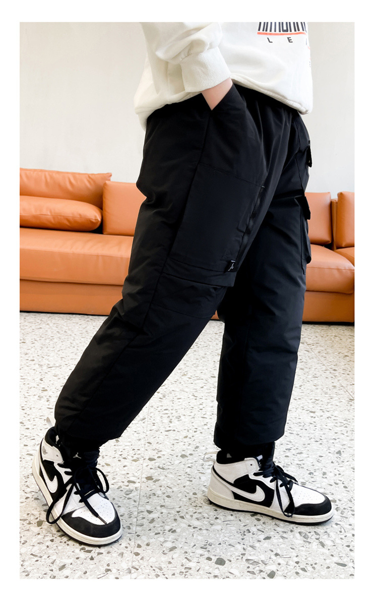 男童冬季工装羽绒裤2023新款中大儿童加厚保暖白鸭绒休闲裤长裤子