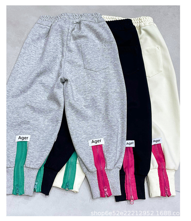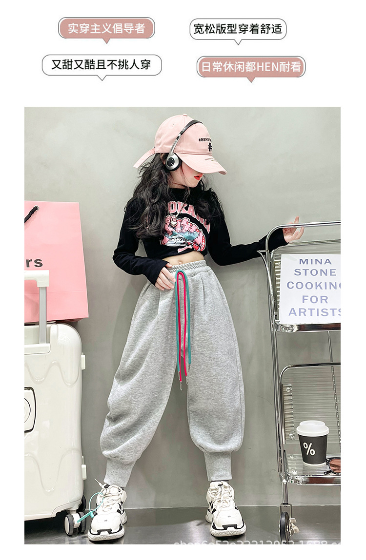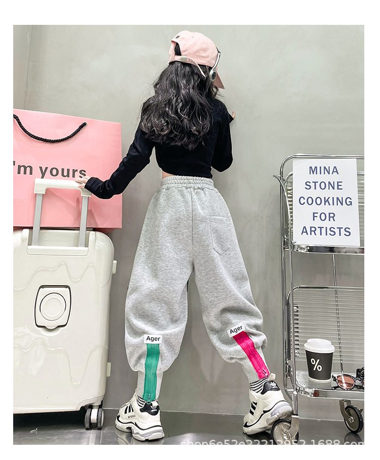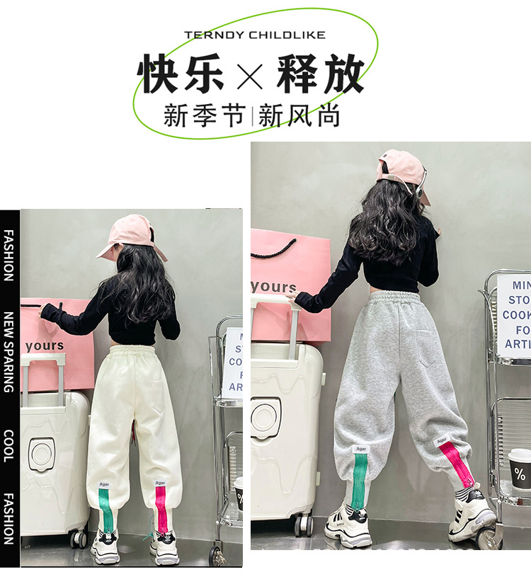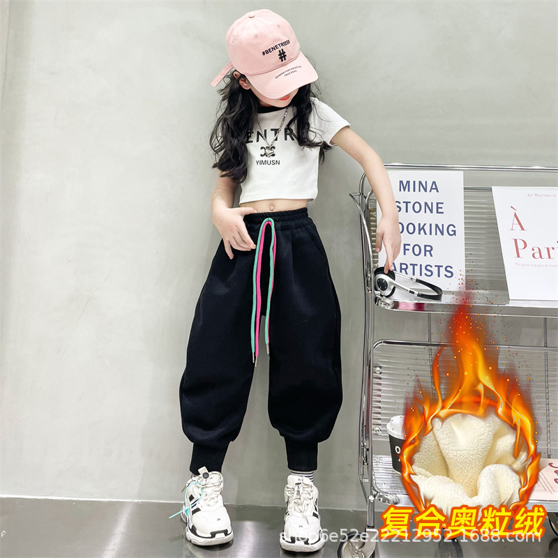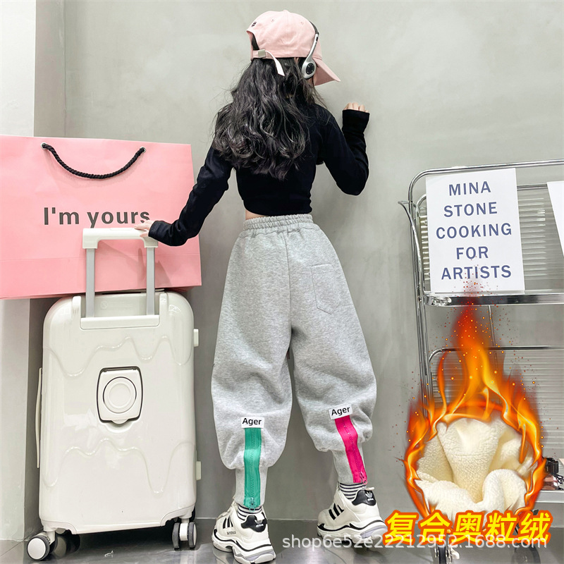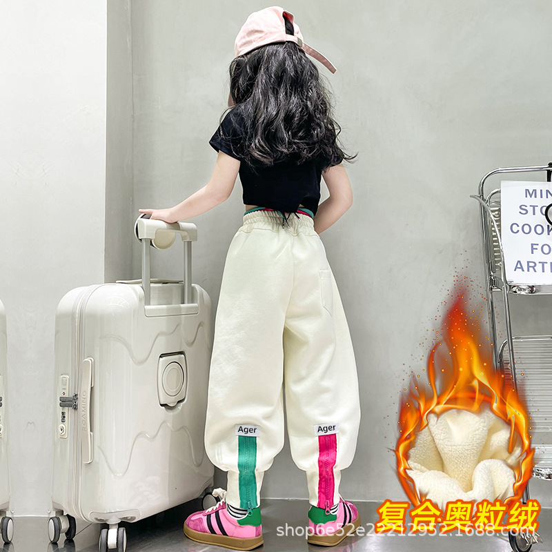 女童秋冬季加绒加厚拉链卫裤2023新款中大儿童运动休闲保暖长裤子
