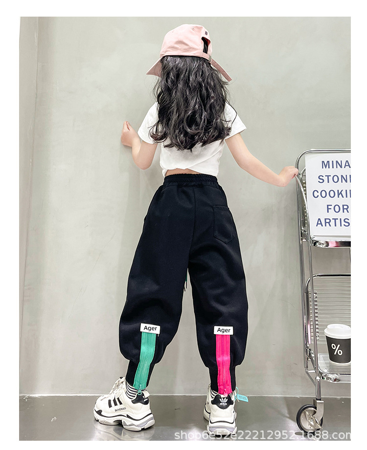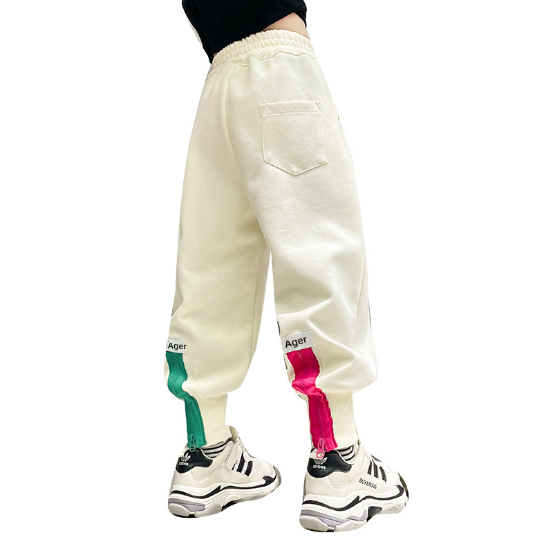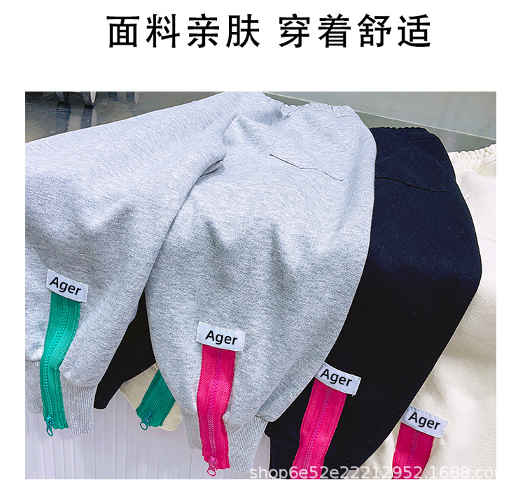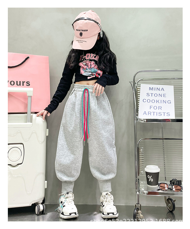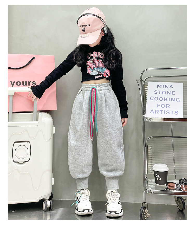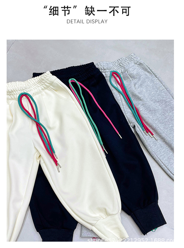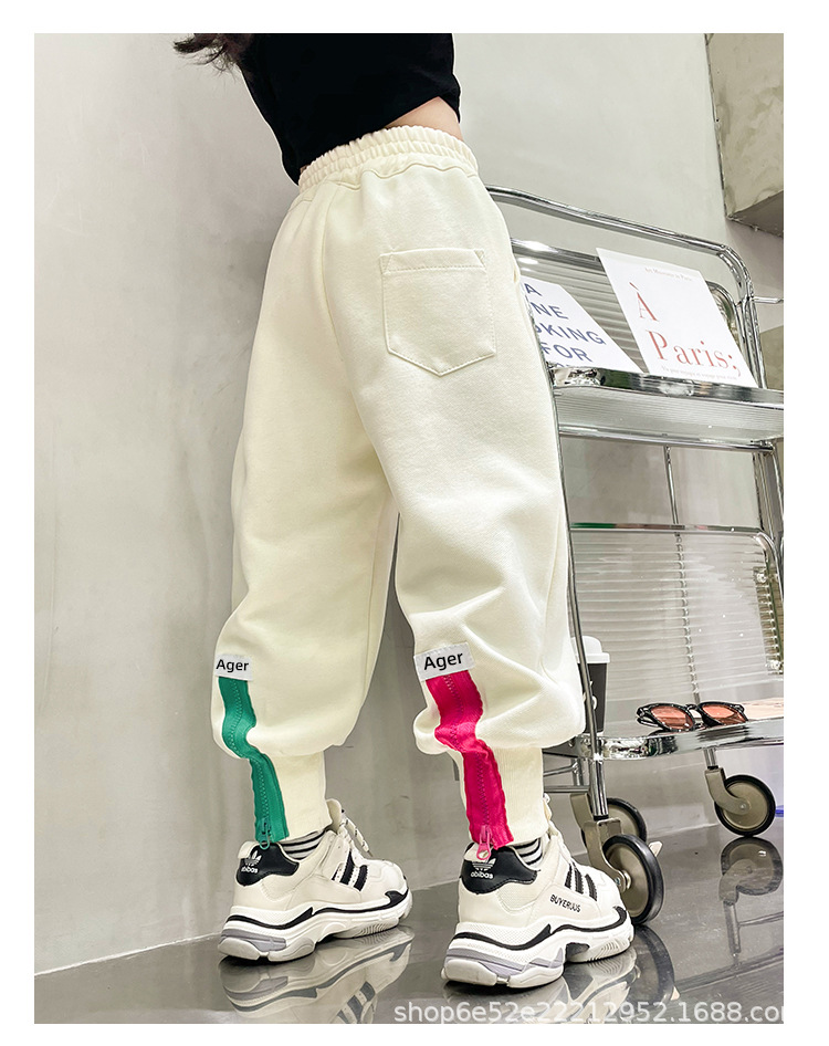 女童秋冬季加绒加厚拉链卫裤2023新款中大儿童运动休闲保暖长裤子