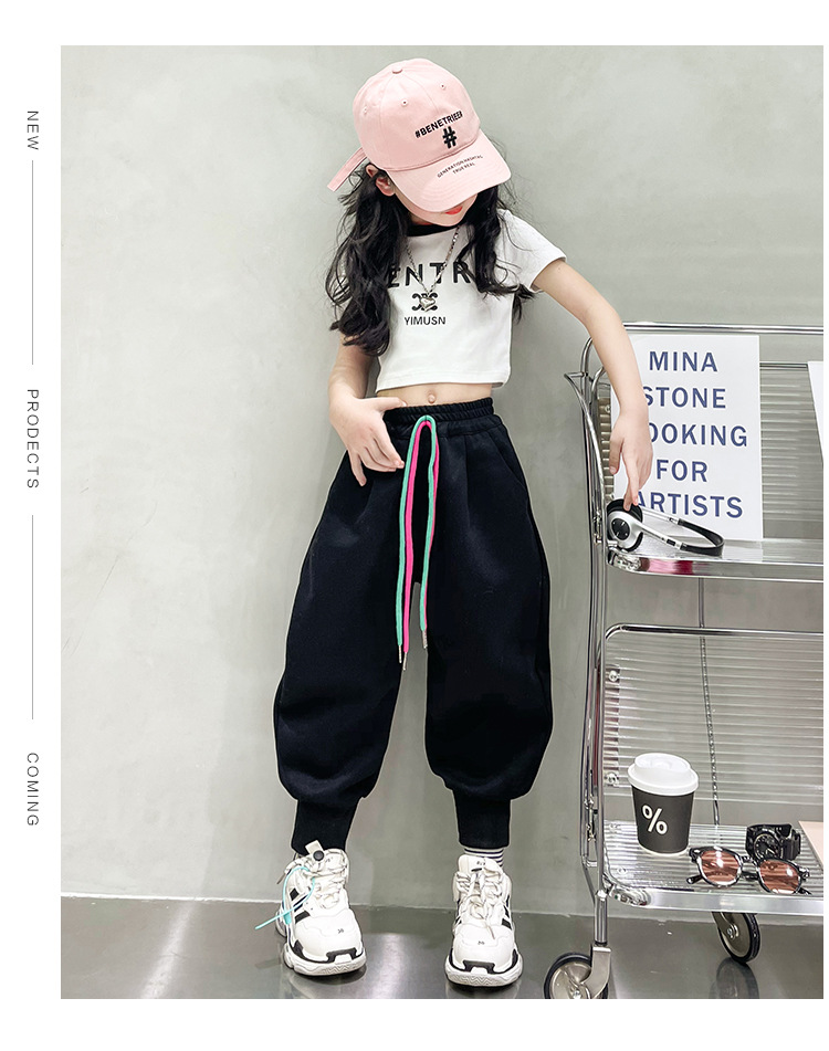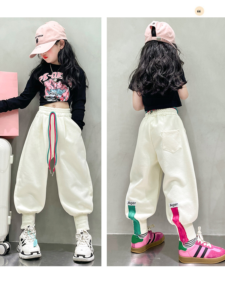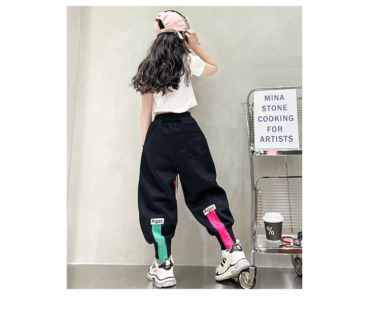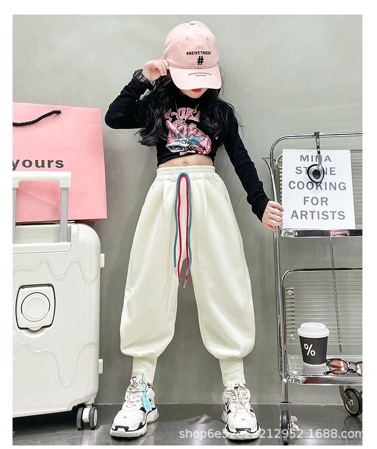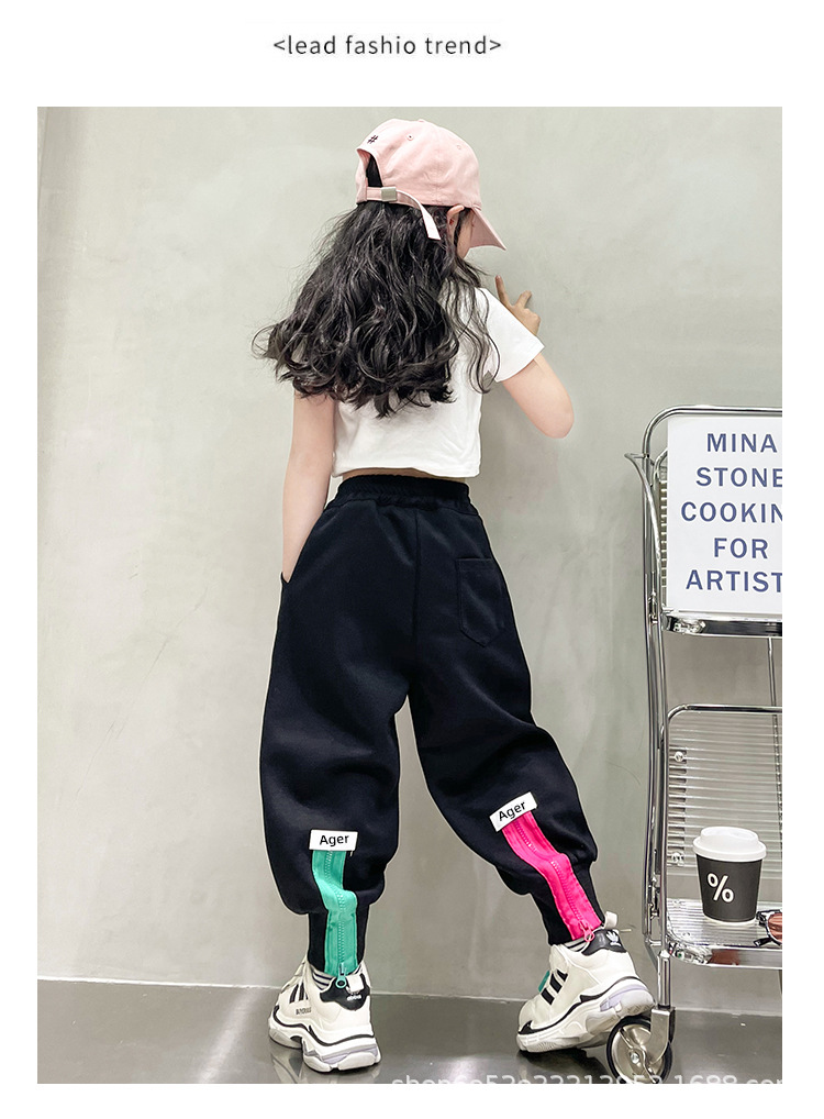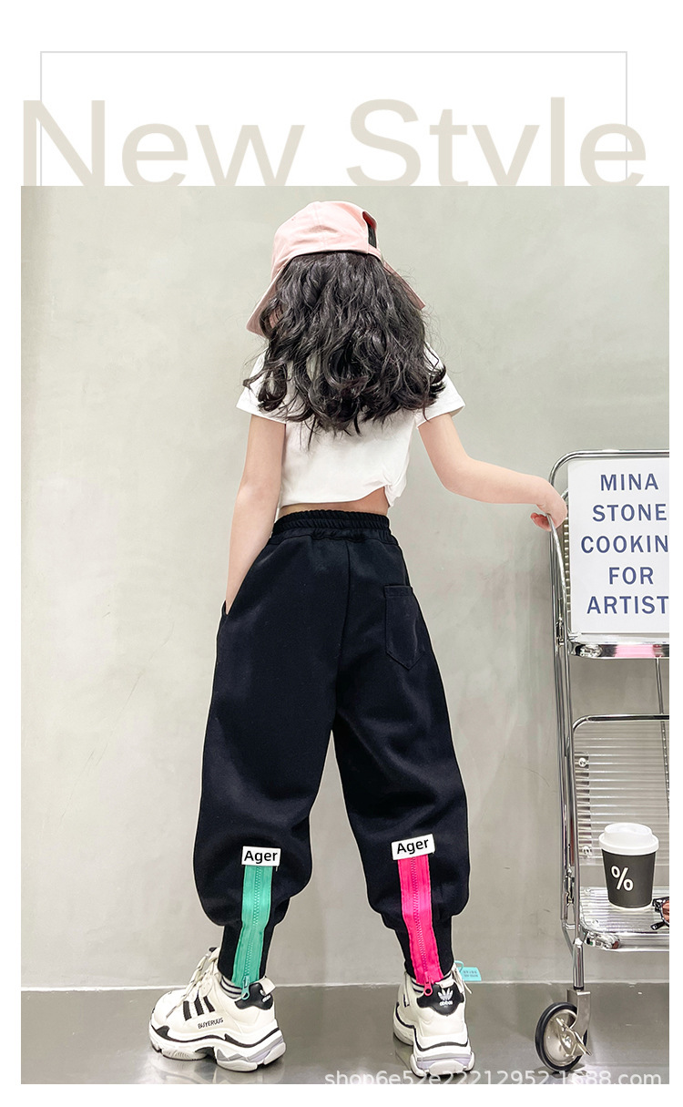 女童秋冬季加绒加厚拉链卫裤2023新款中大儿童运动休闲保暖长裤子