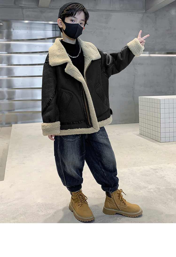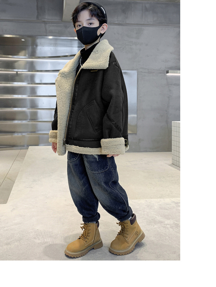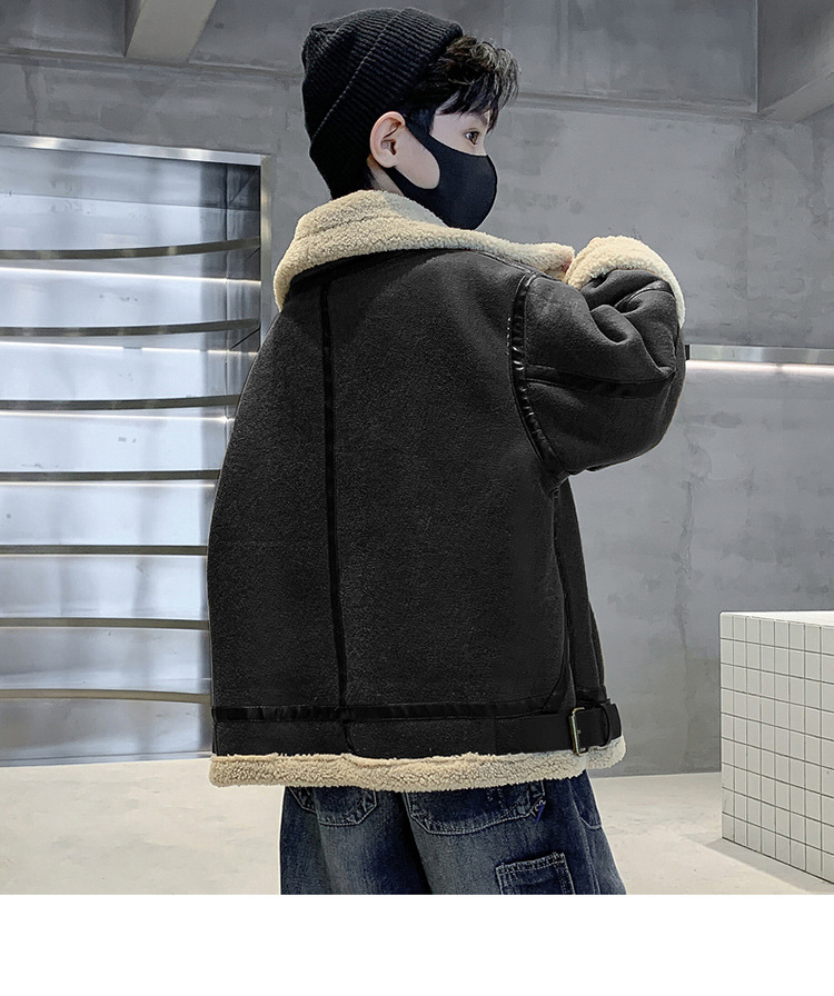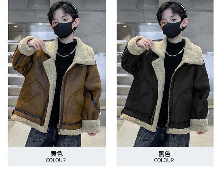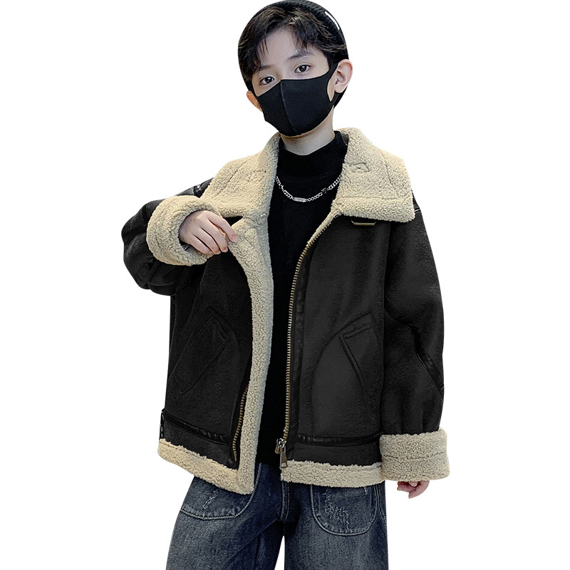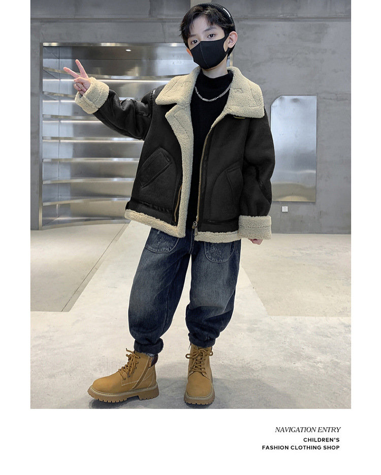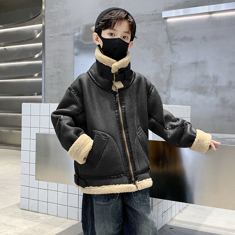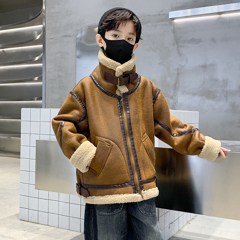 男童冬季麂皮羊羔毛外套2023新款大儿童加绒加厚保暖夹克风衣冬装