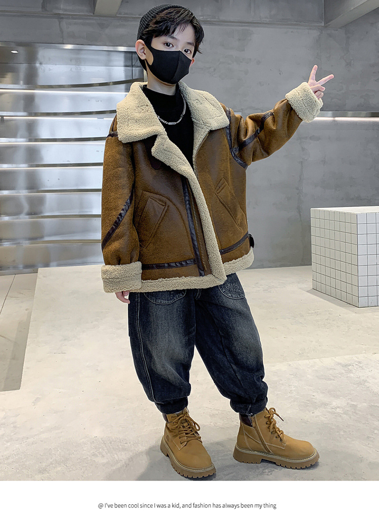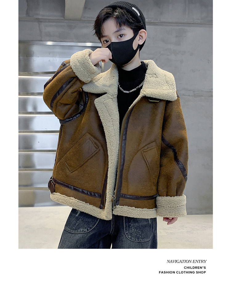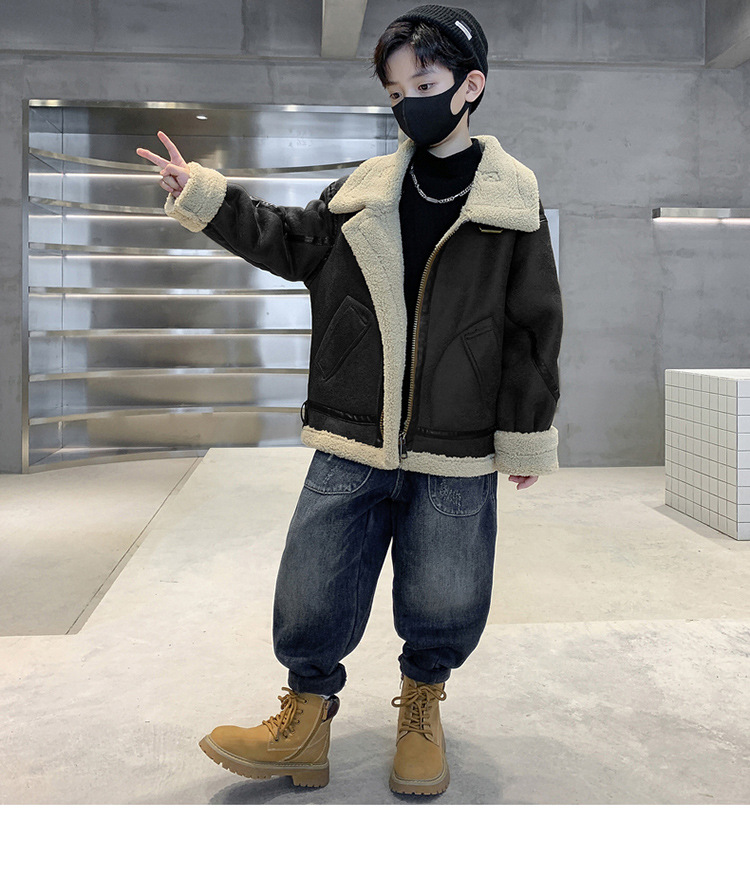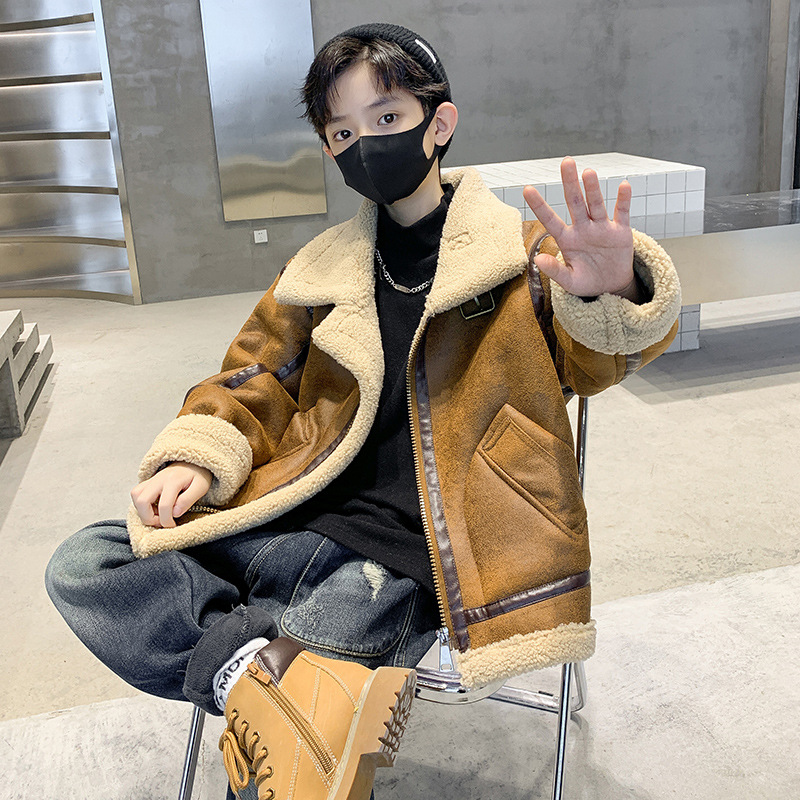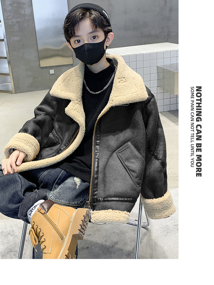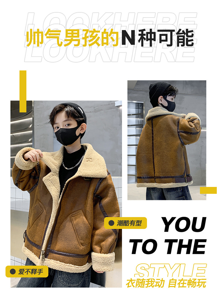 男童冬季麂皮羊羔毛外套2023新款大儿童加绒加厚保暖夹克风衣冬装