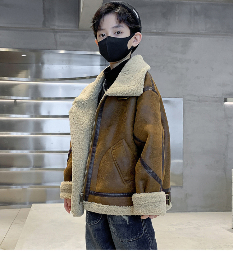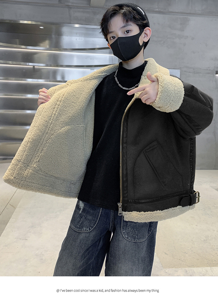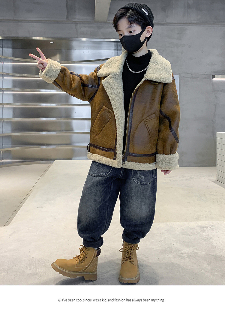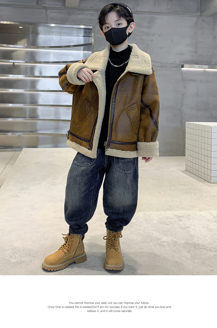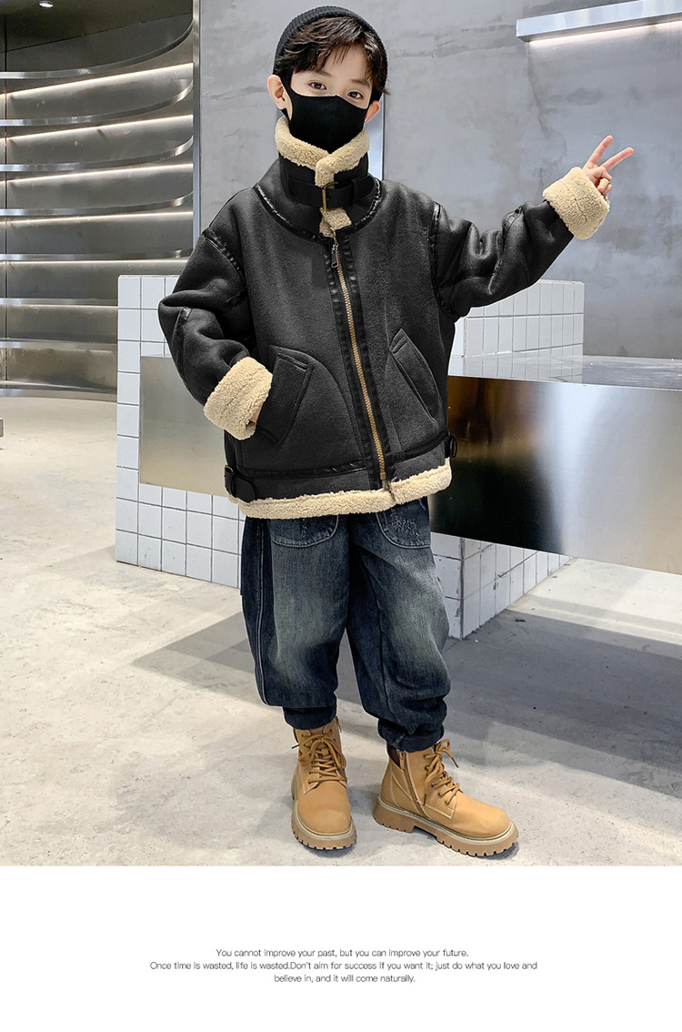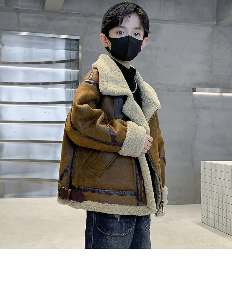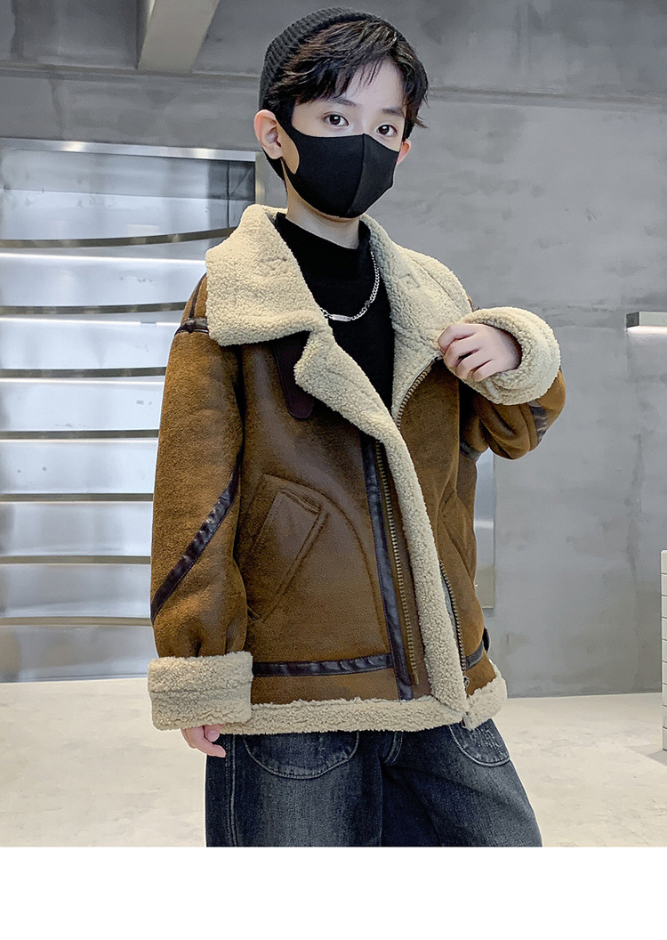 男童冬季麂皮羊羔毛外套2023新款大儿童加绒加厚保暖夹克风衣冬装