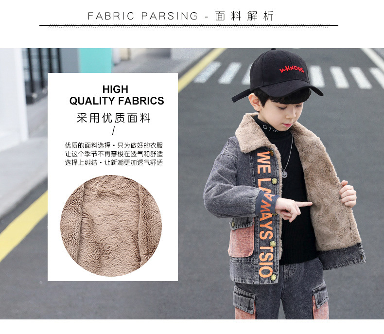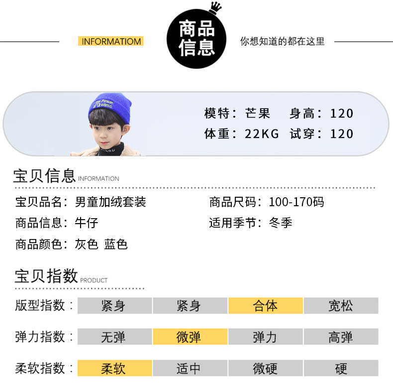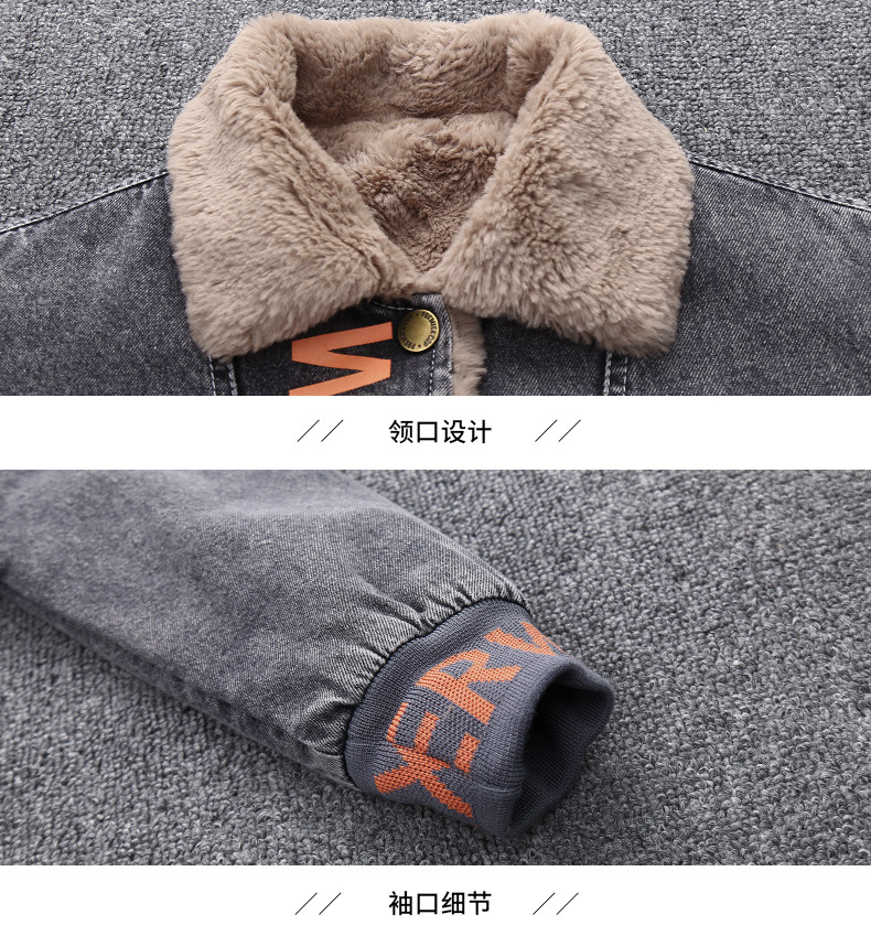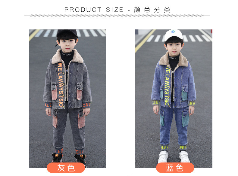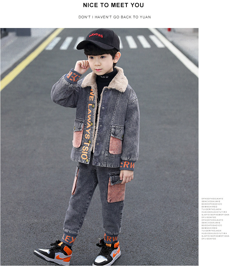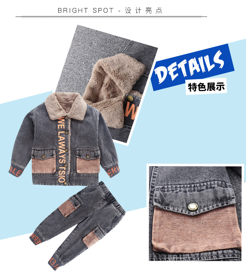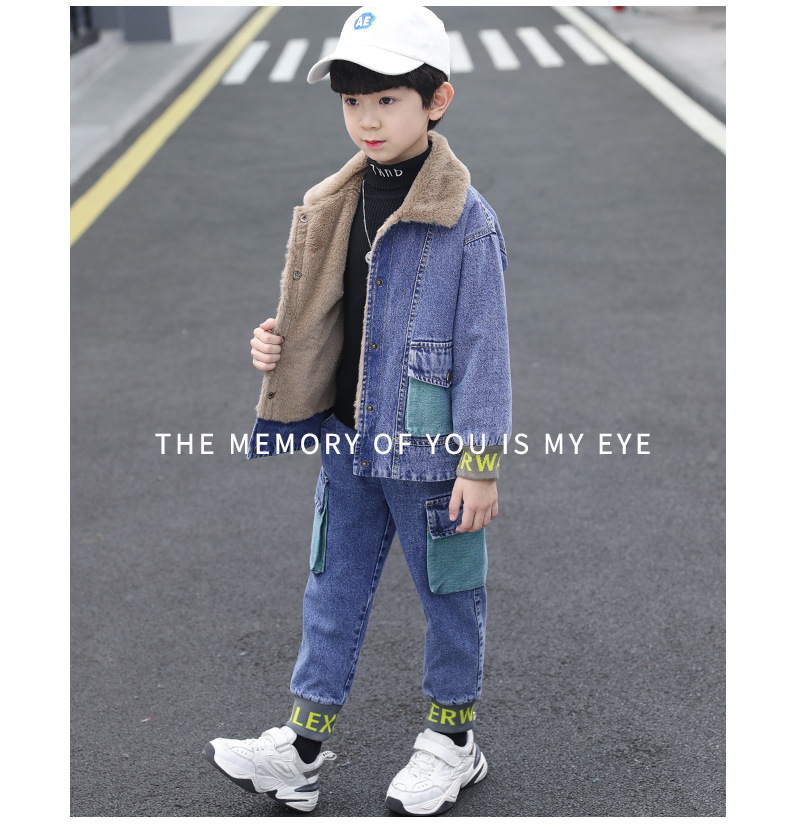 男童冬季加绒牛仔套装2023新款中大儿童加厚保暖牛仔裤外套两件套