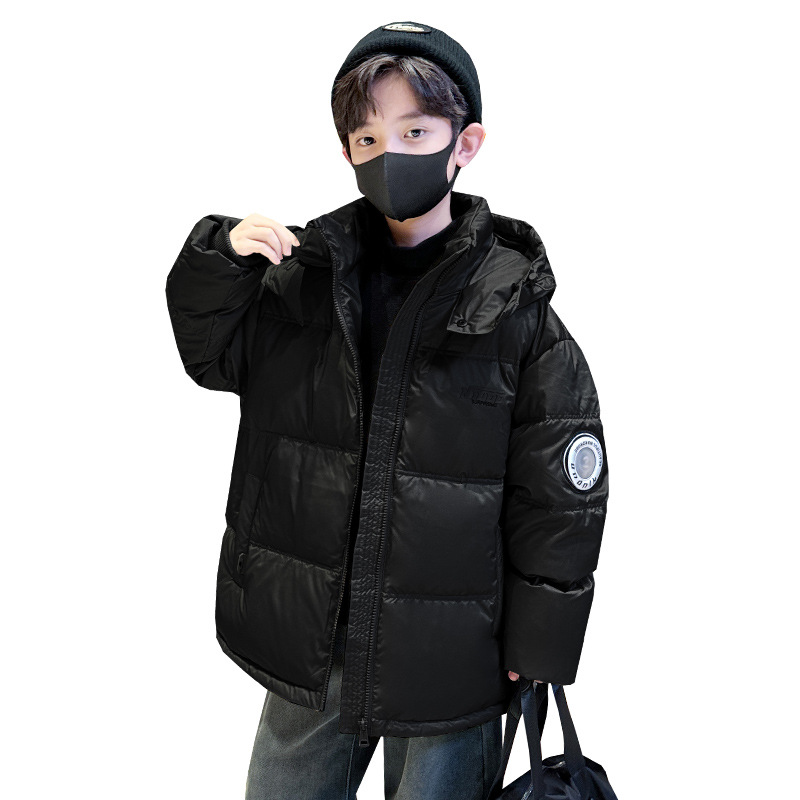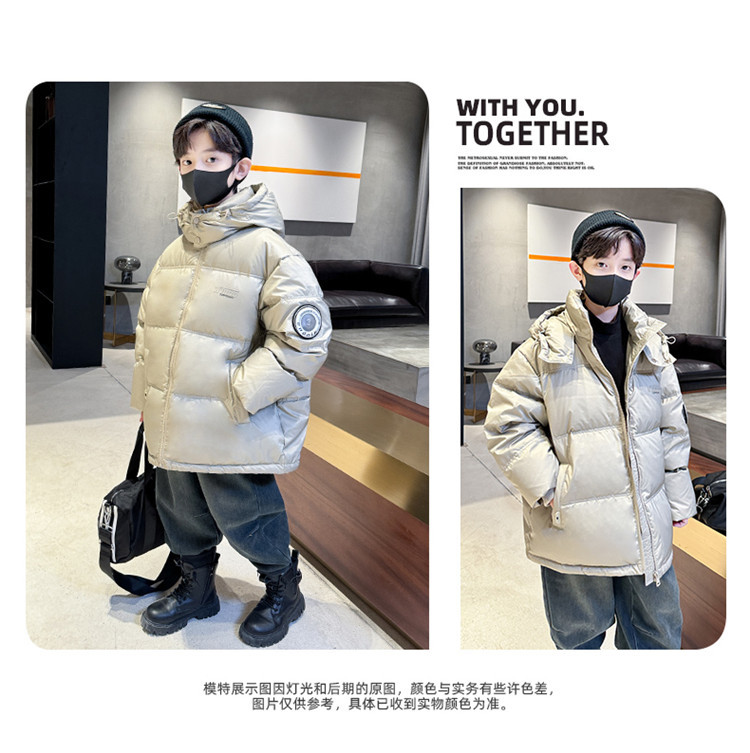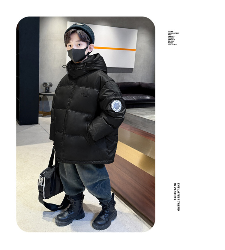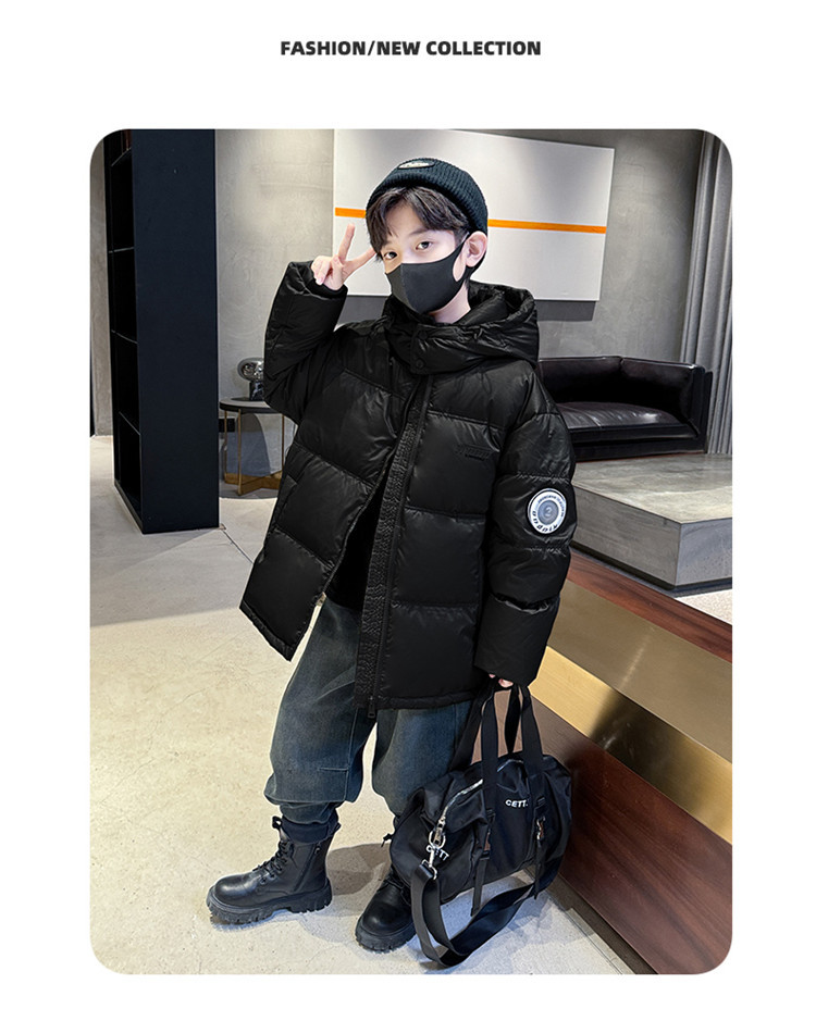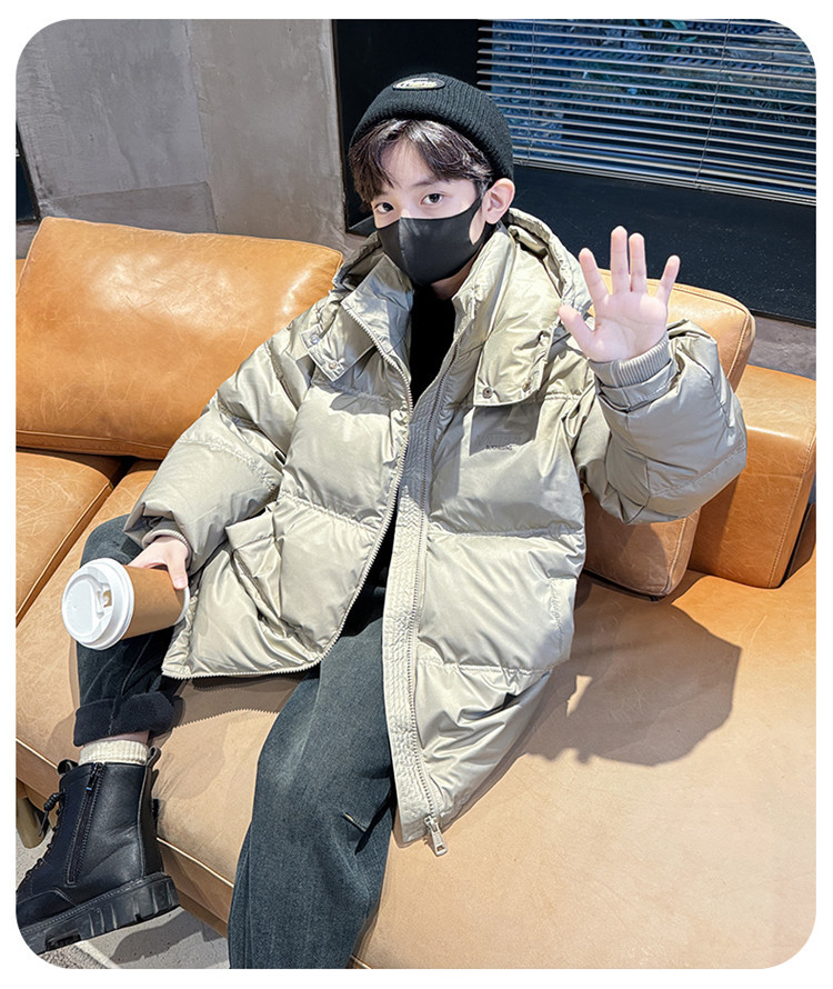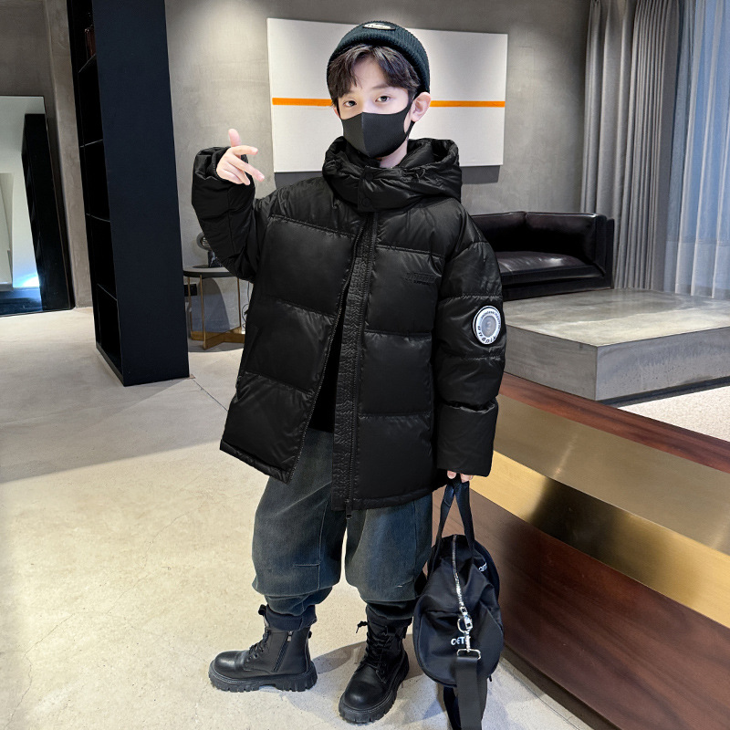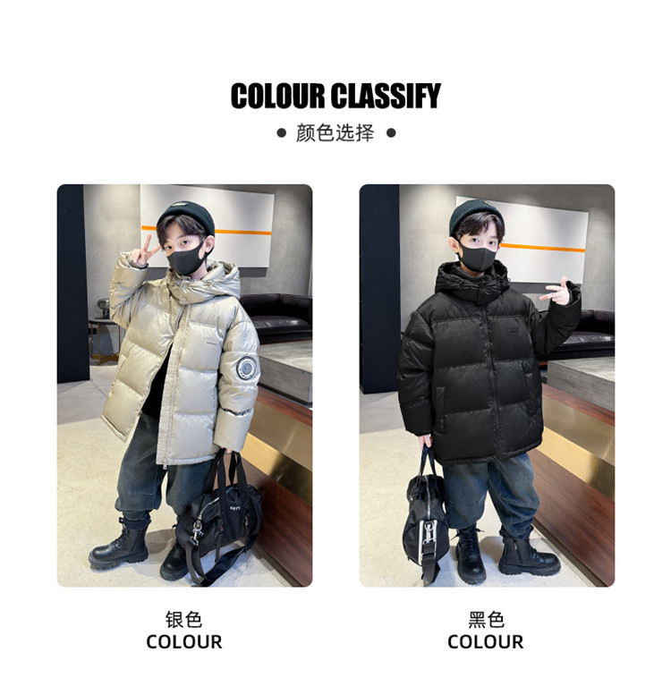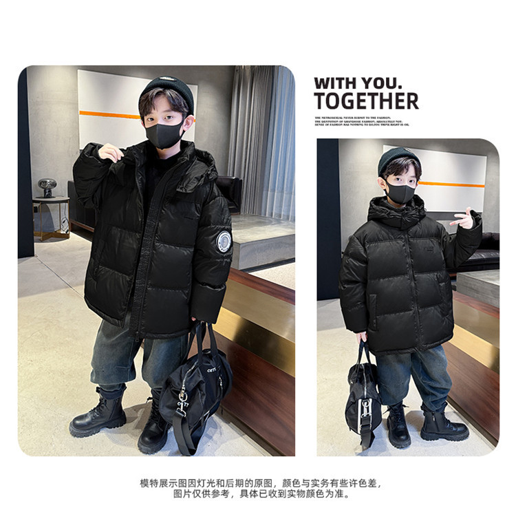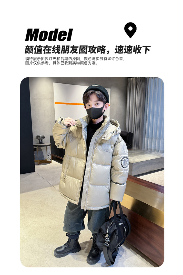男童冬季纯色连帽羽绒服2023新款中大儿童加厚保暖白鸭绒外套冬装