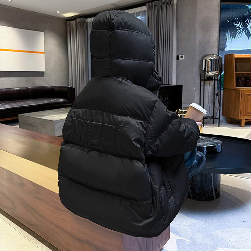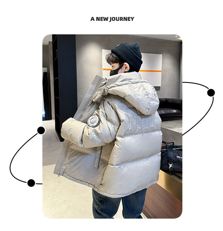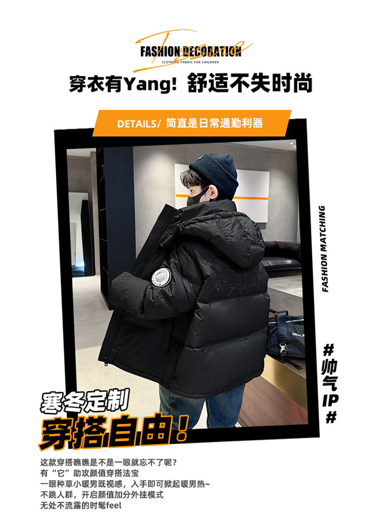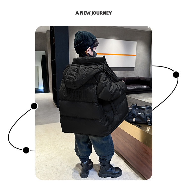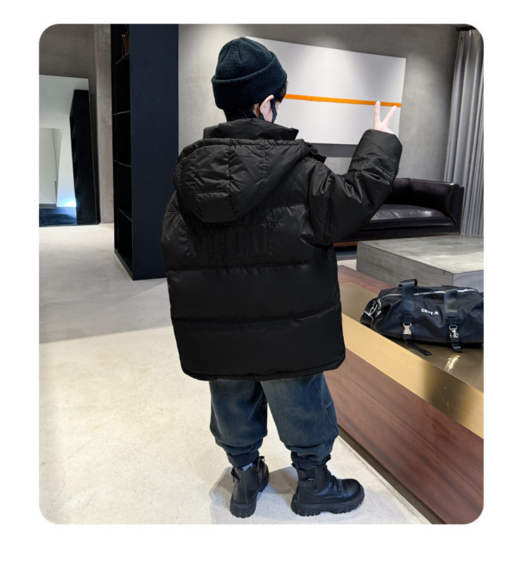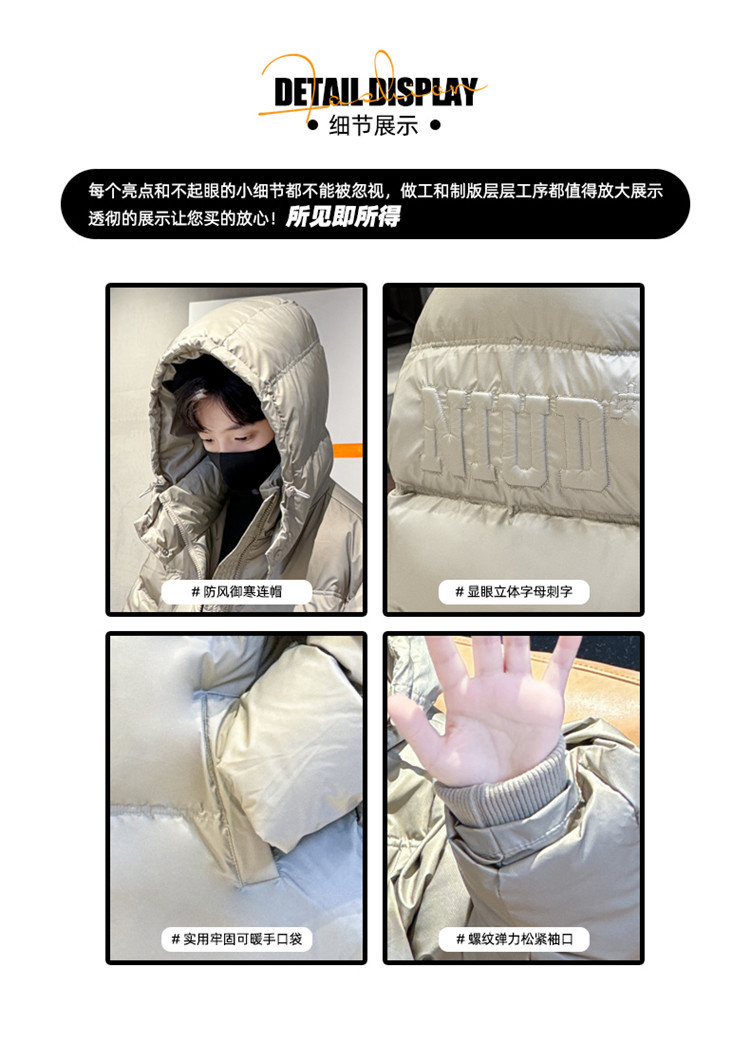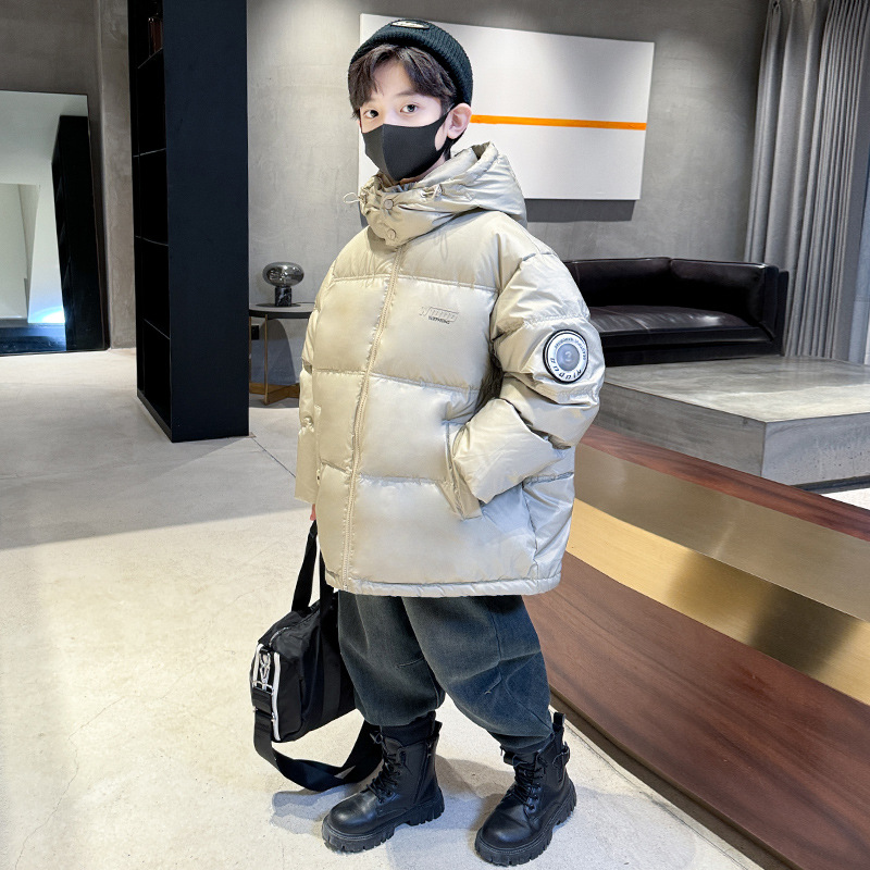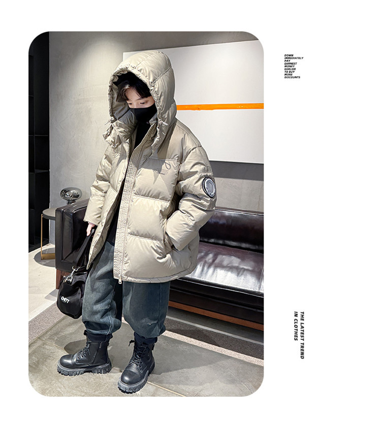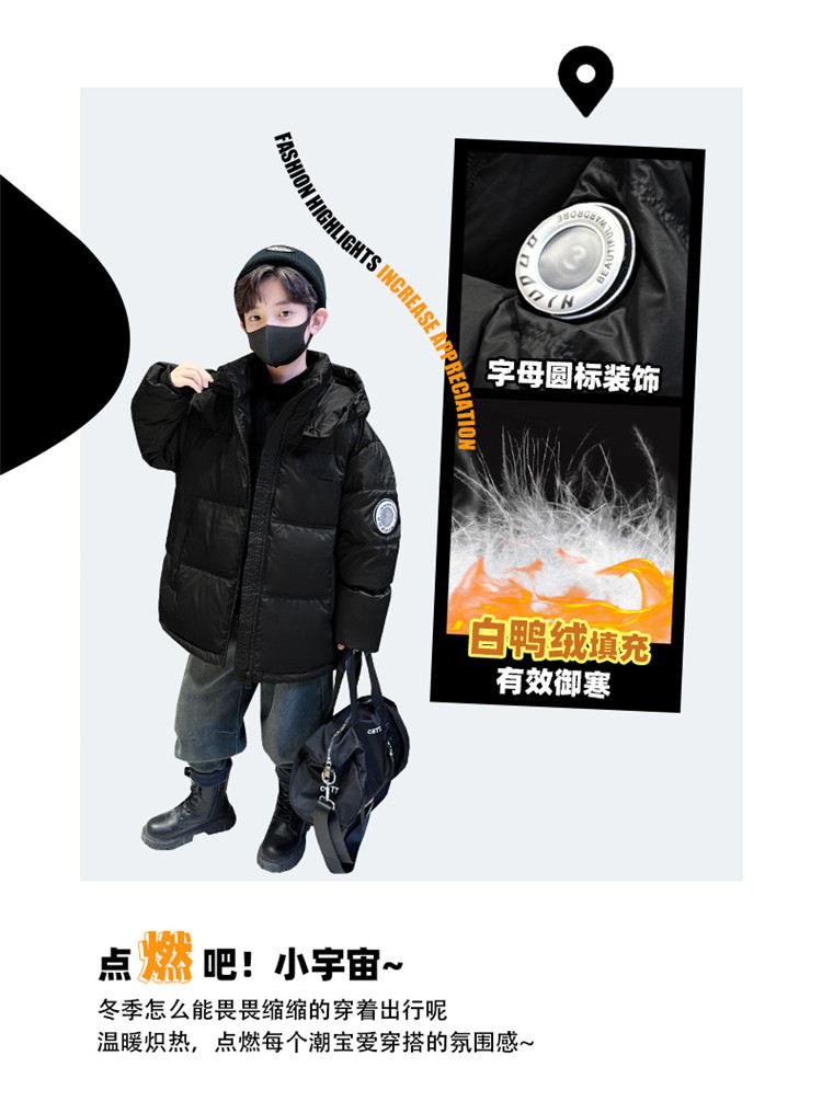 男童冬季纯色连帽羽绒服2023新款中大儿童加厚保暖白鸭绒外套冬装
