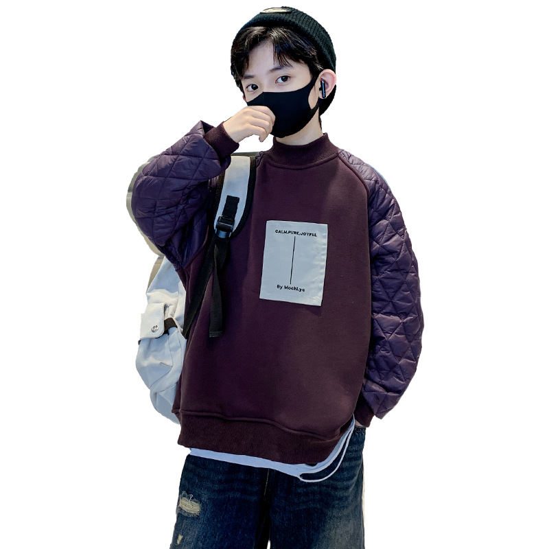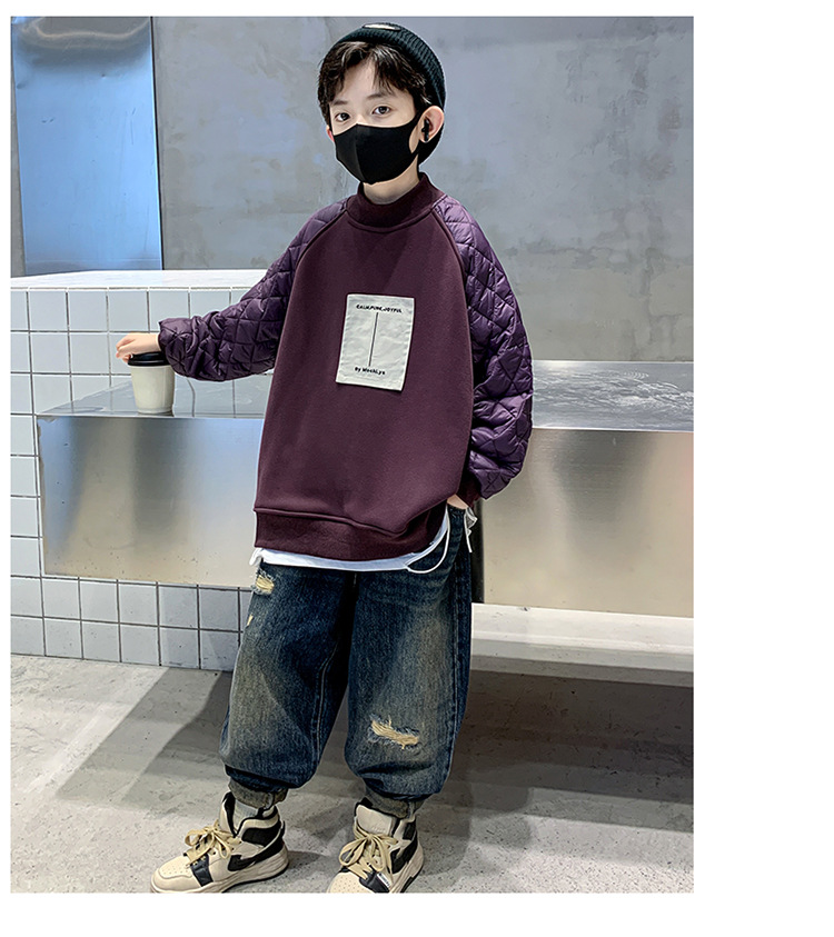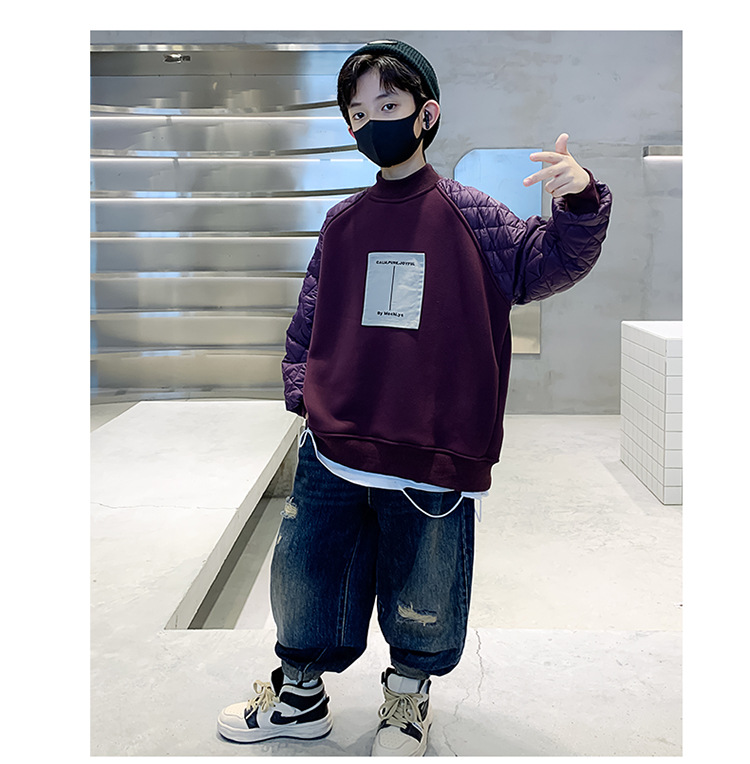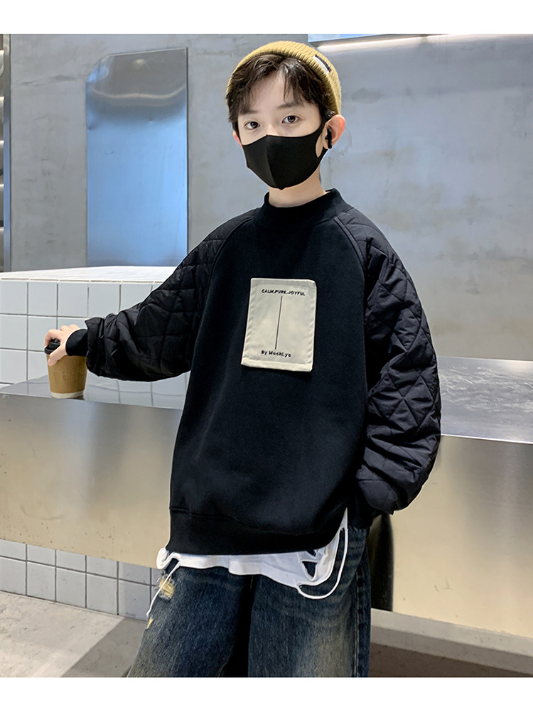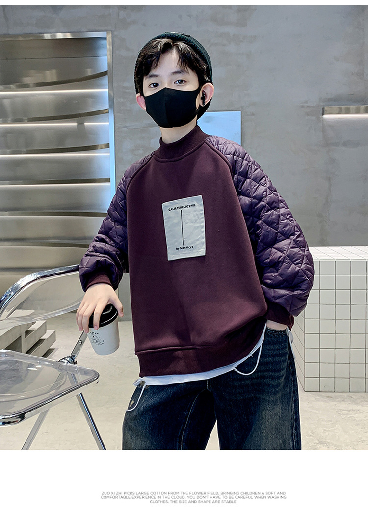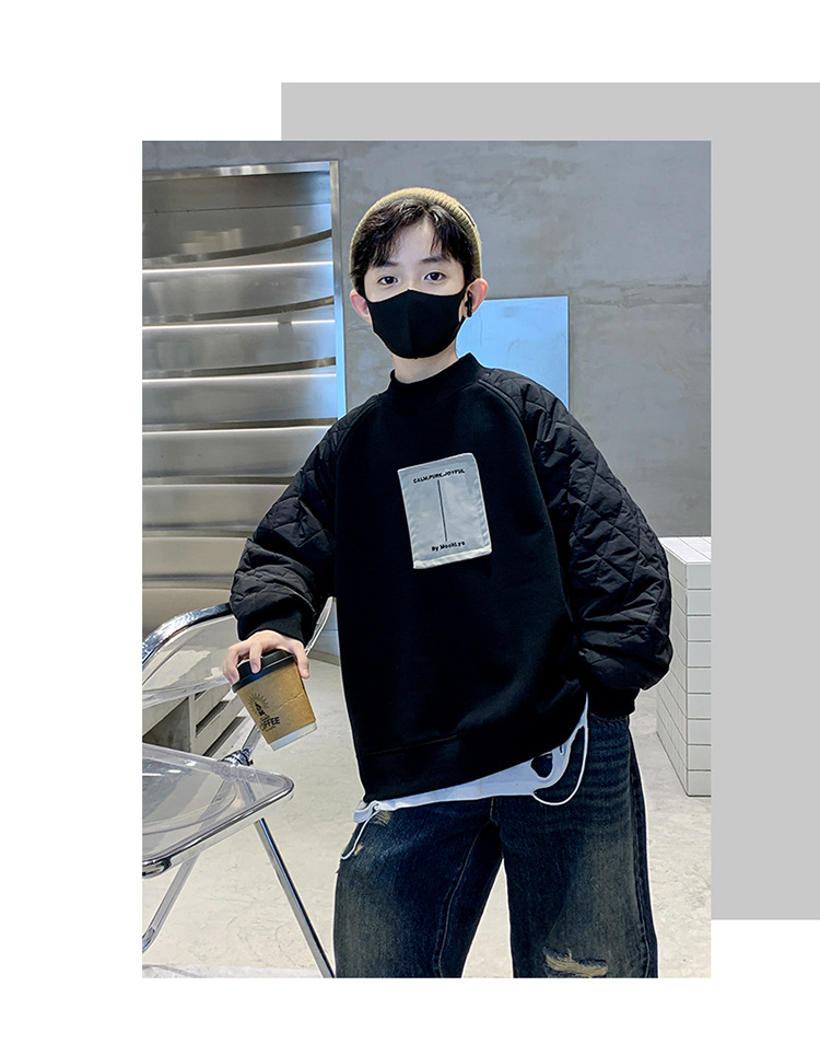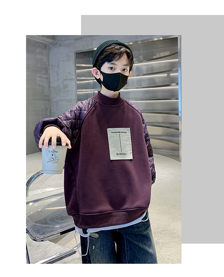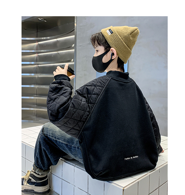 男童冬季拼接夹棉加绒卫衣2023新款中大儿童休闲加厚保暖卫衣冬装